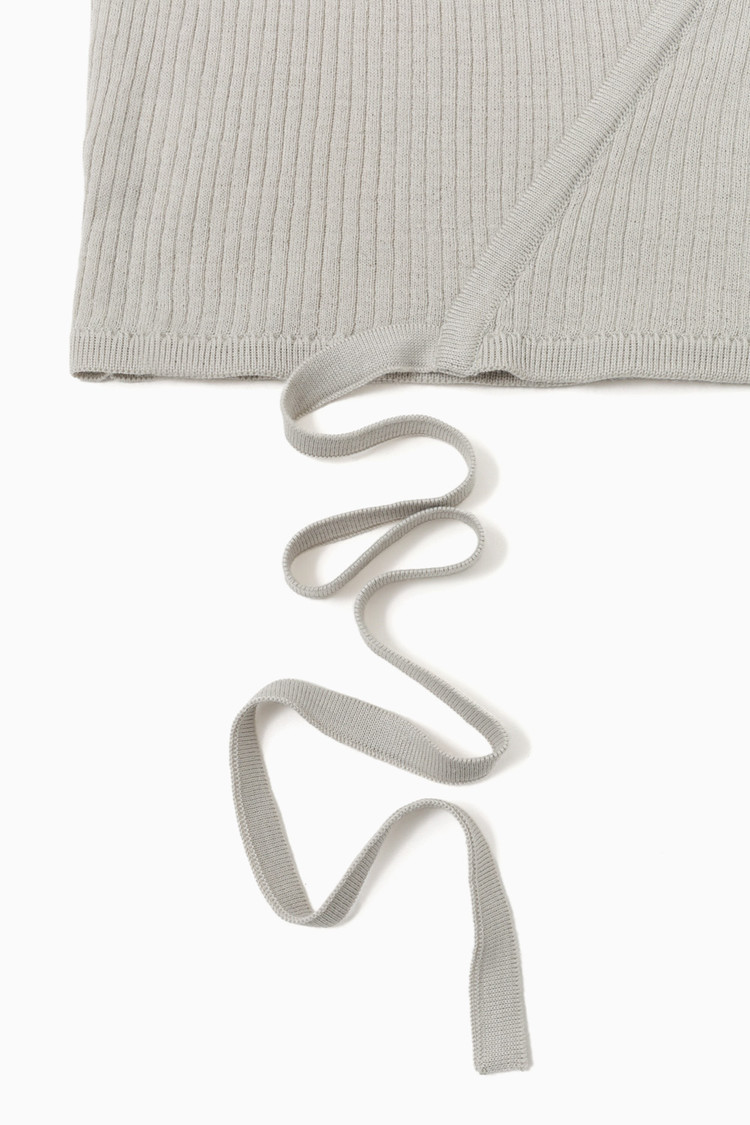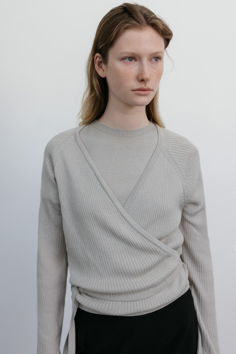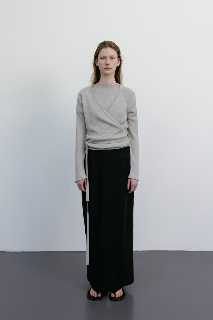 스트랩 벨트를 이용해 여미는 크로스오버 랩 디자인이 세련된 무드를 자아냅니다.