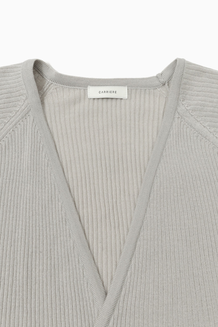울 혼방 소재의 섬세한 리브(골지) 조직으로 이루어진 니트 가디건입니다.