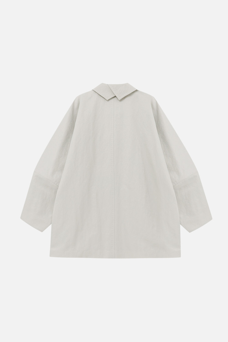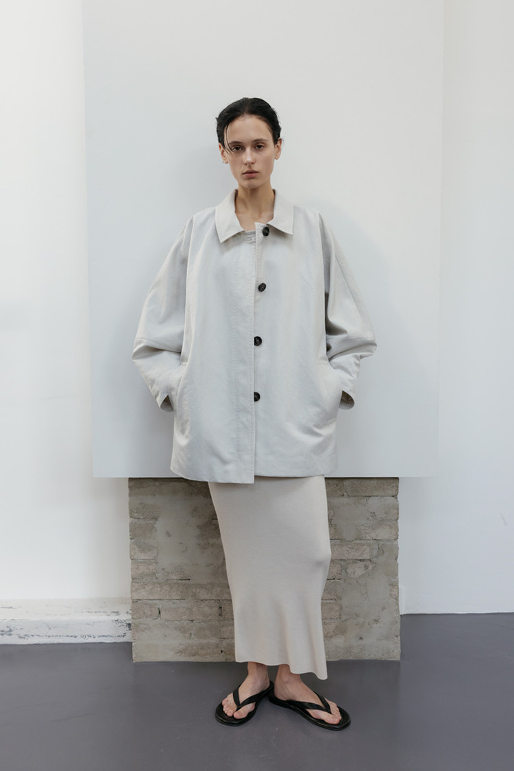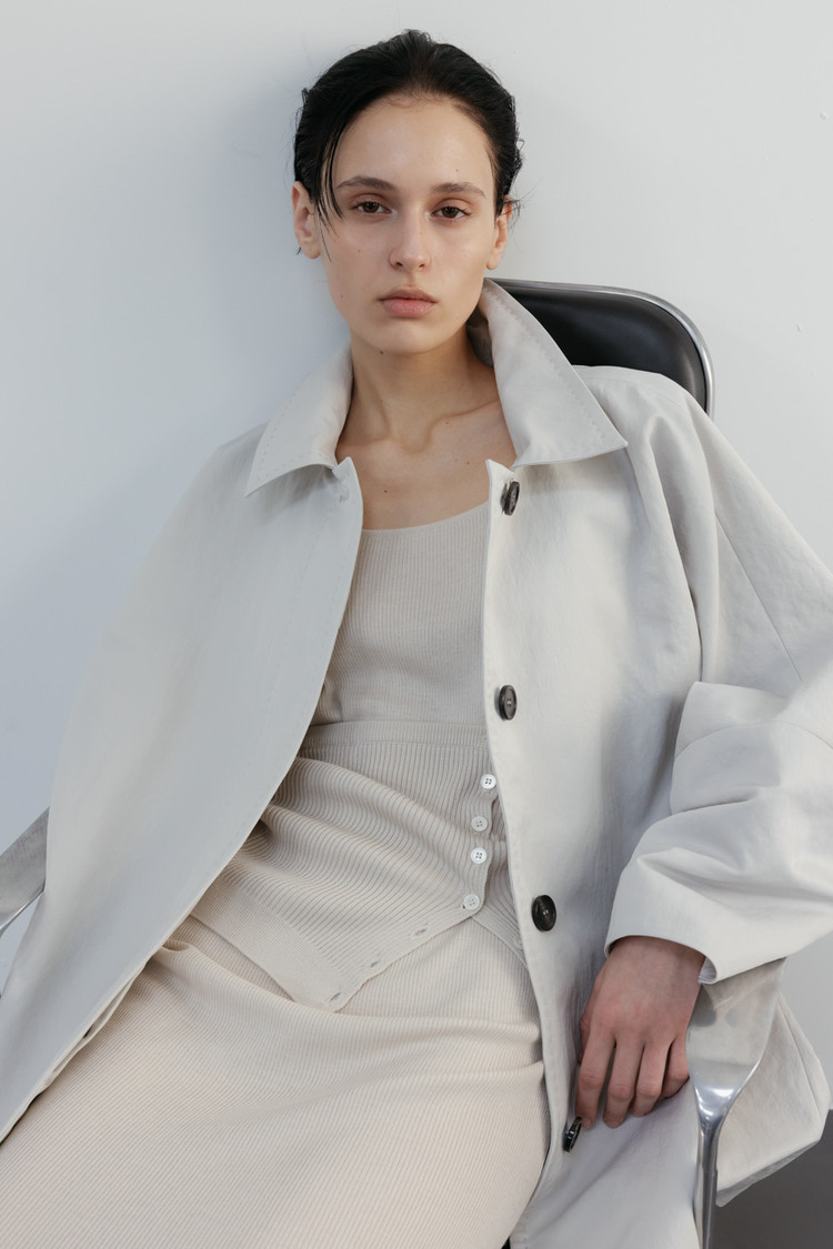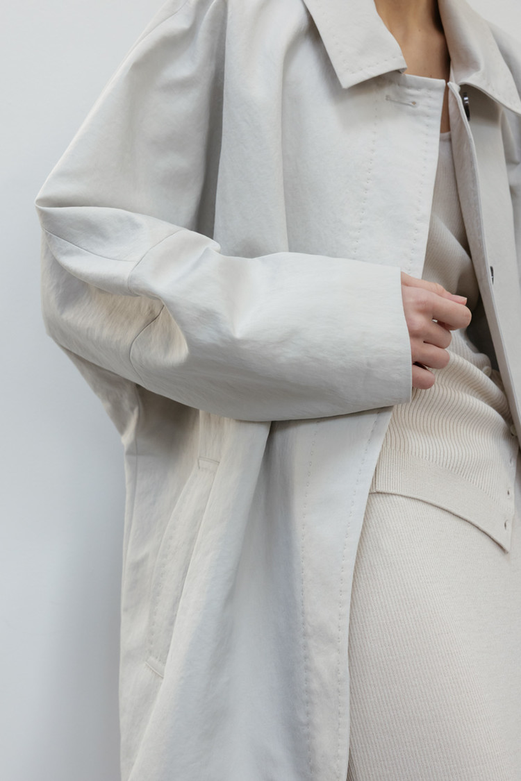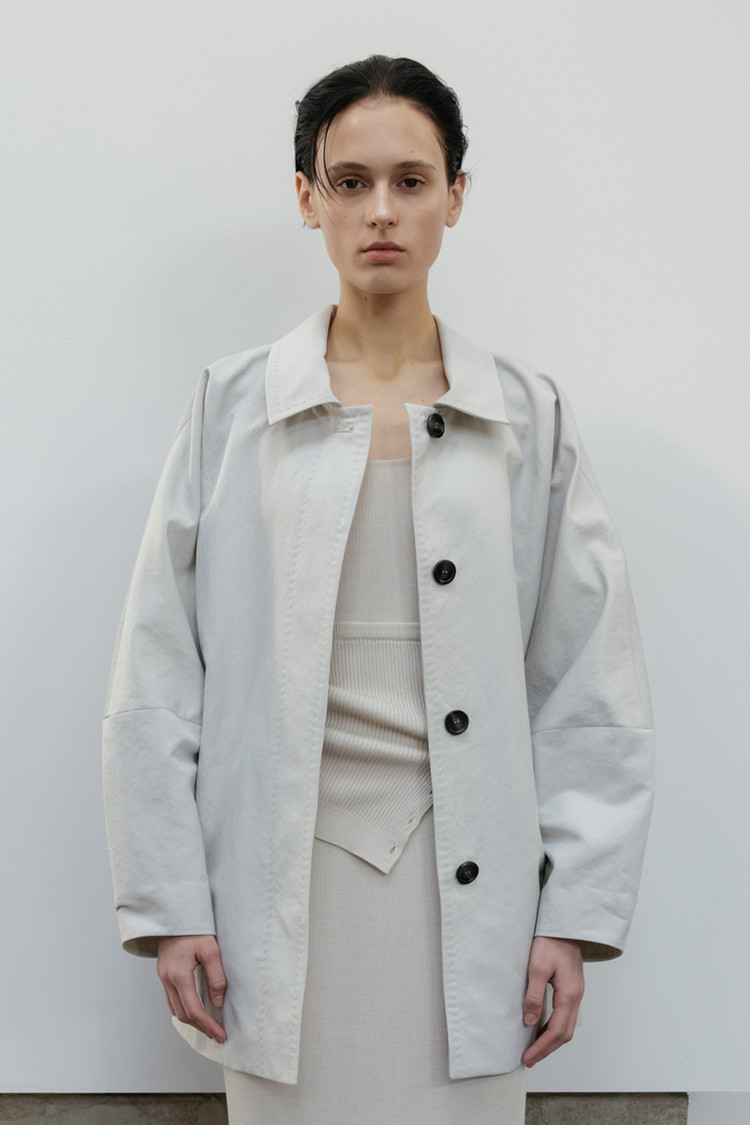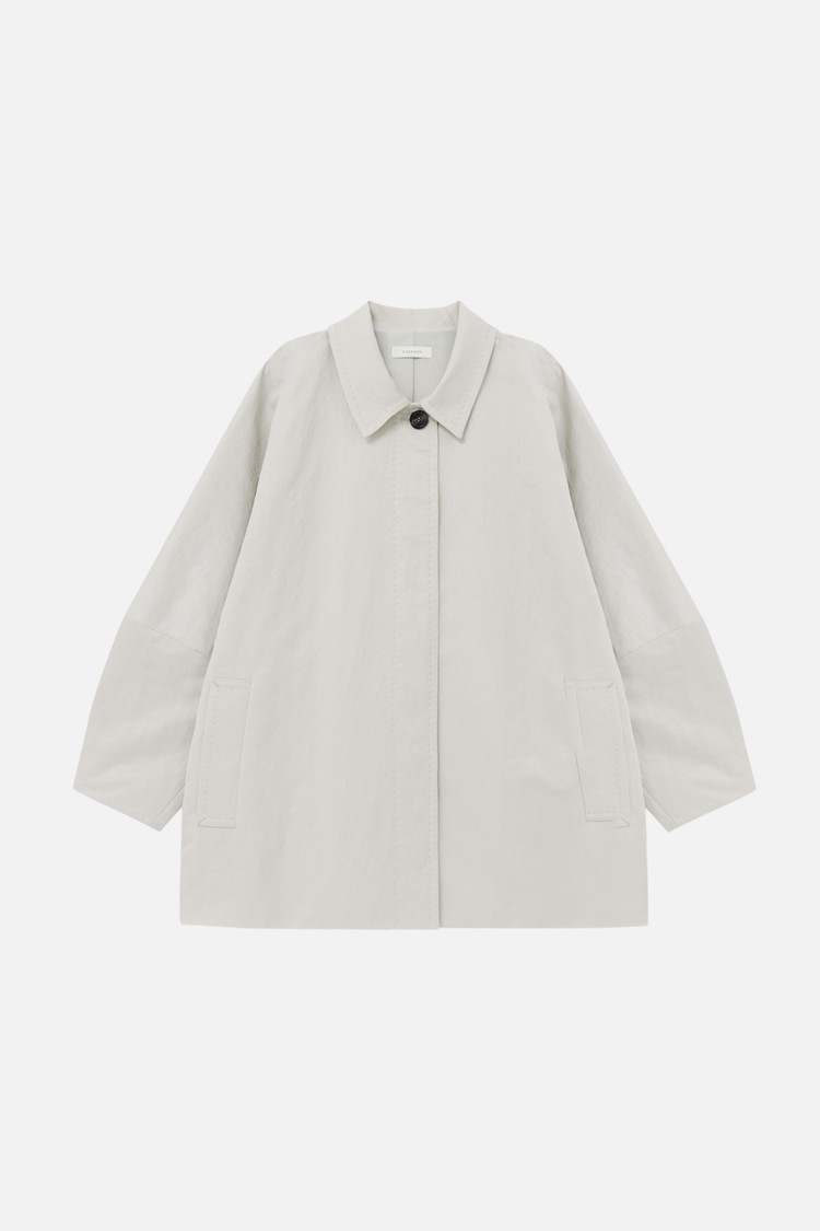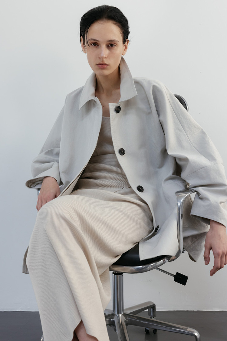 내추럴한 크링클 텍스처와 은은한 광택이 돋보이는 하프 트렌치입니다.