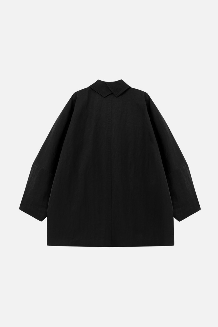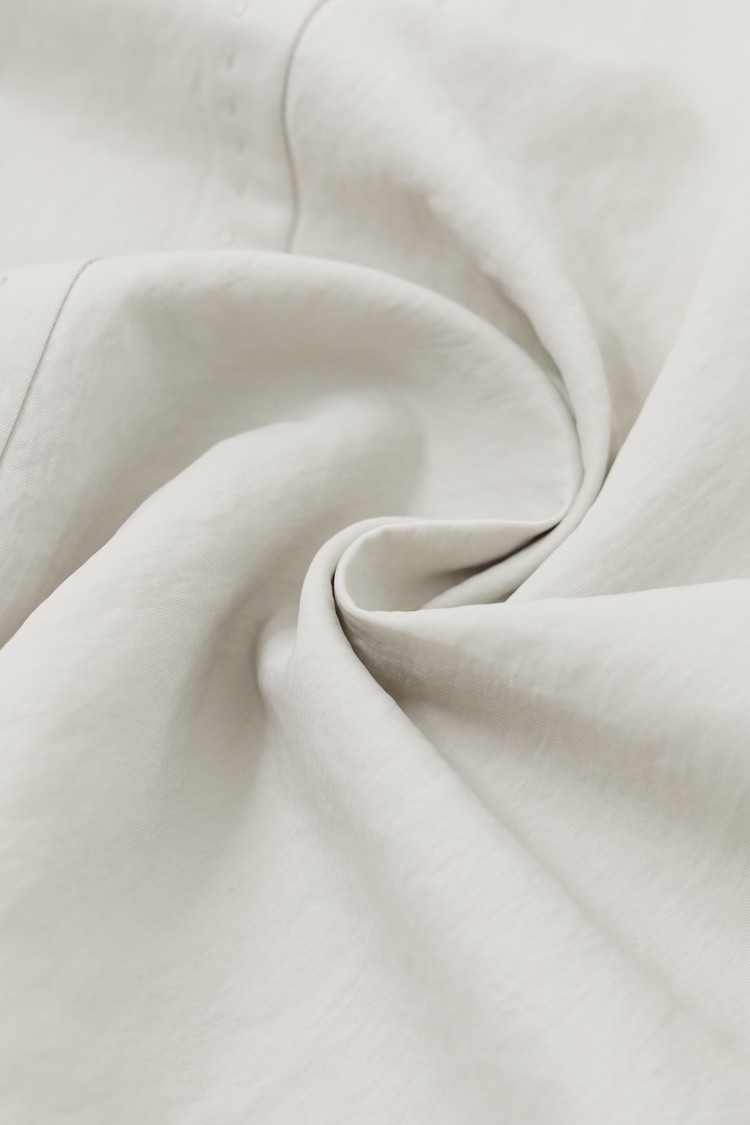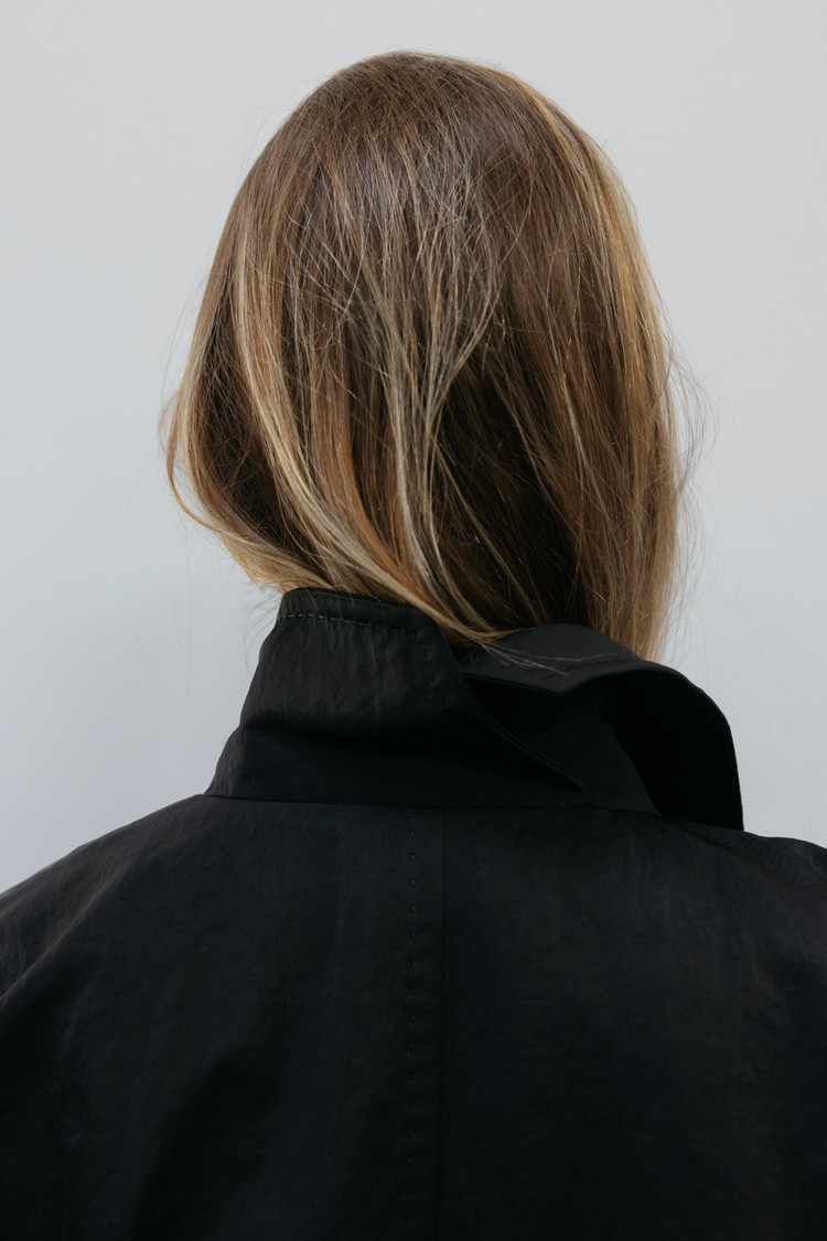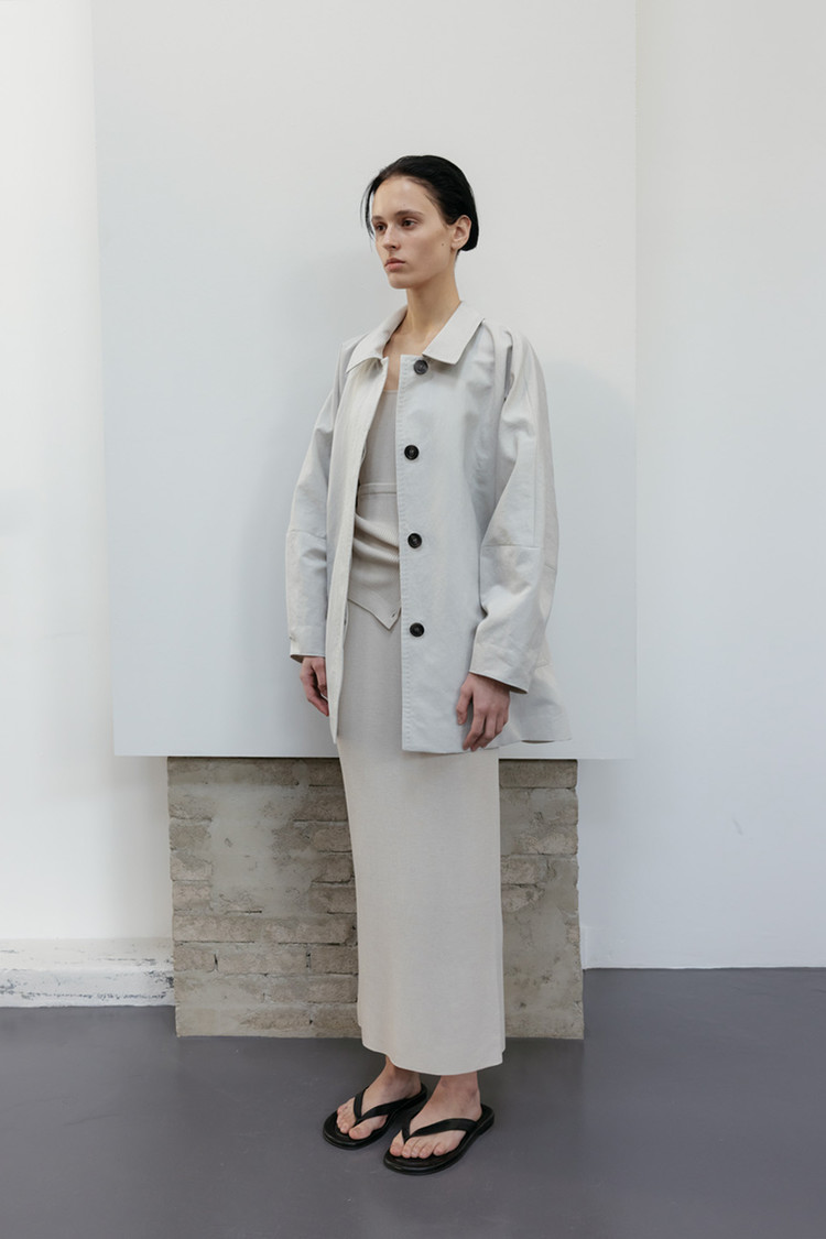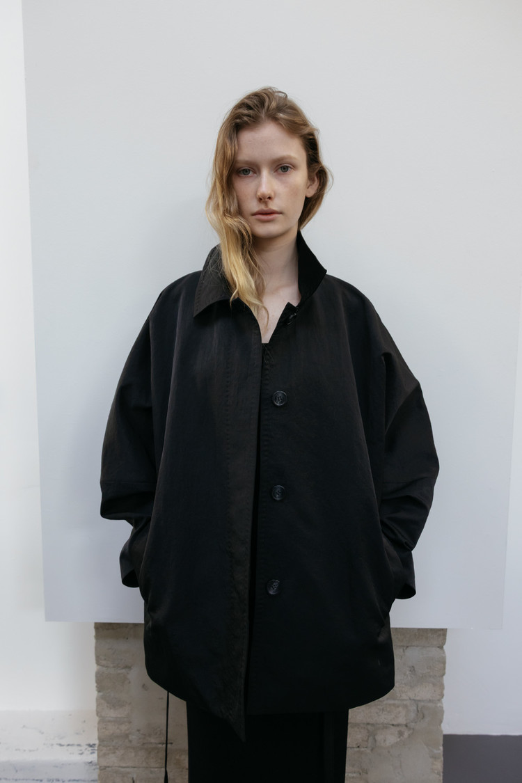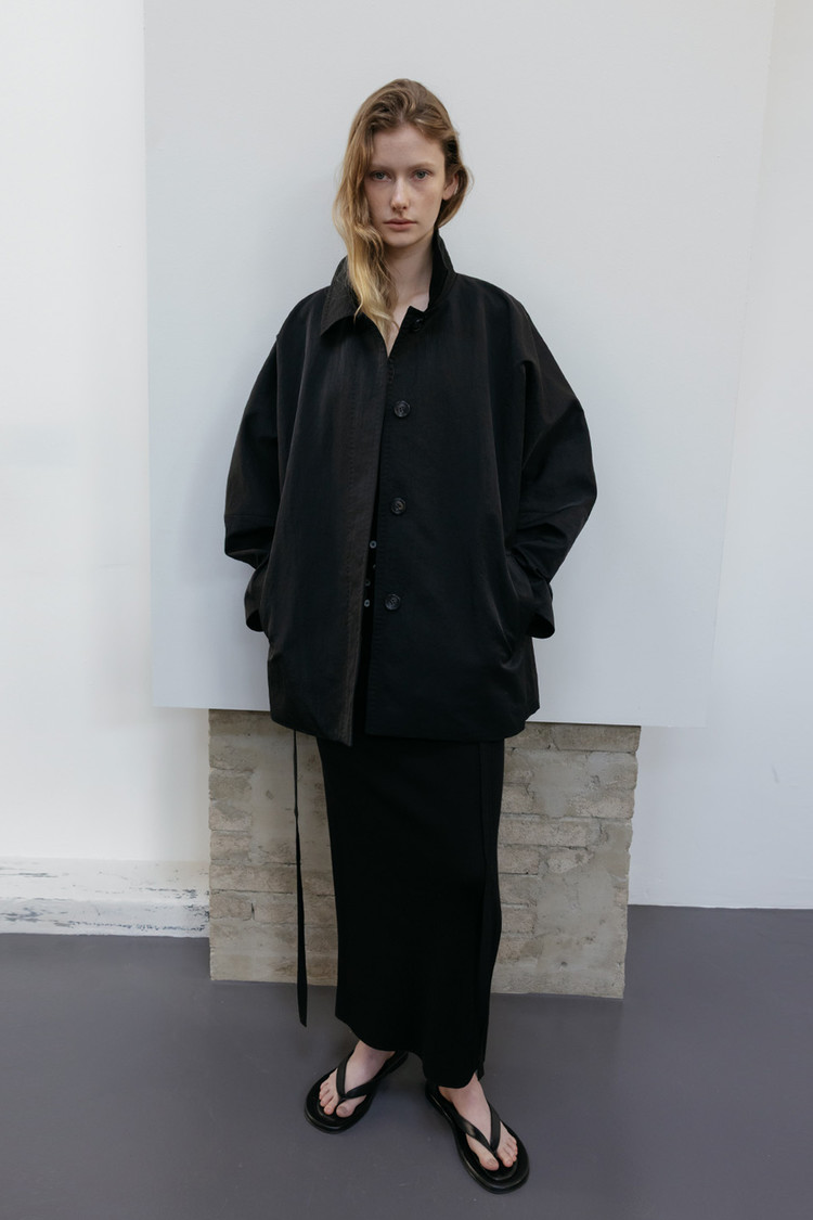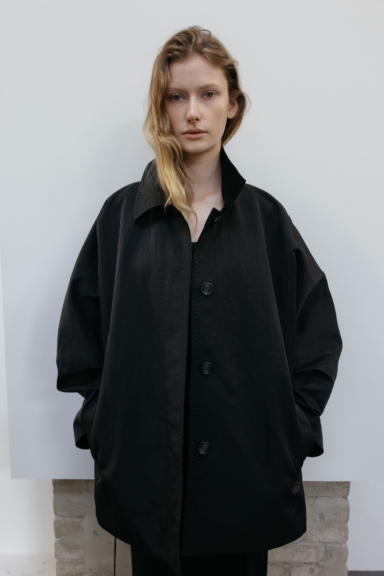 내추럴한 크링클 텍스처와 은은한 광택이 돋보이는 하프 트렌치입니다.