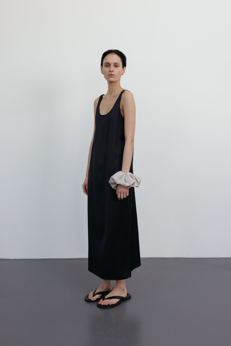 새틴 소재의 은은한 광택감과 부드러운 터치감이 조화되어 페미닌한 무드를 자아냅니다.