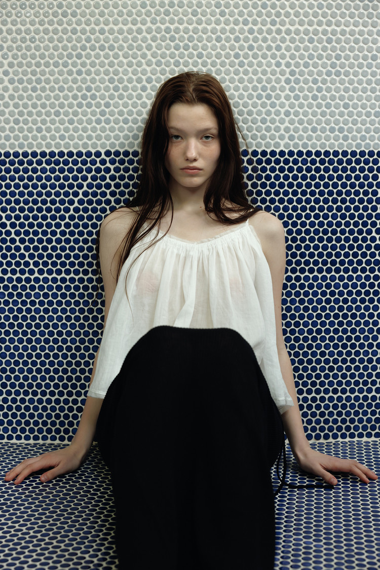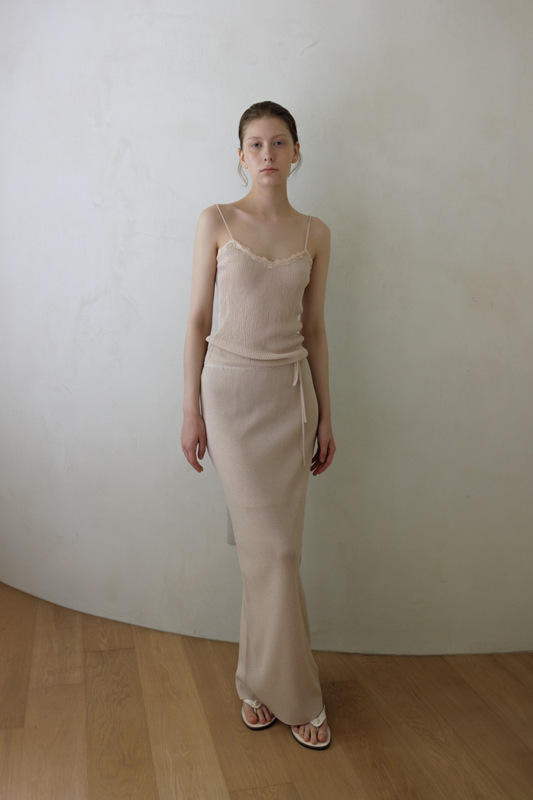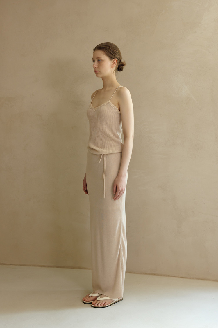 동일 소재로 제작된 LINEN BLEND JAPANESE LACE CAMISOLE KNIT TOP / LINEN BLEND SHEER KNIT CARDIGAN과 셋업으로 착용할 수 있습니다.