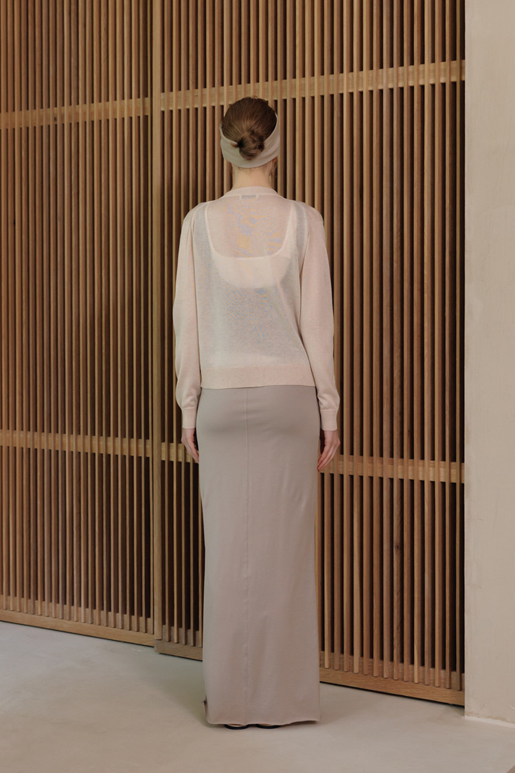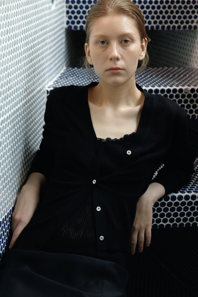 동일 소재로 제작된 LINEN BLEND JAPANESE LACE CAMISOLE KNIT TOP / LINEN BLEND SHEER STRING KNIT SKIRT와 셋업으로 착용할 수 있습니다.