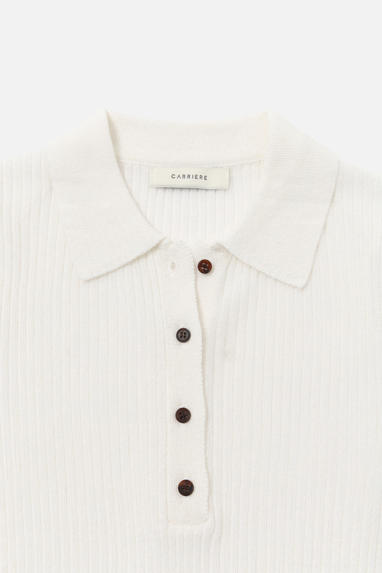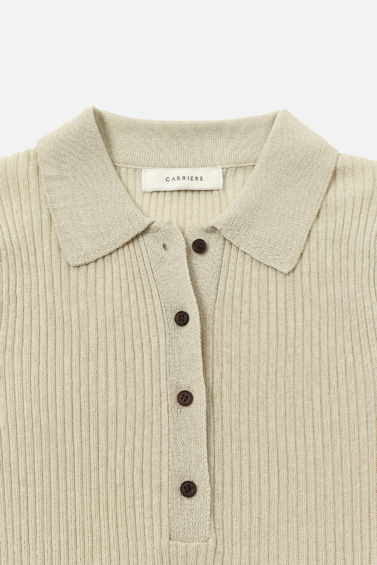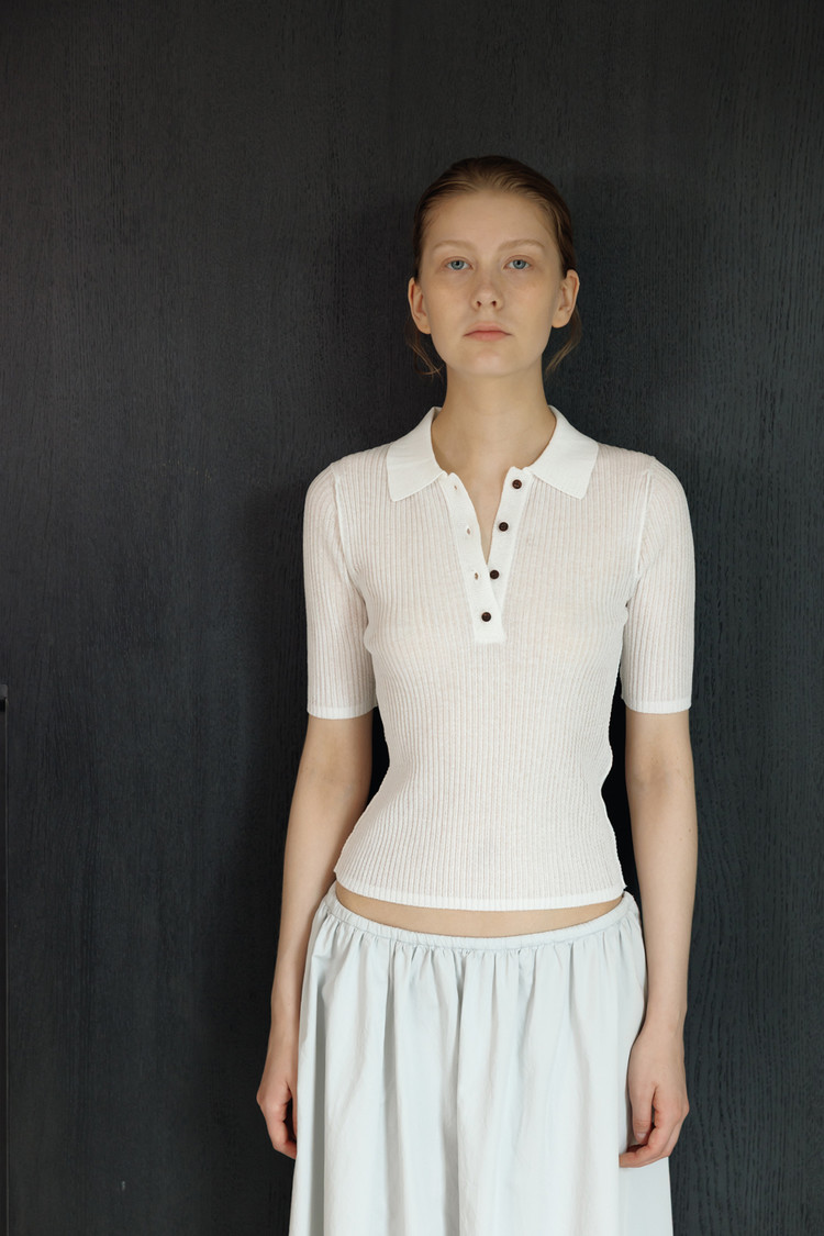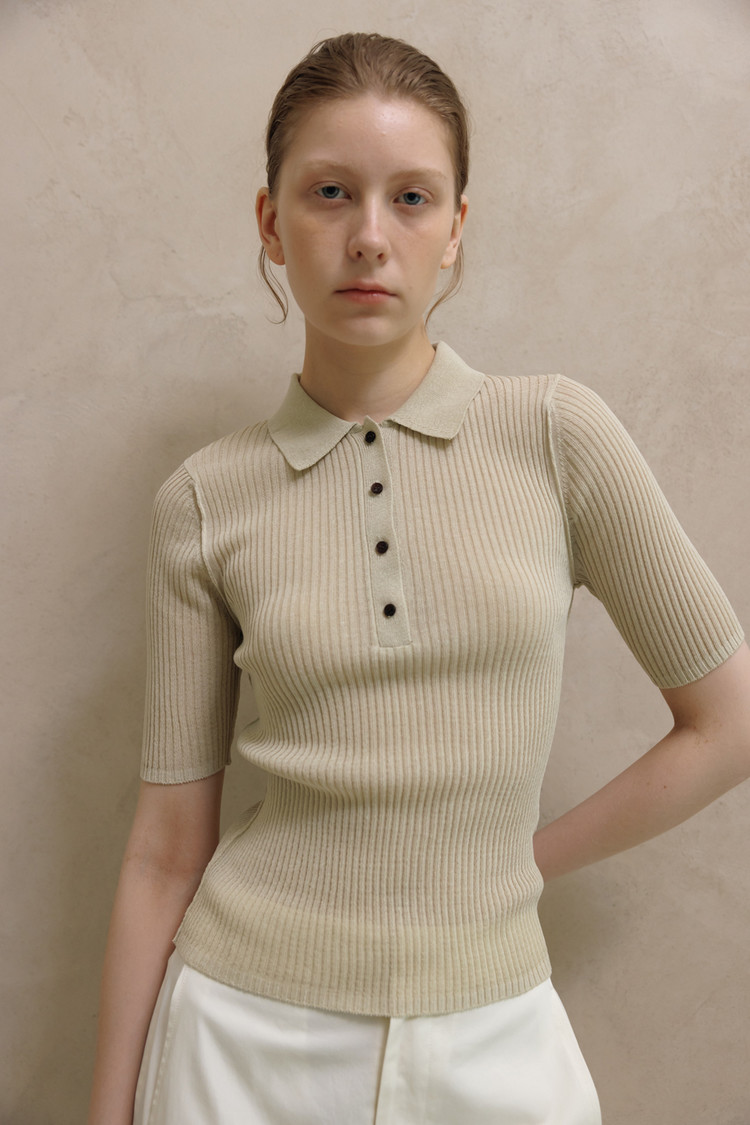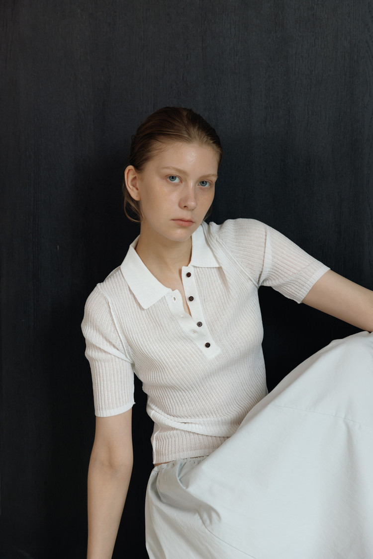 린넨 혼방 소재 특유의 시원한 터치감이 돋보이는 폴로 니트 탑입니다.
