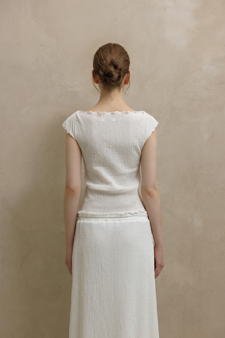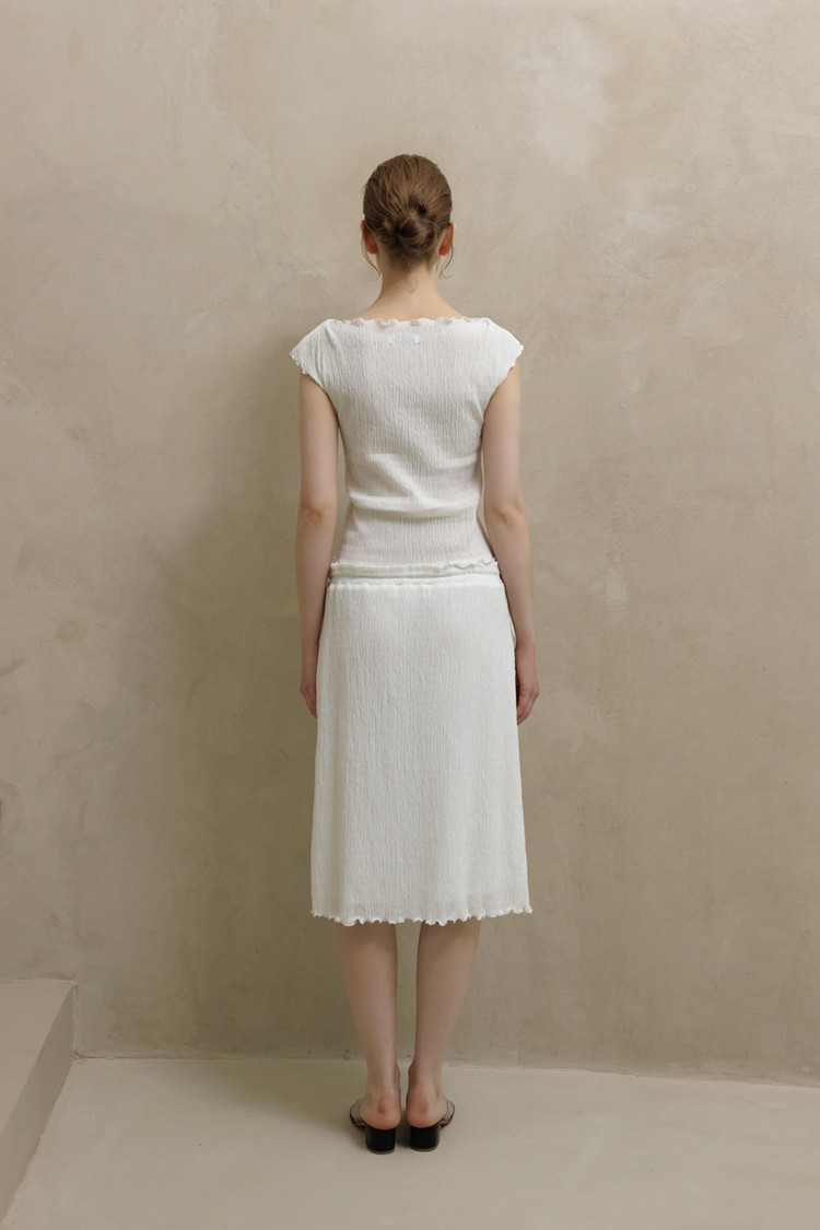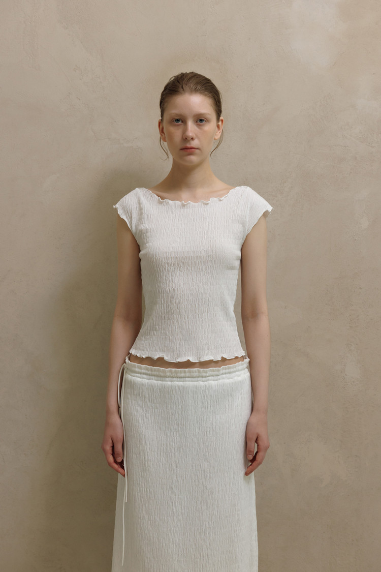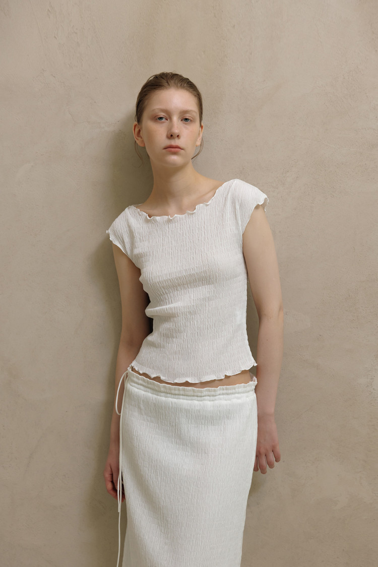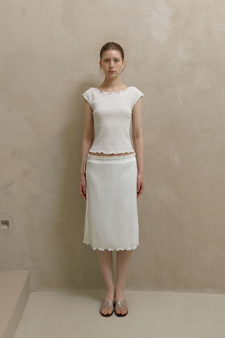 동일 소재로 제작된 CRINKLE STRING MIDI SKIRT와 셋업으로 착용할 수 있습니다.