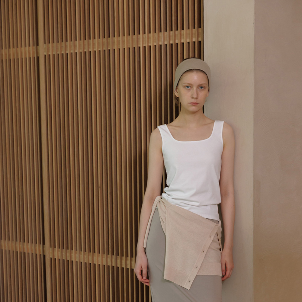 내추럴 크림 컬러는 쿨한 터치감의 하프 기장(무릎 선) 안감 처리를 하여 비침을 최소화했습니다. (차콜 컬러는 안감이 없습니다.)