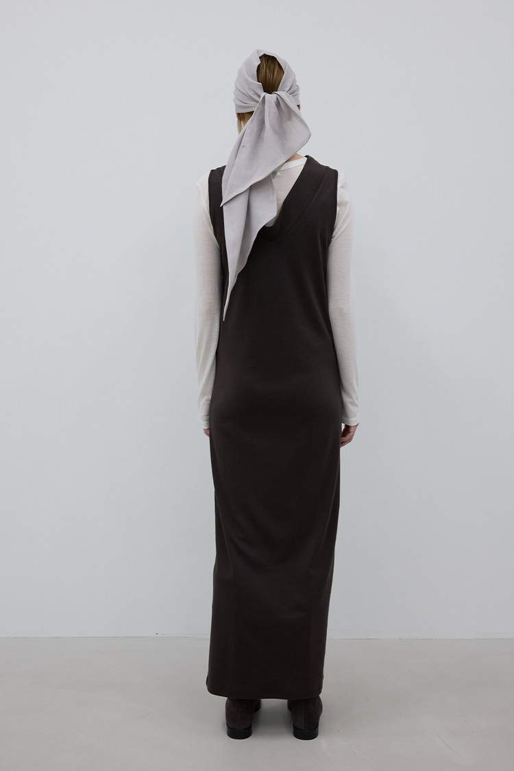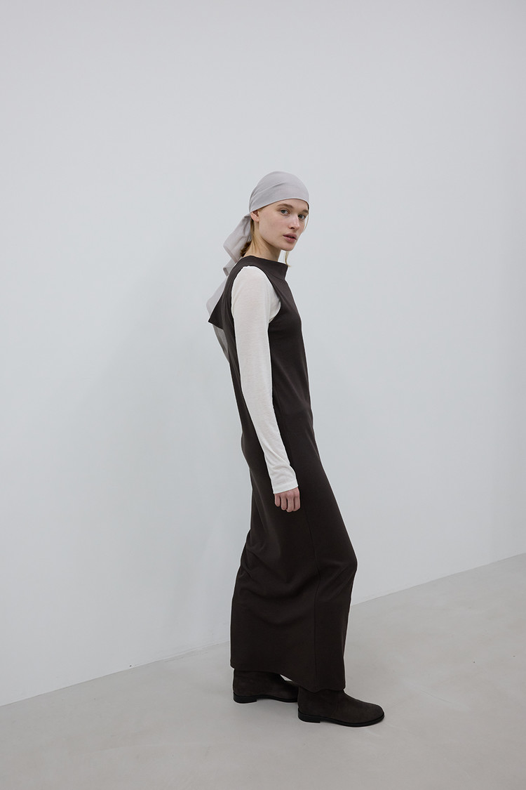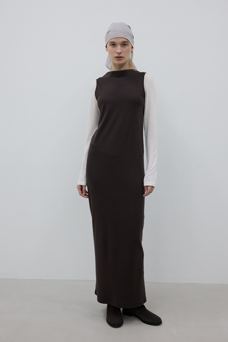 자연스러운 실루엣과 구조적인 네크라인이 돋보이는 저지 드레스