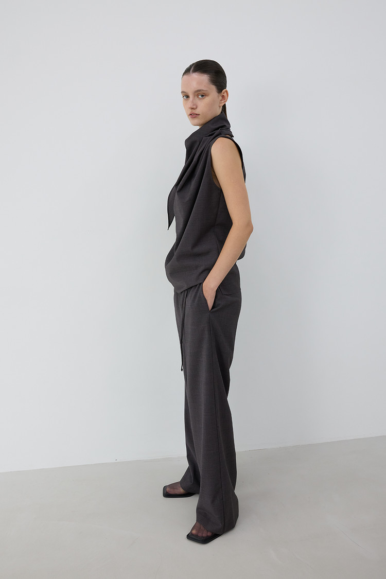 동일 소재의 WOOL BLEND STRING BANDING PANTS / WOOL BLEND FOLDED WRAP SKIRT와 셋업 연출 가능