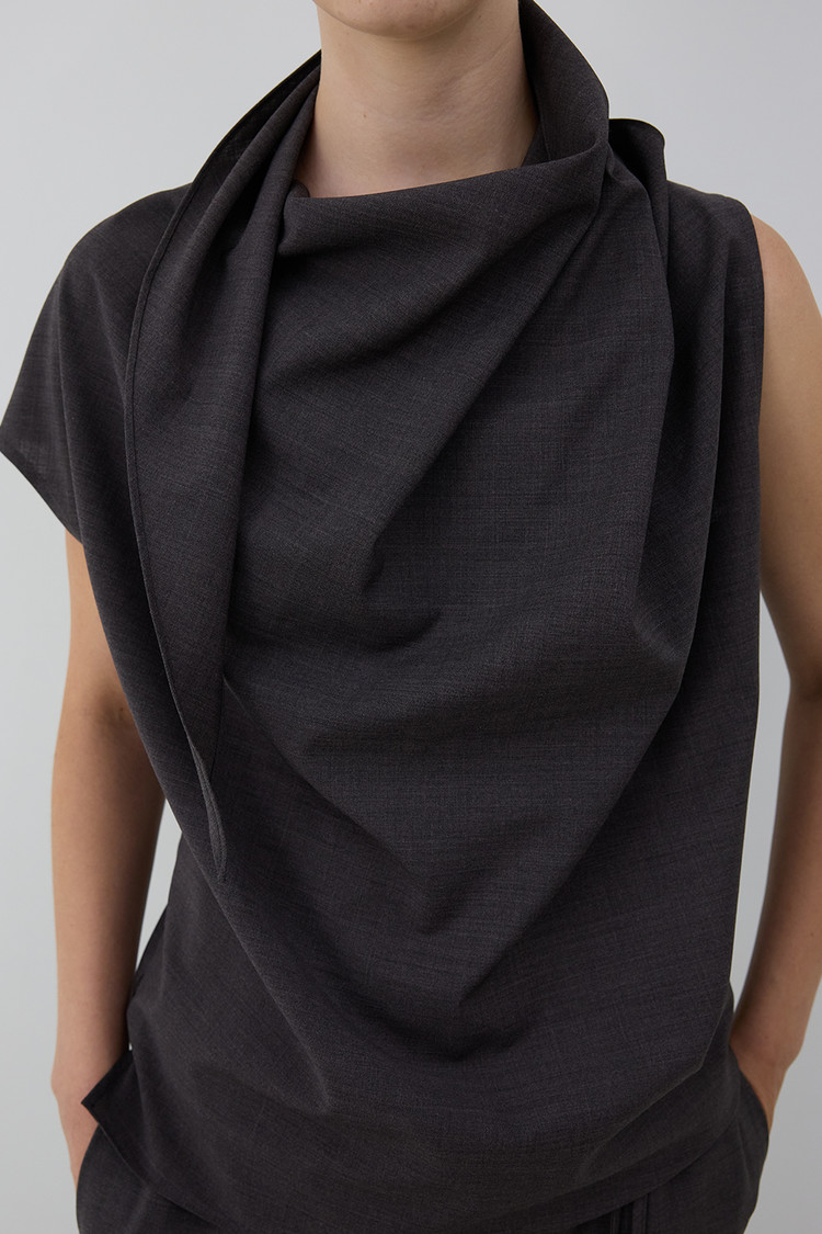 스카프 디테일이 돋보이는 울 블렌드 블라우스
