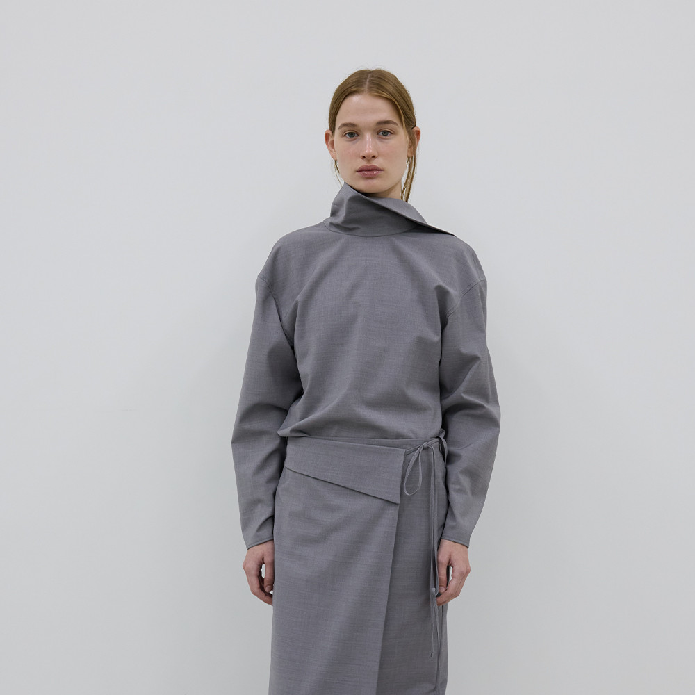 부드럽게 흐르는 울 블렌드 소재로 제작된 투웨이 블라우스
