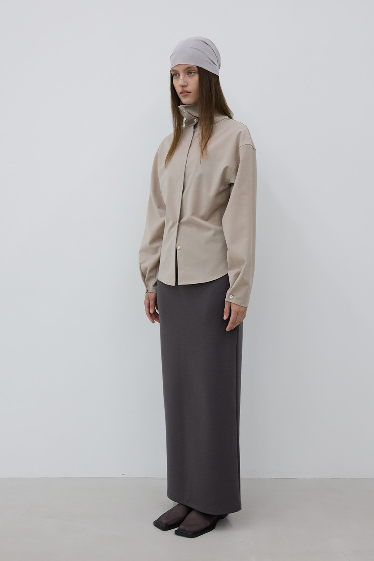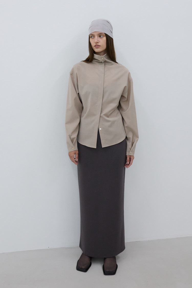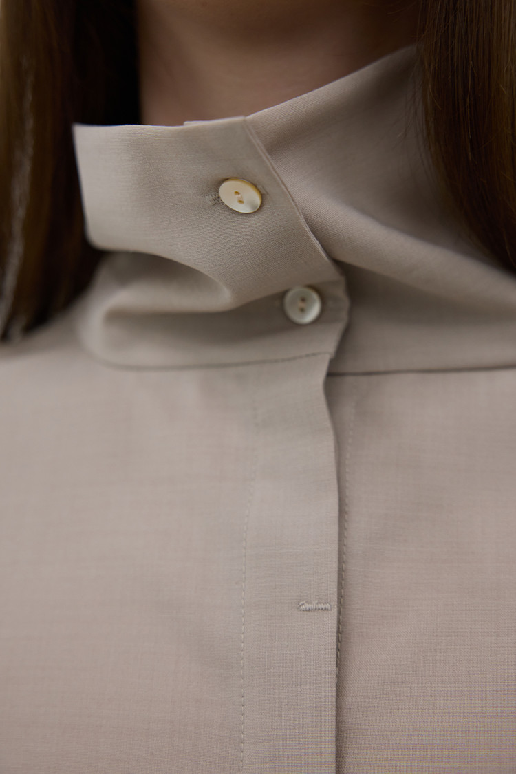 WOOL BLEND TWO WAY BLOUSE - SAND BEIGE