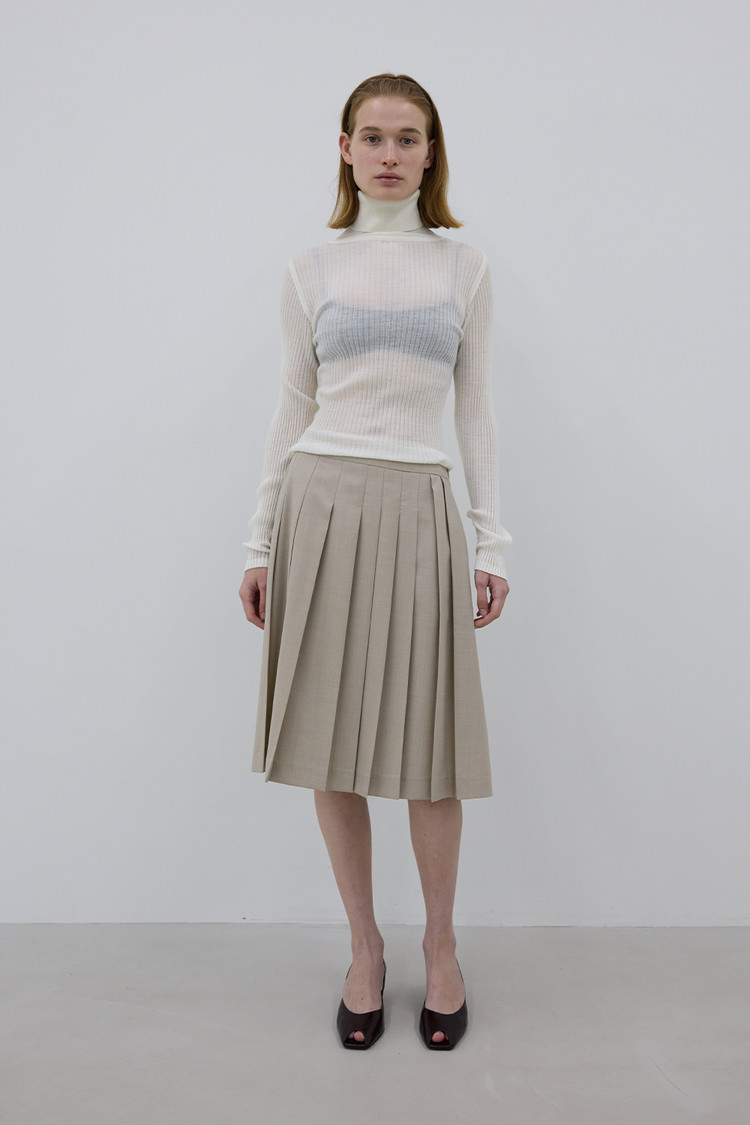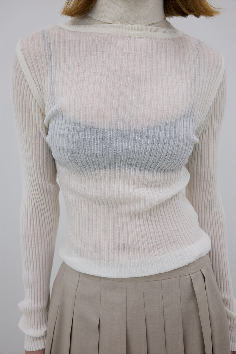 LIGHT WOOL TURTLENECK RIB KNIT TOP - CREAM