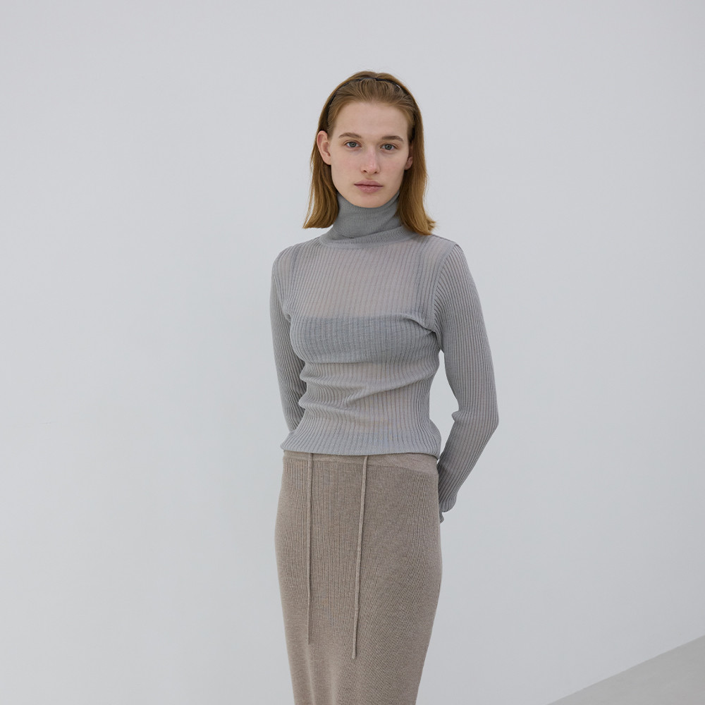 동일 소재의 SOFT WOOL MOCK NECK SLEEVELESS KNIT TOP과 셋업 착용 가능