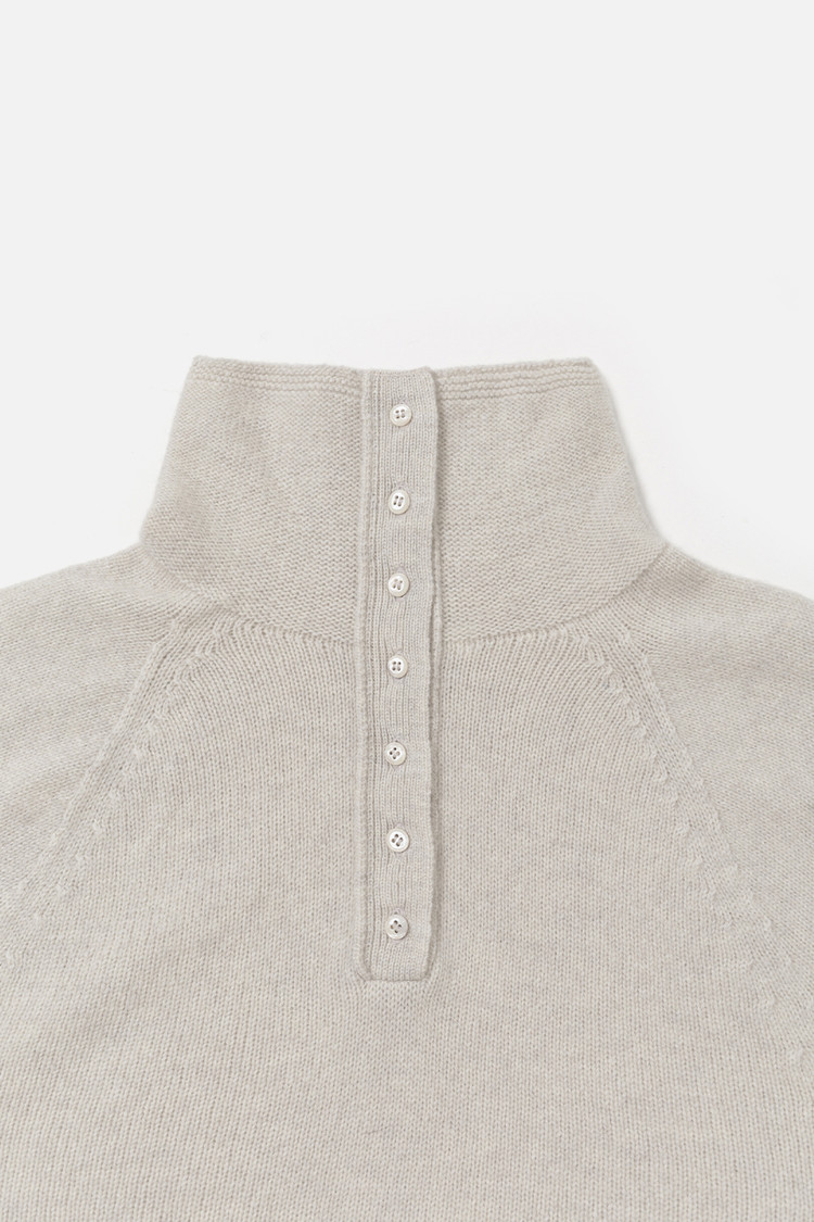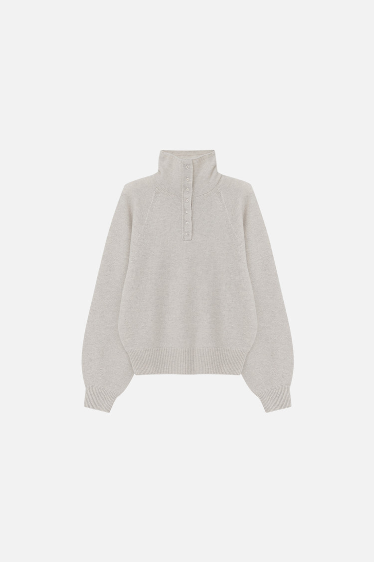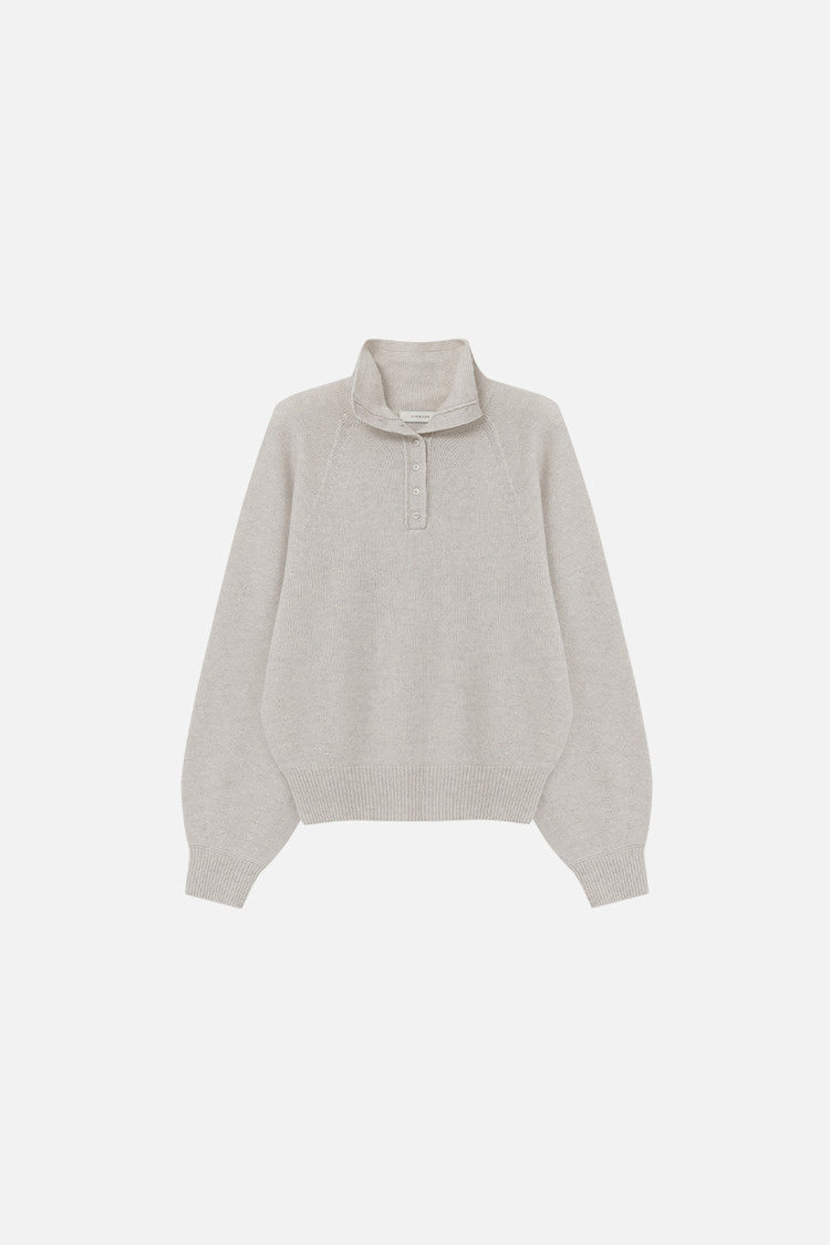 [REORDER / 12/23(화) 예약배송] MERINO WOOL BLEND BUTTON UP SEAMLESS KNIT TOP - OAT GREY