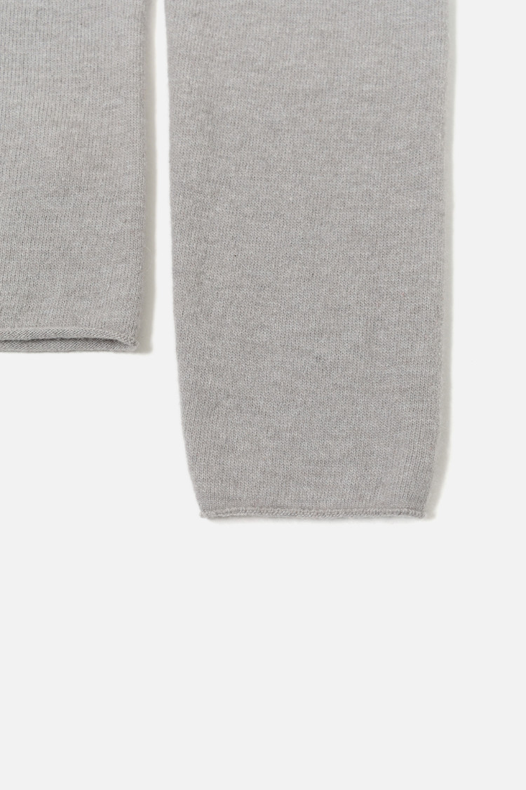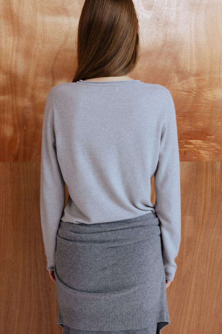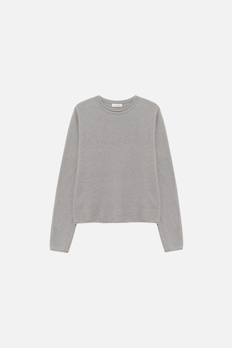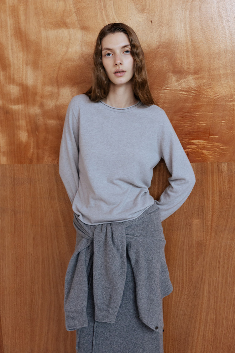 CASHMERE BLEND ROUND NECK FITTED KNIT TOP - SILVER STONE
