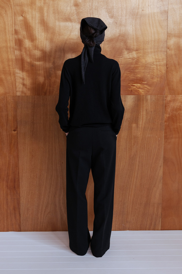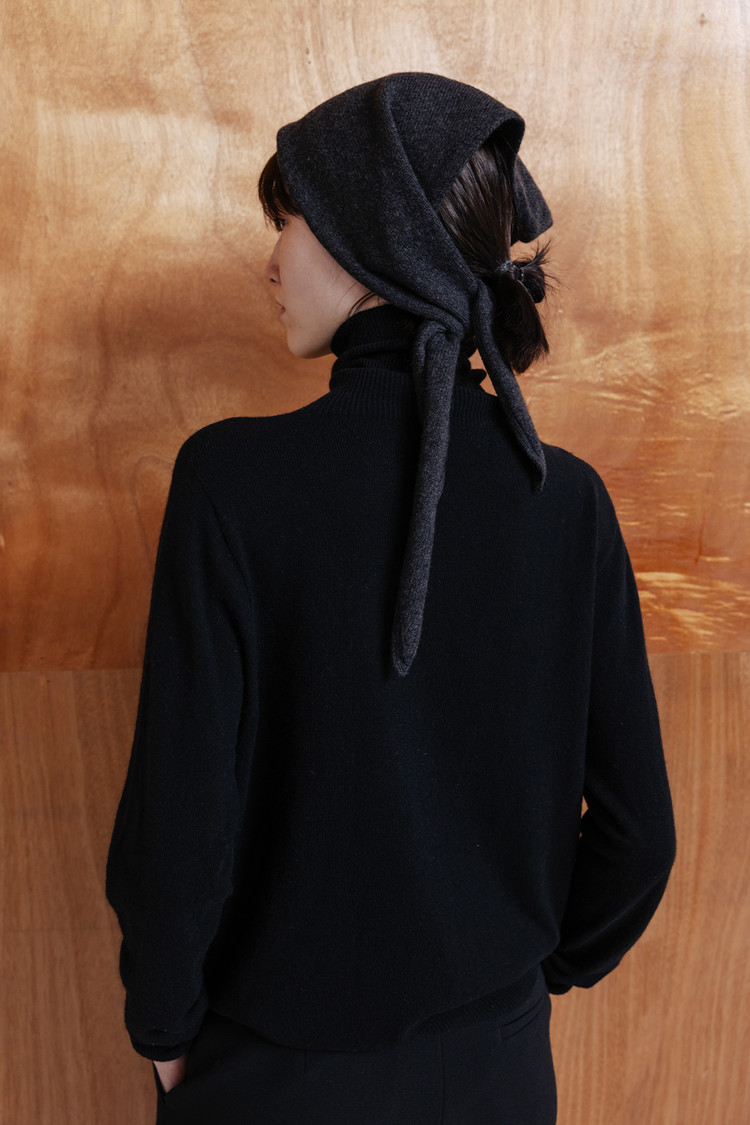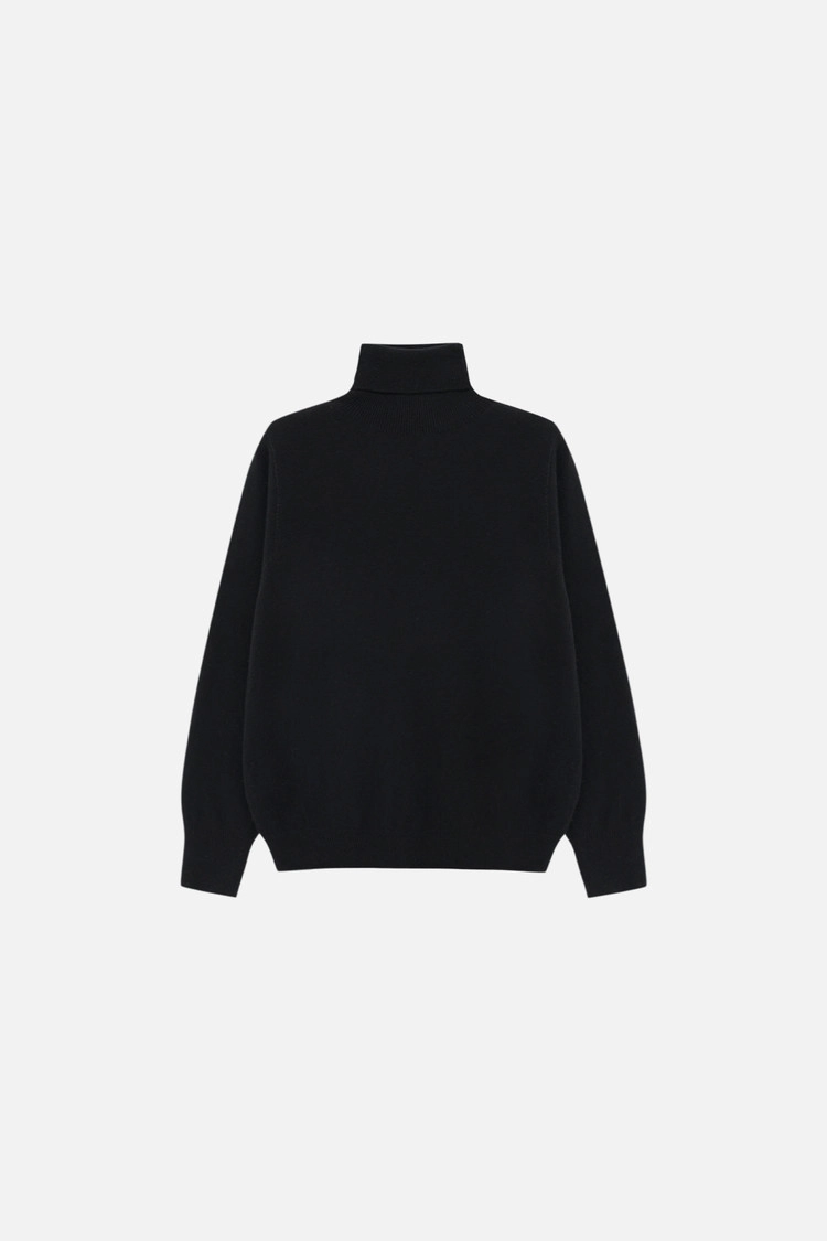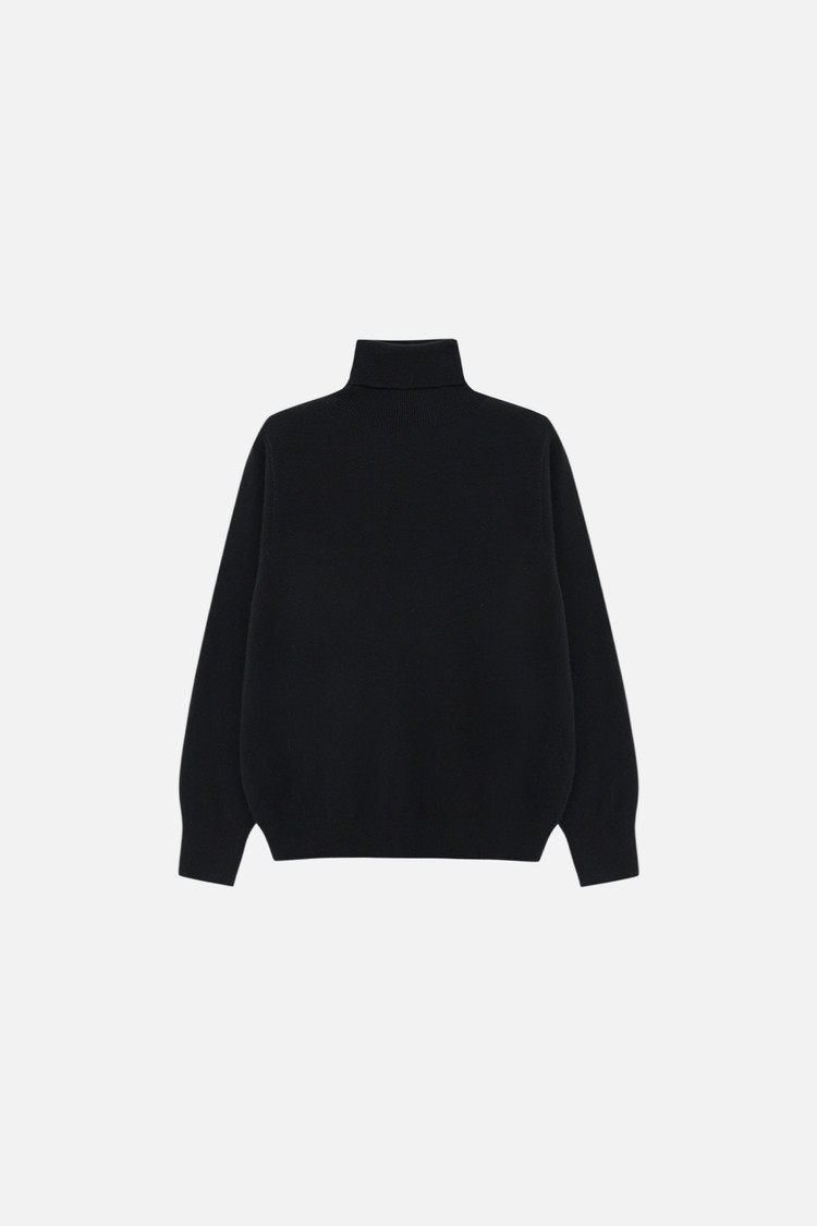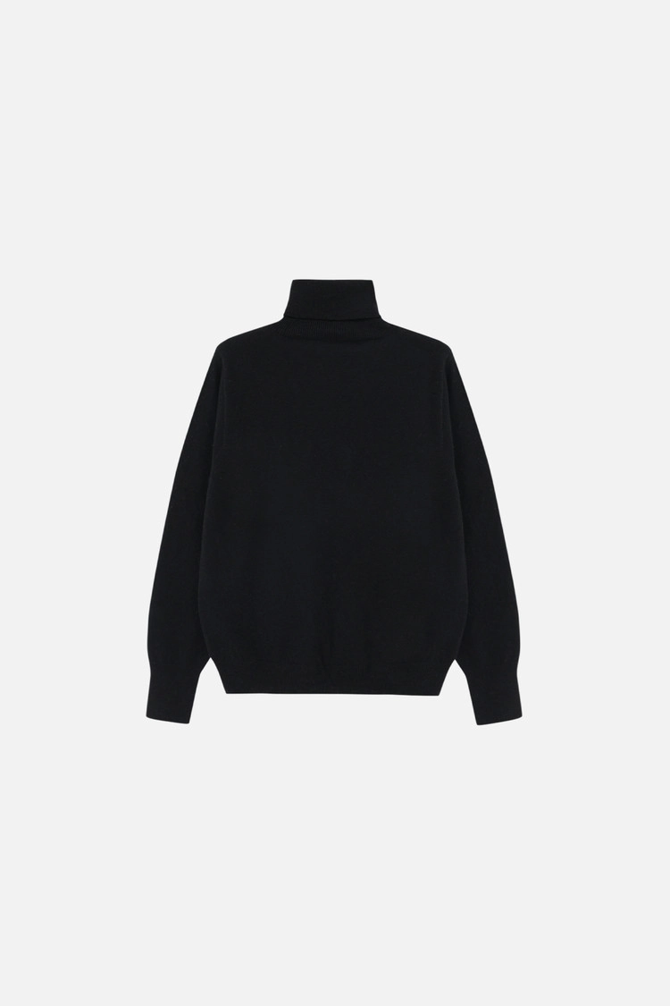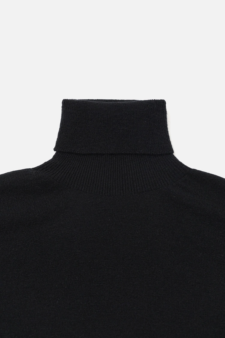 CASHMERE BLEND TURTLE NECK KNIT TOP - BLACK