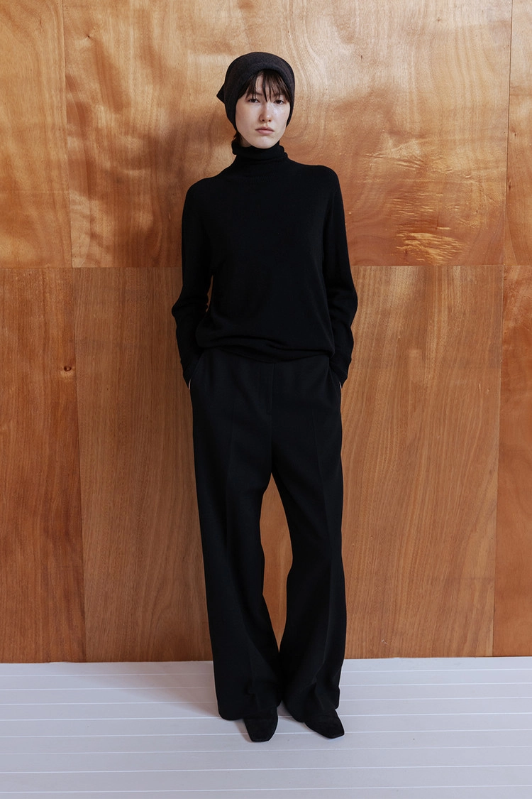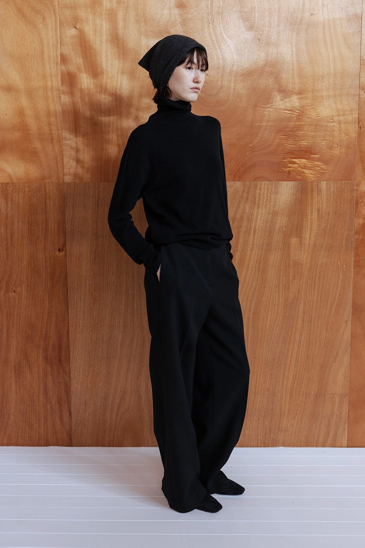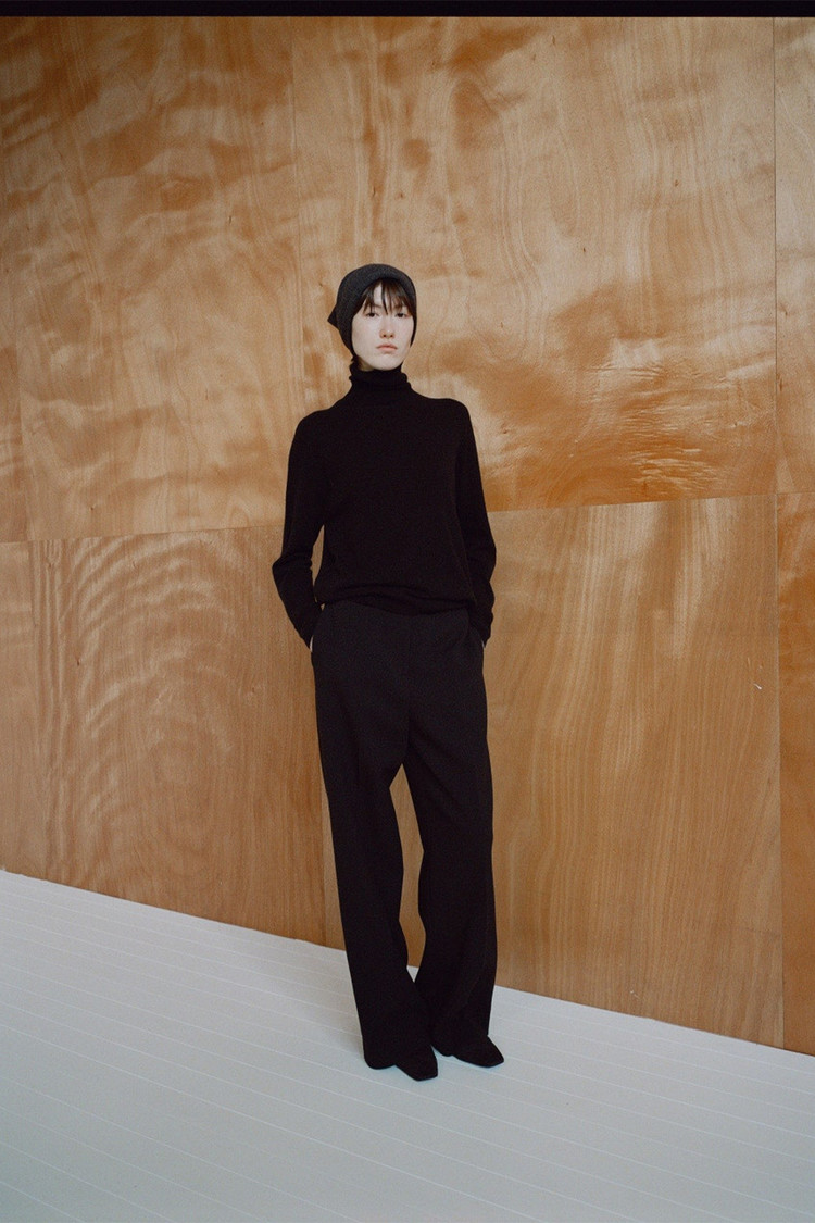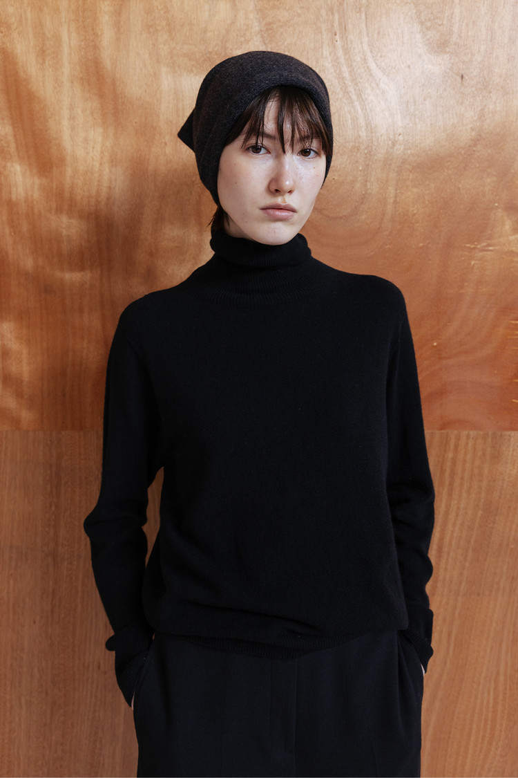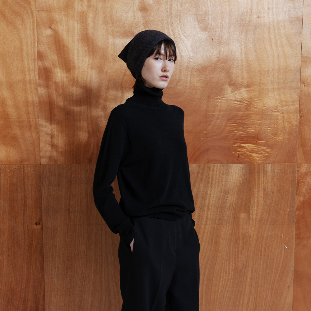 캐시미어·울 블렌드 소재로 제작된 터틀넥 심리스 니트 탑