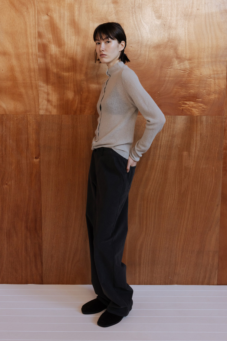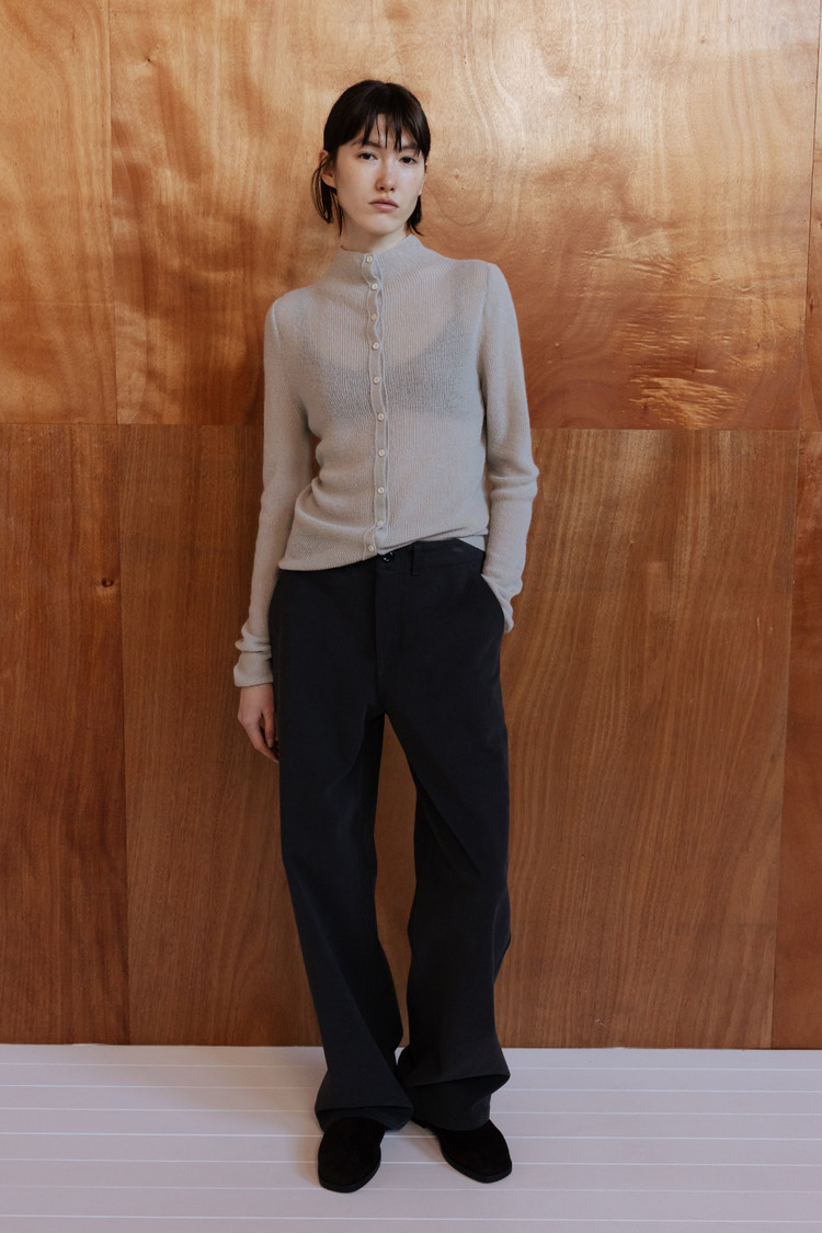 알파카·울 블렌드 소재로 제작된 슬림 니트 가디건