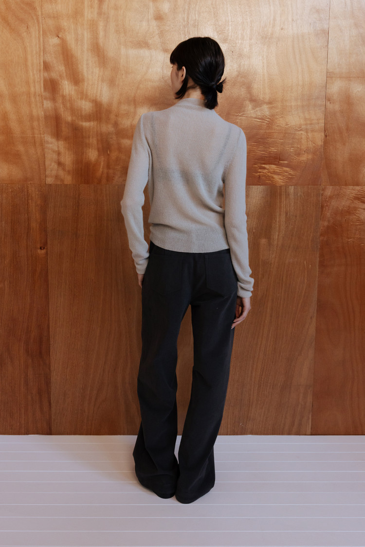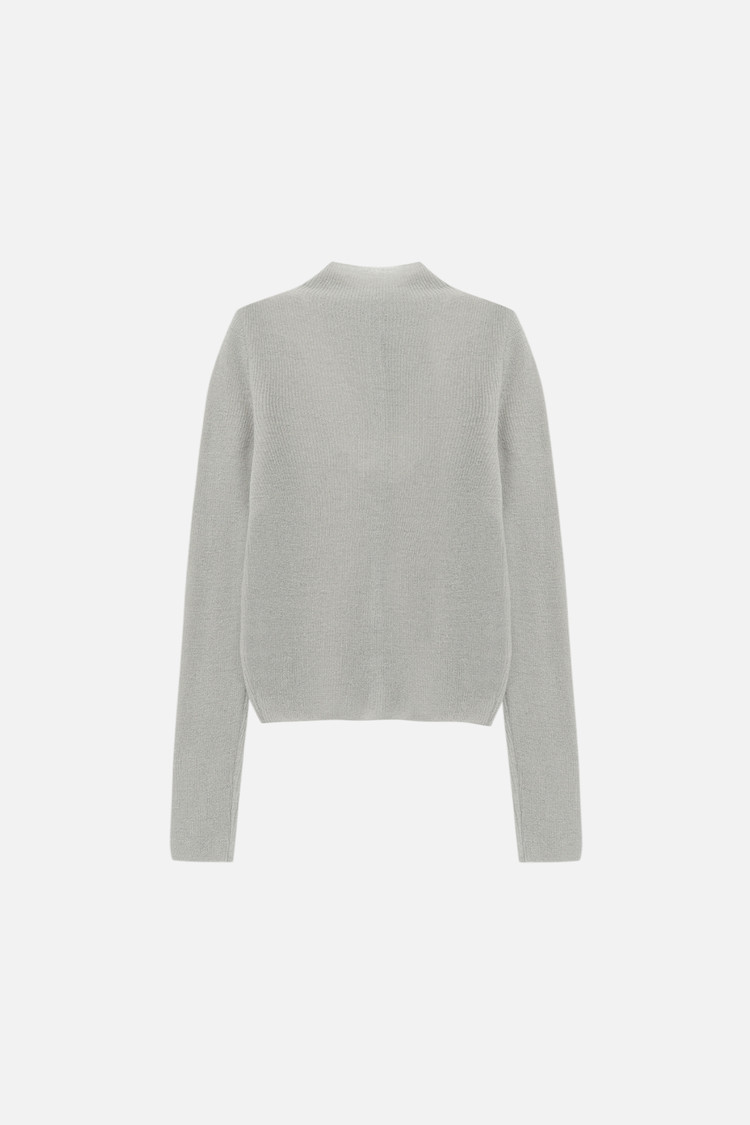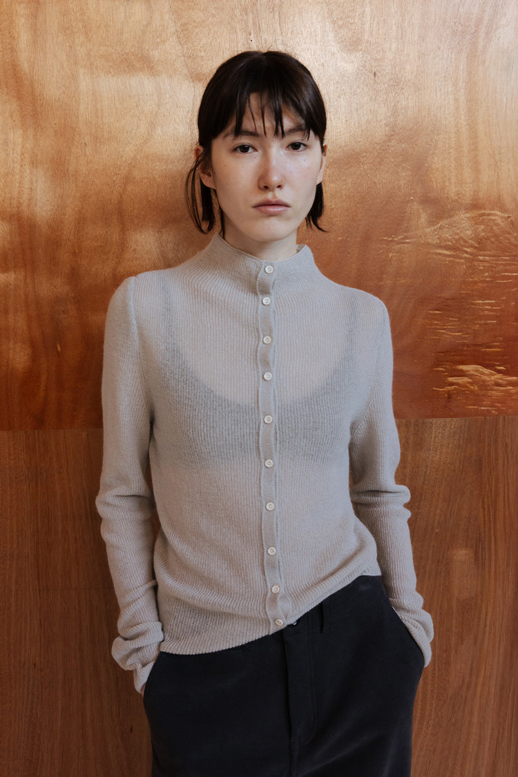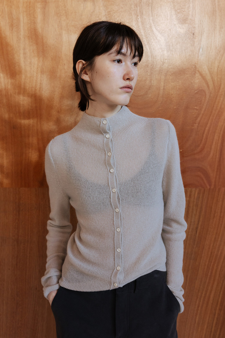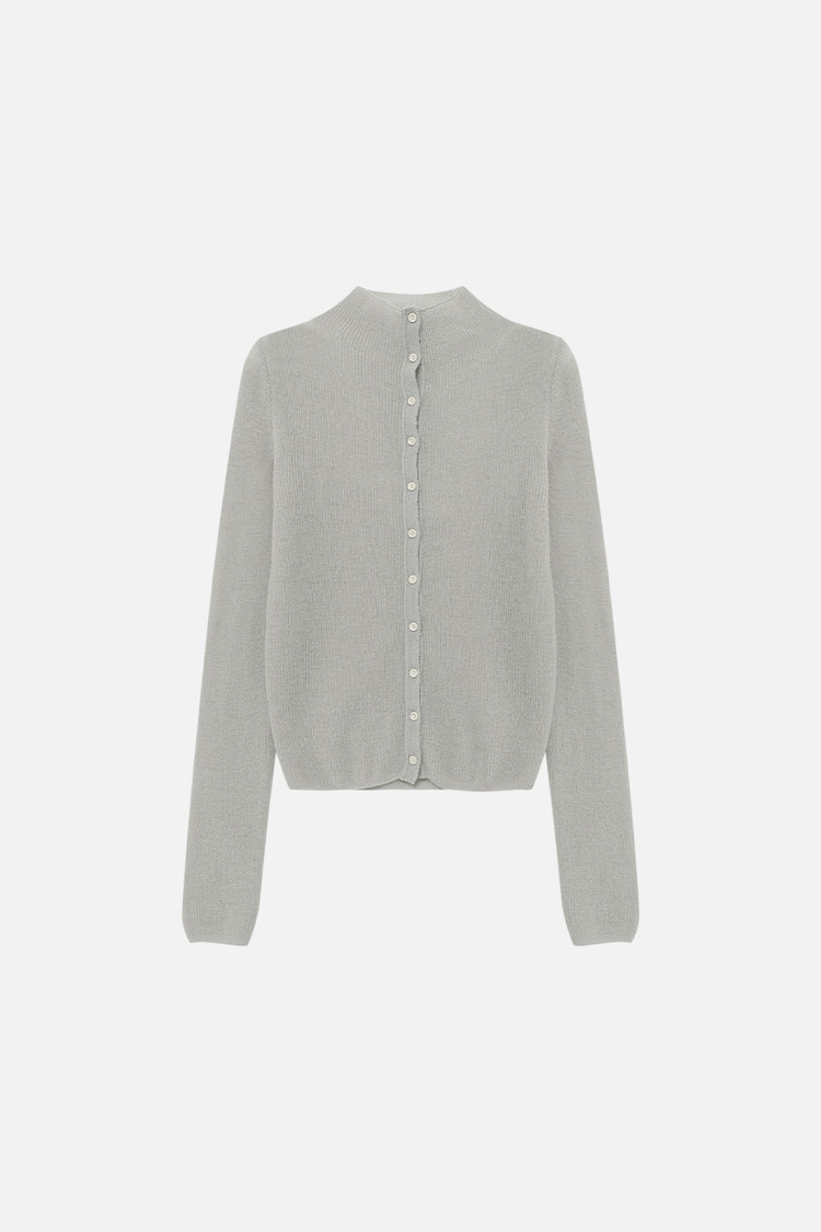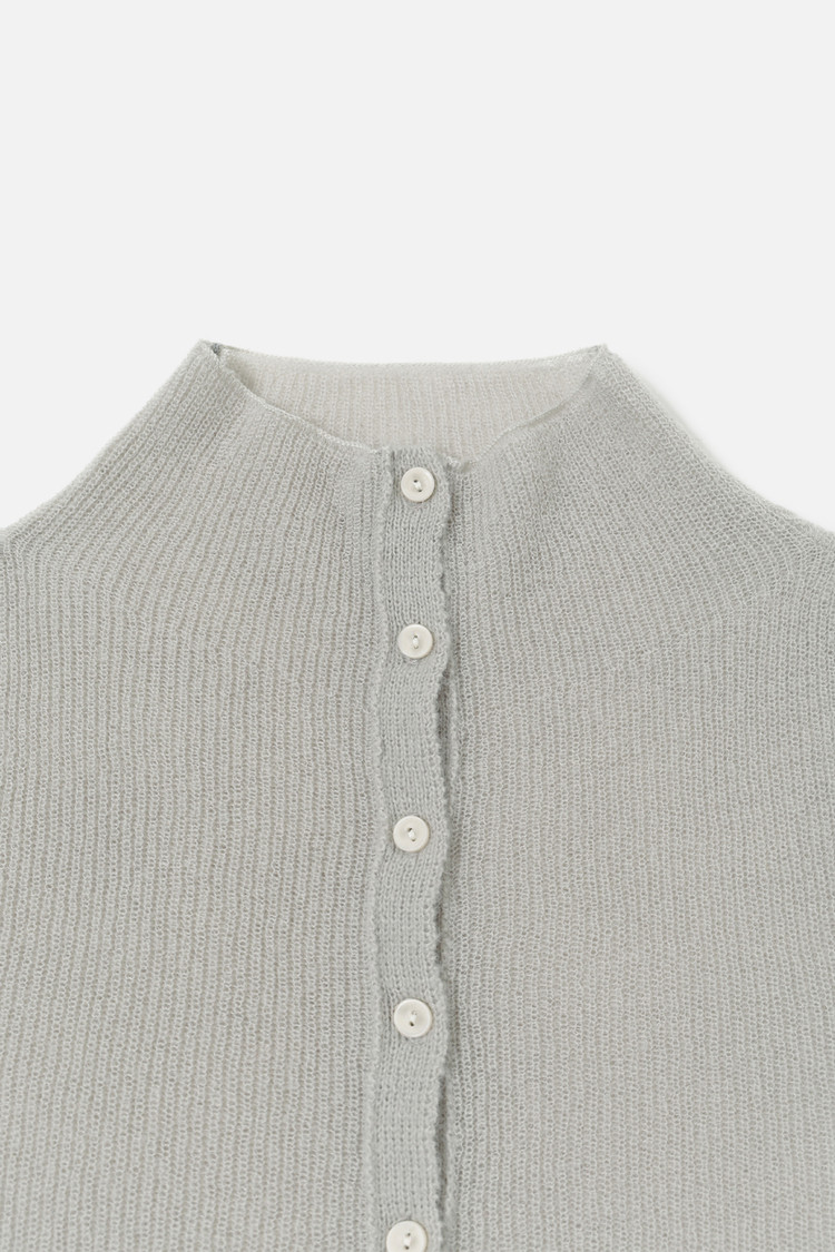 ALPACA BLEND MOCK NECK SLIM KNIT CARDIGAN - SILVER STONE