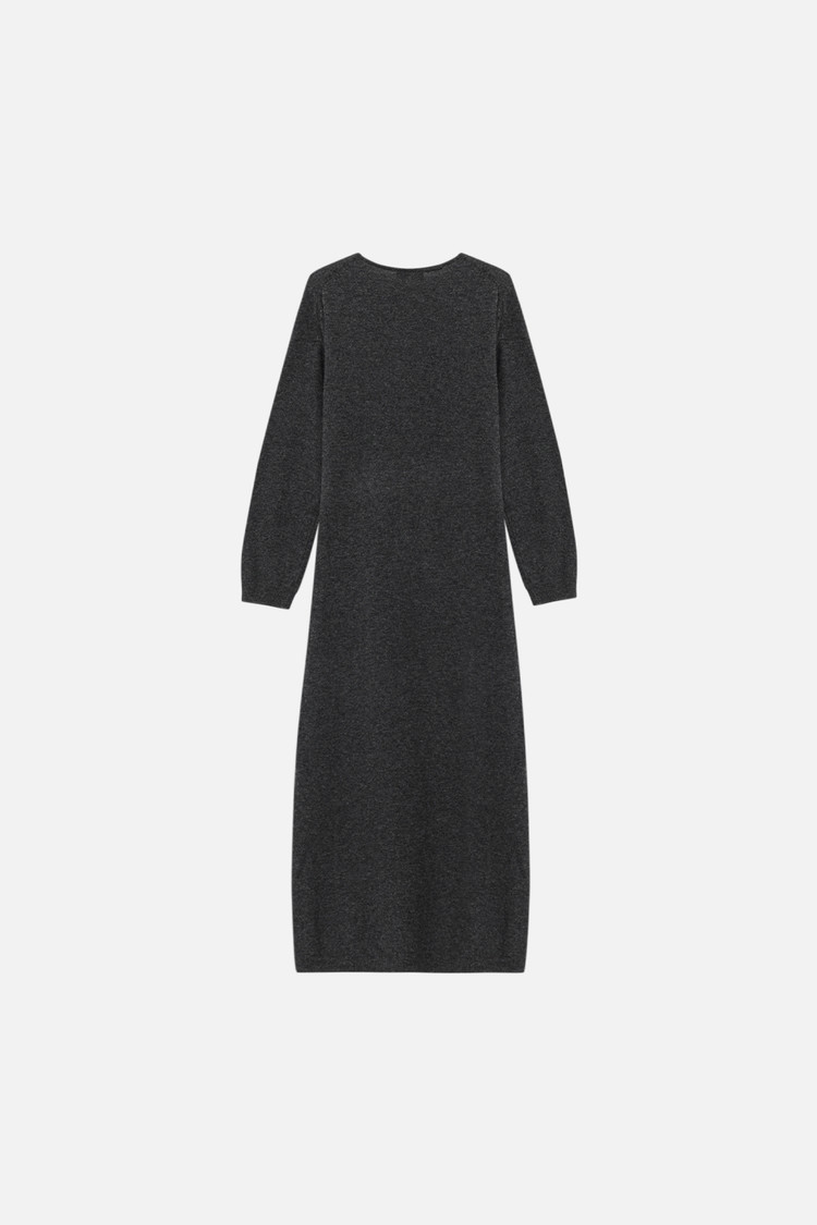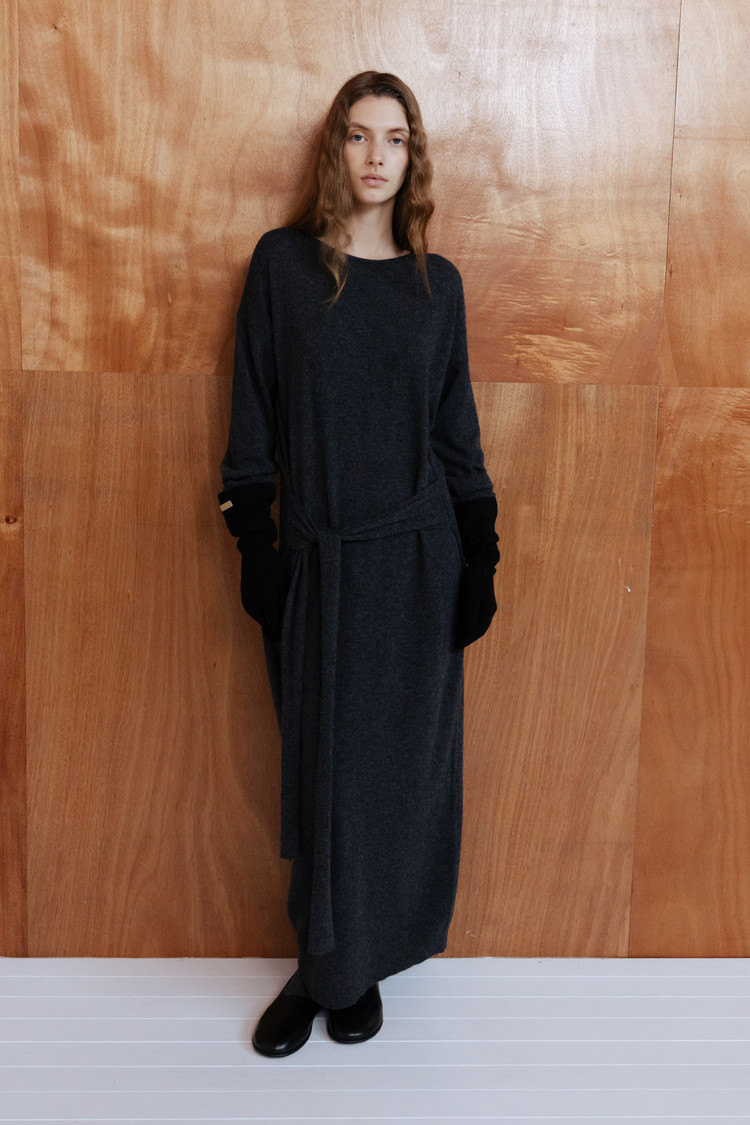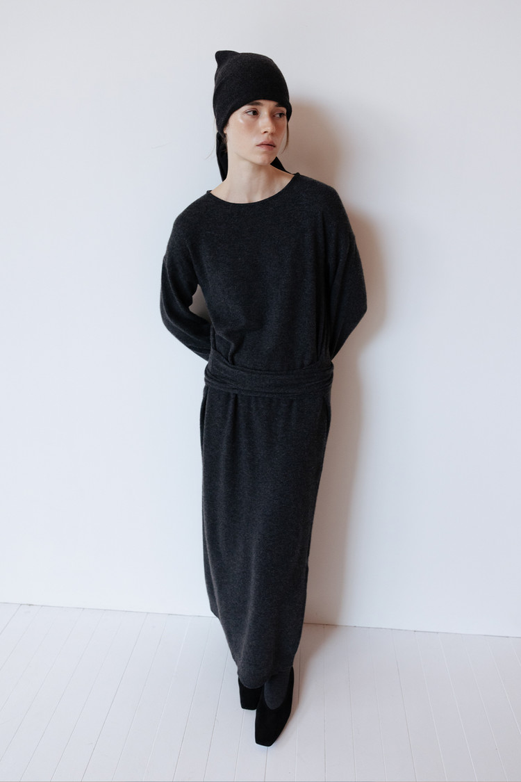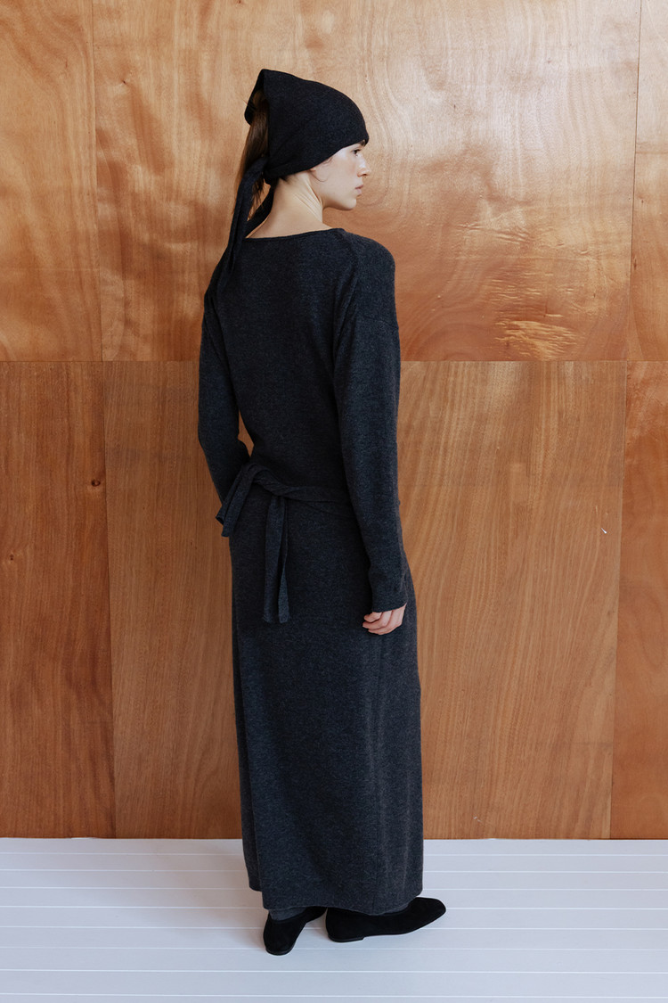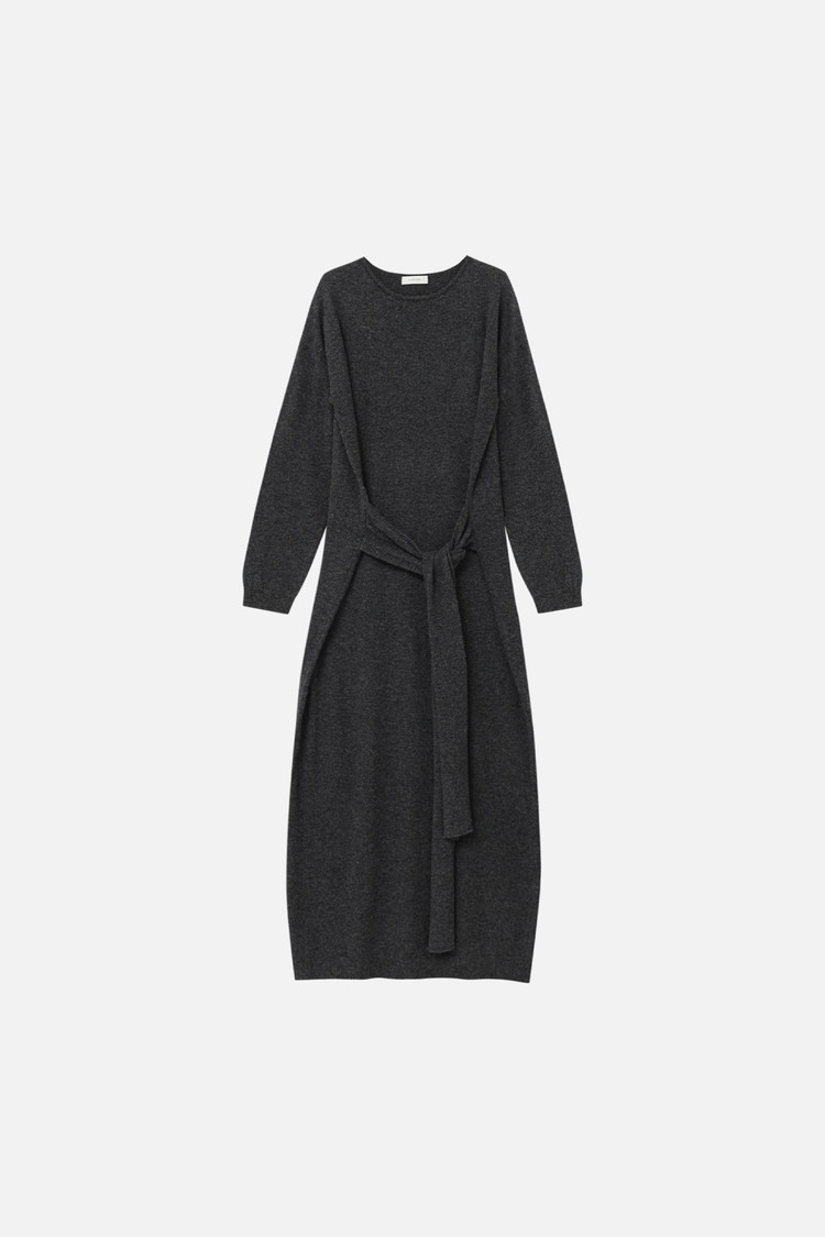 CASHMERE BLEND TIE KNIT DRESS - CHARCOAL