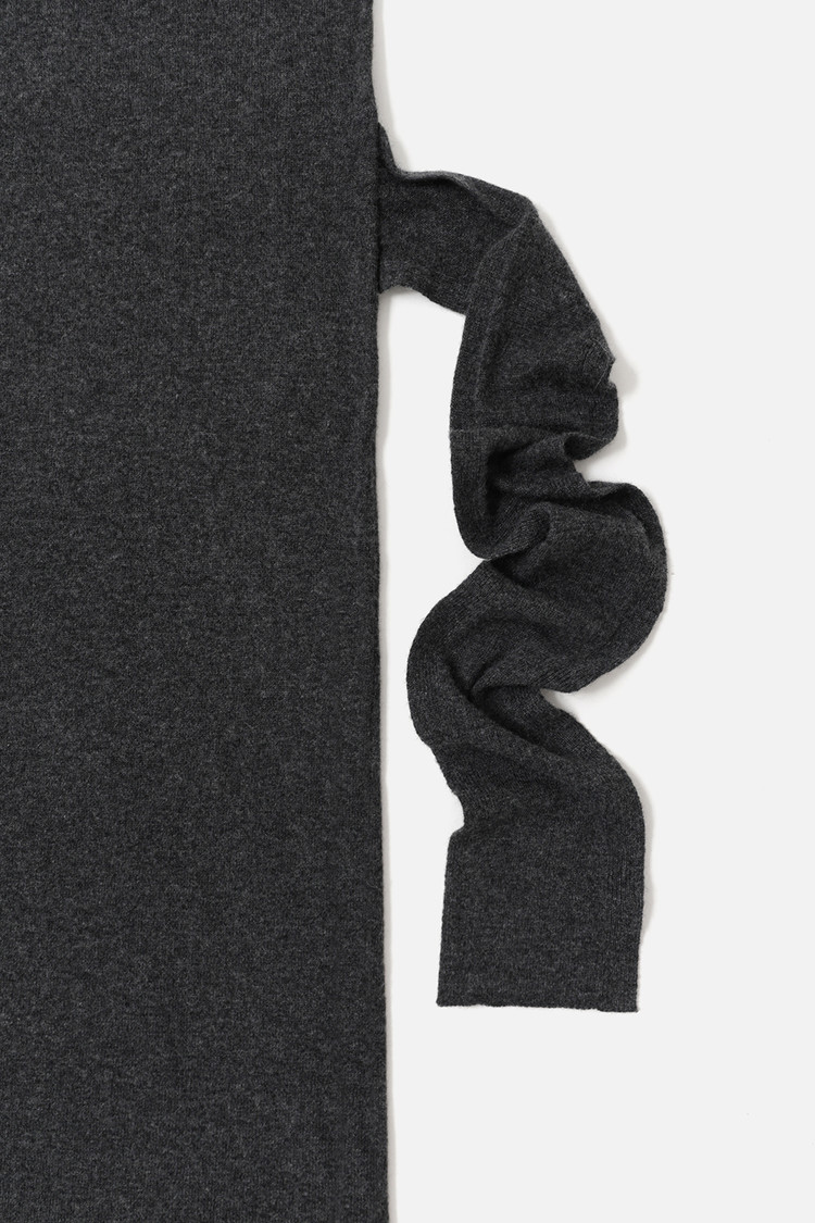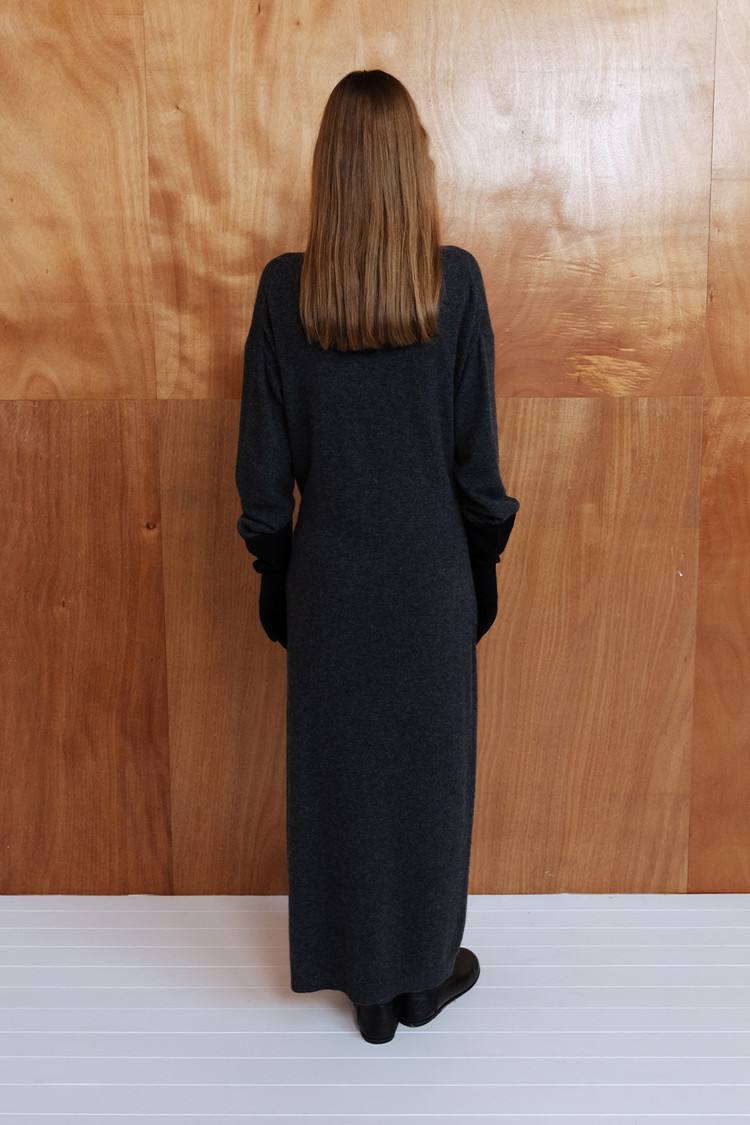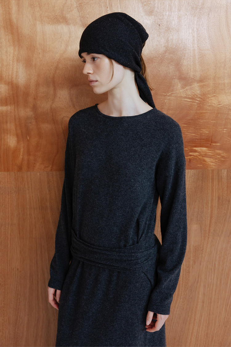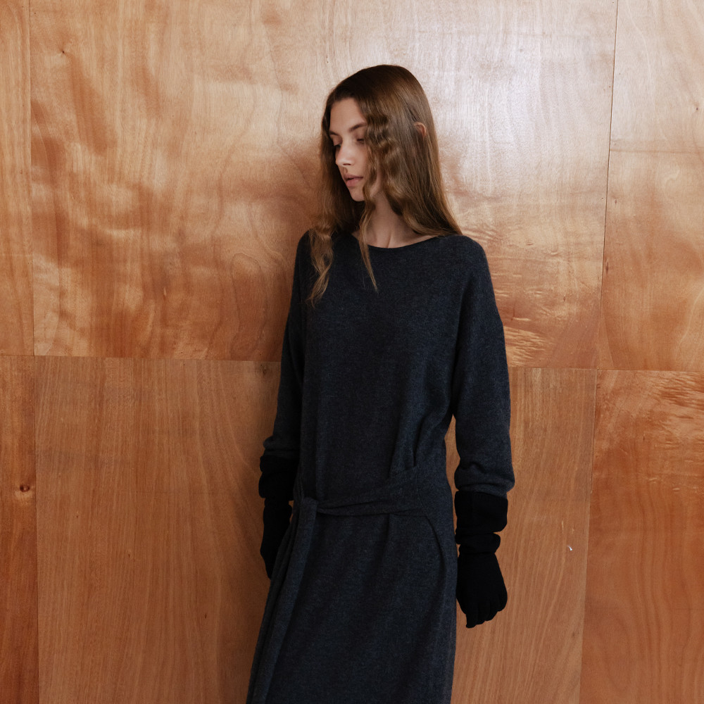 CASHMERE BLEND TIE KNIT DRESS - CHARCOAL