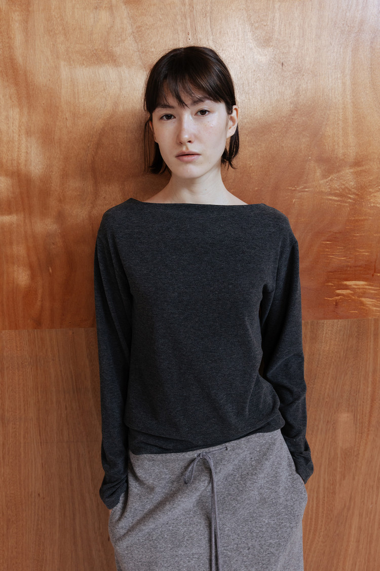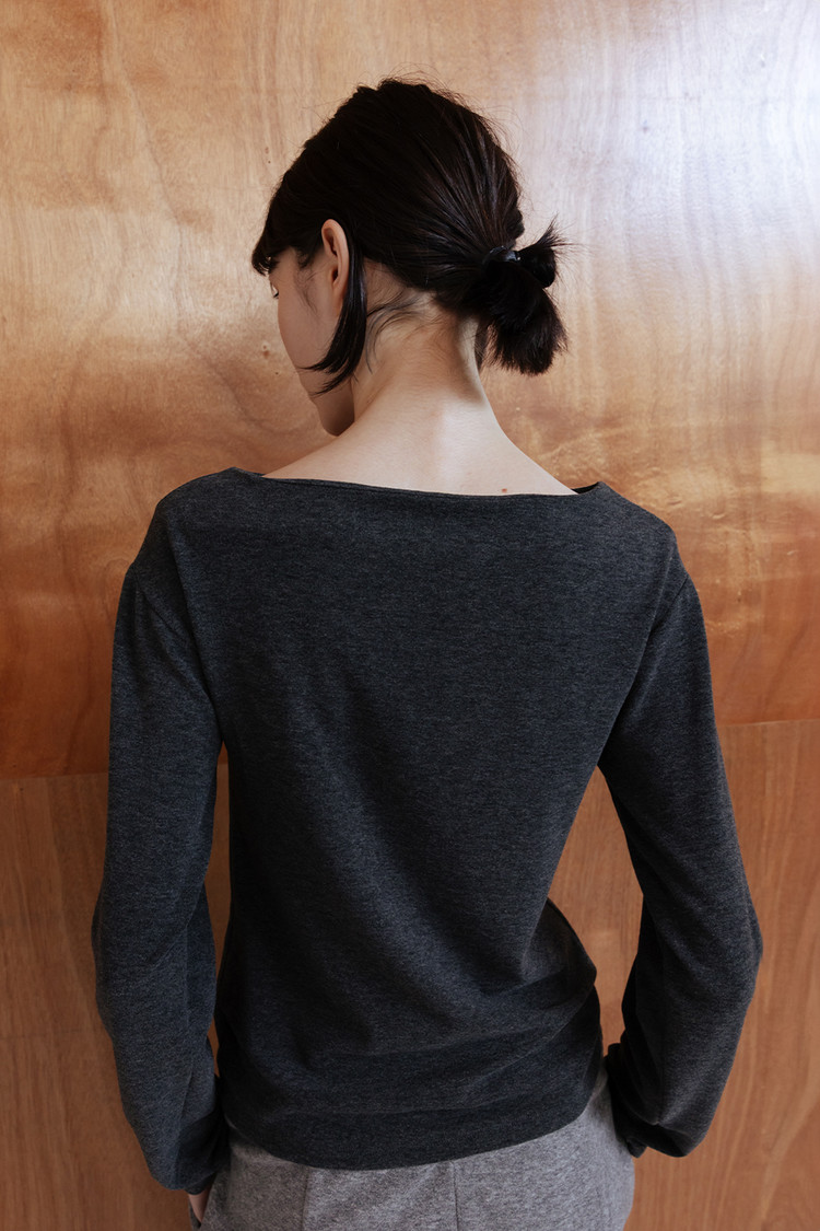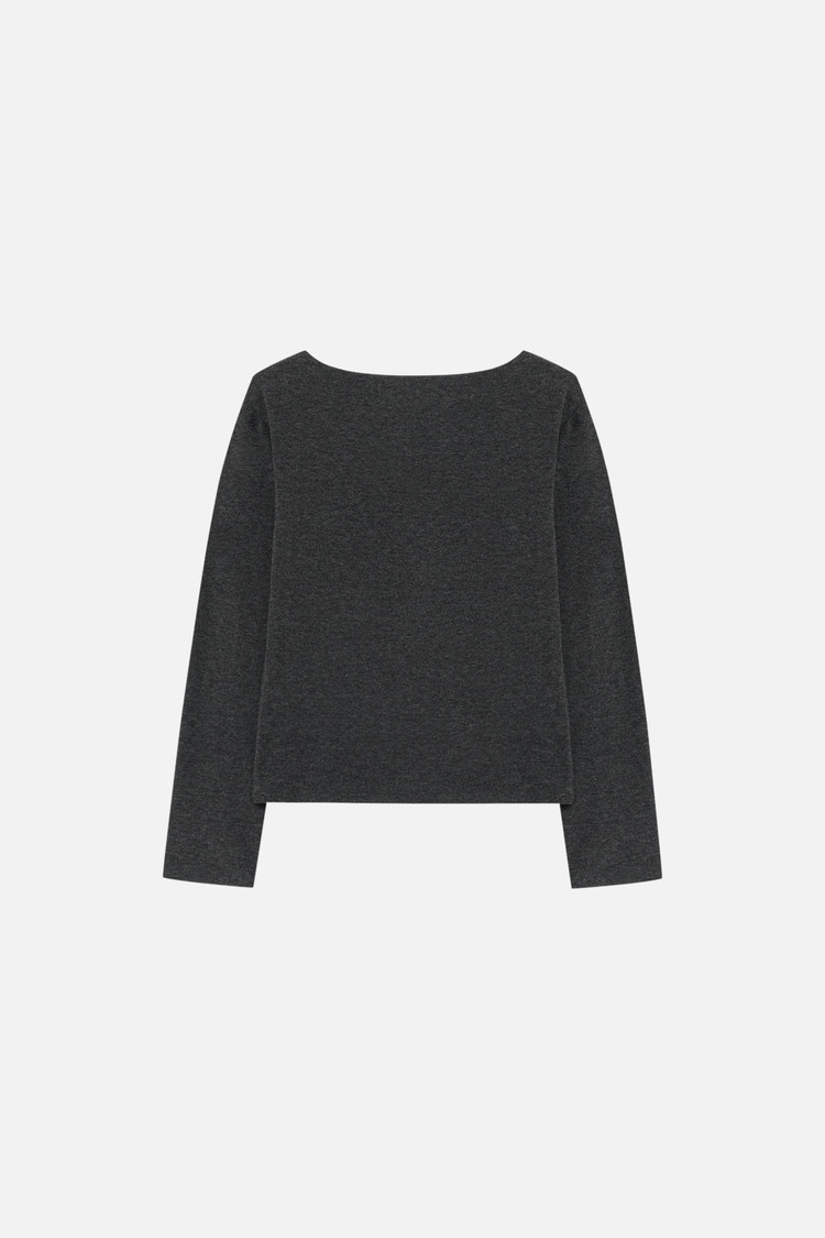 SOFT DROP SHOULDER BOAT NECK JERSEY TOP - CHARCOAL