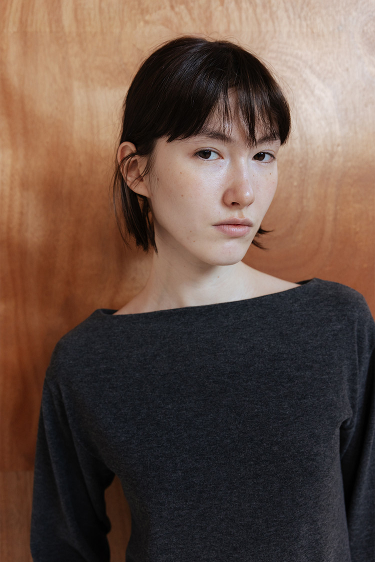 간결하고 우아한 실루엣의 보트넥 저지 탑