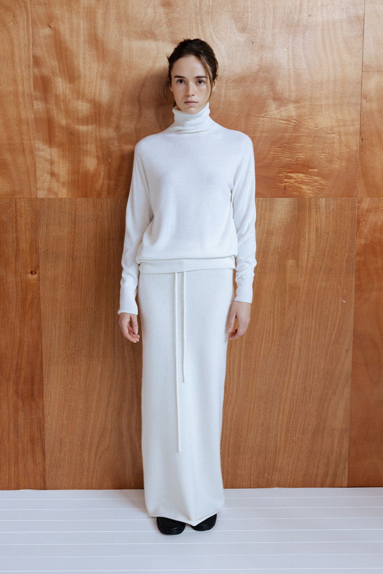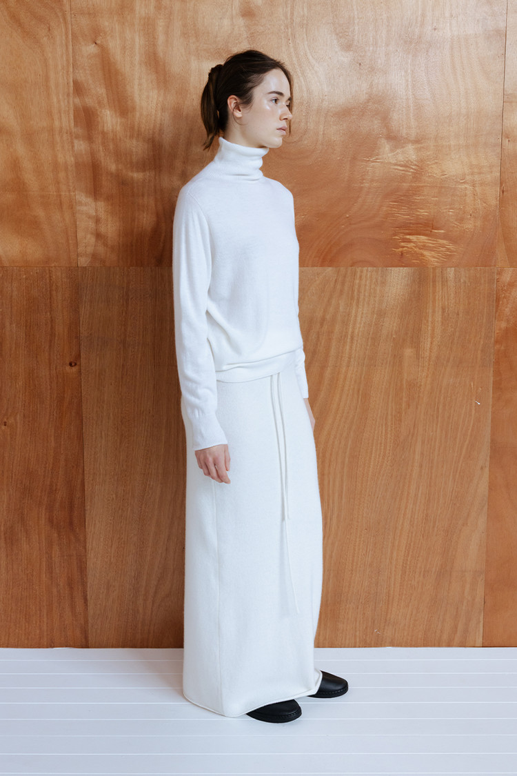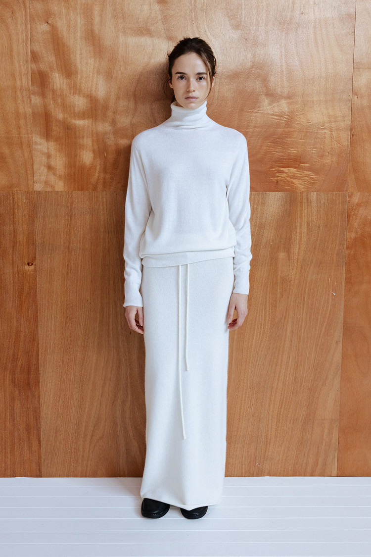 [REORDER / 12/19(금) 예약배송] MERINO WOOL BLEND STRING KNIT SKIRT - IVORY
