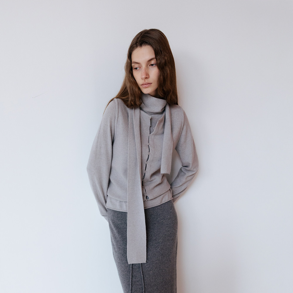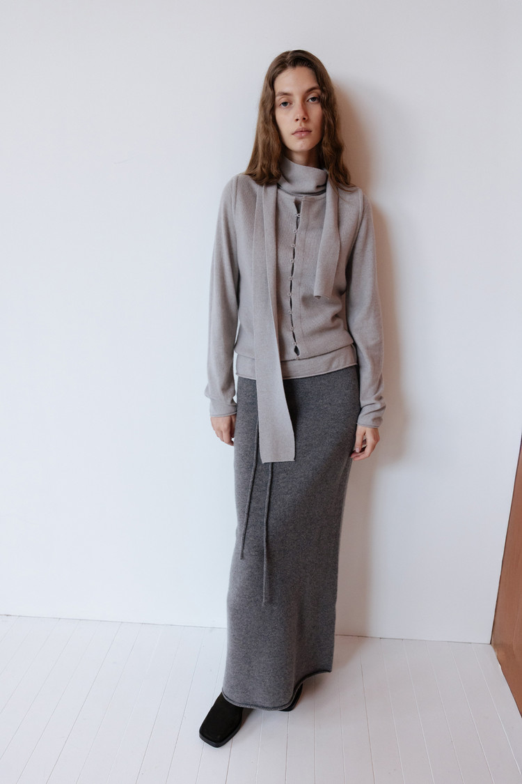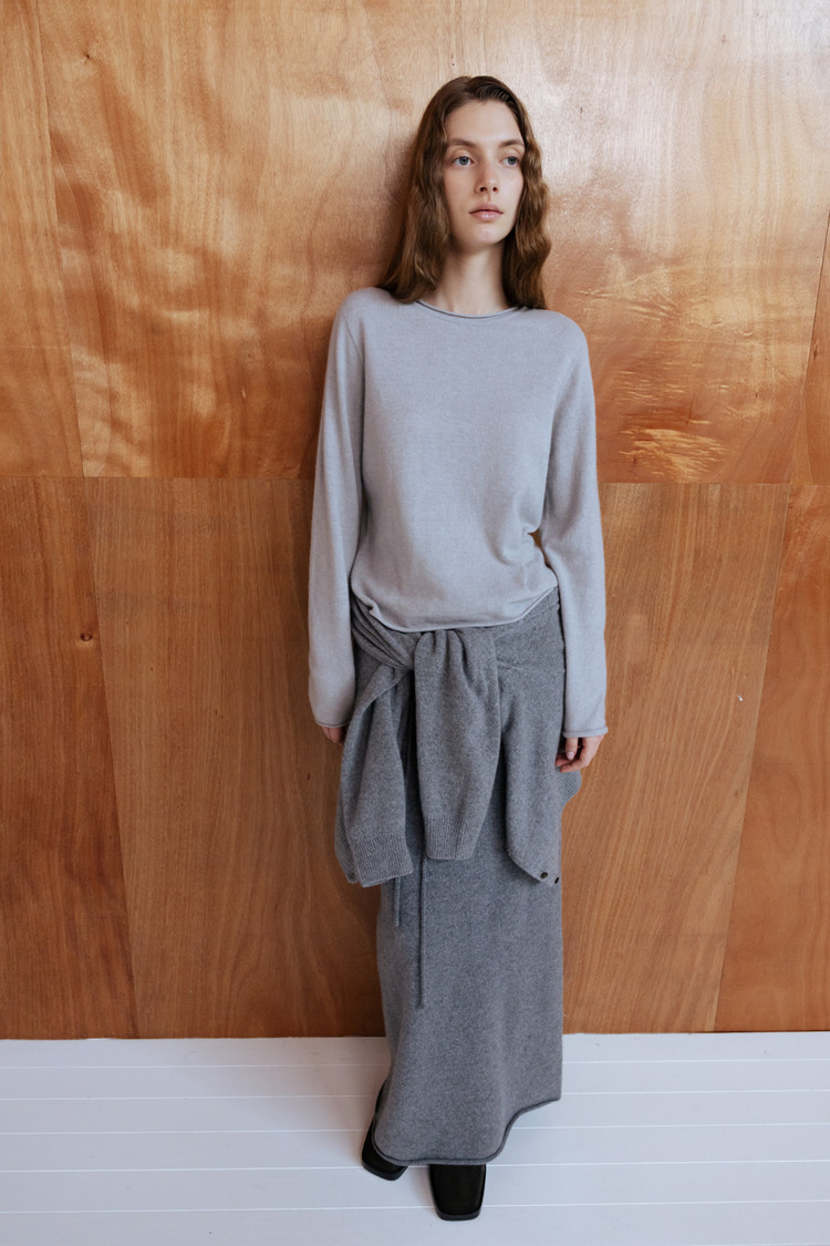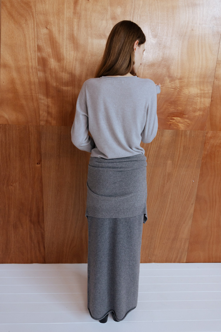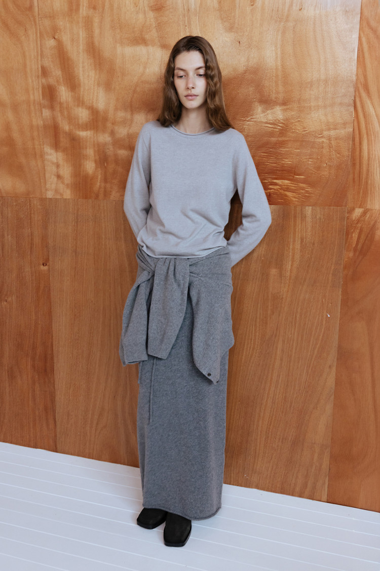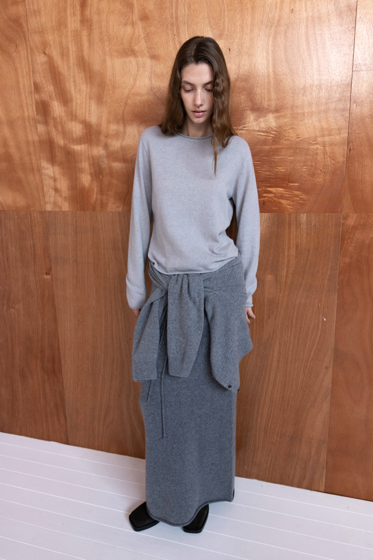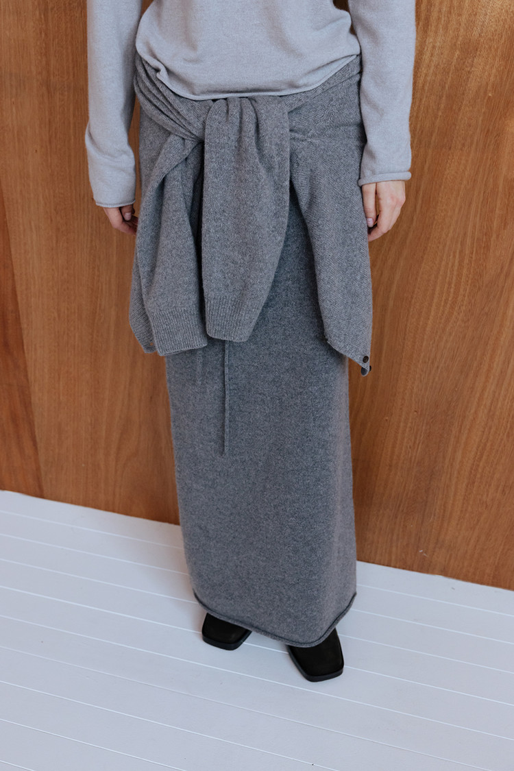 [REORDER / 12/19(금) 예약배송] MERINO WOOL BLEND STRING KNIT SKIRT - M GREY