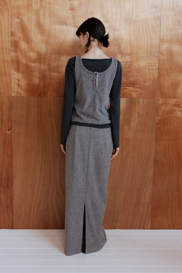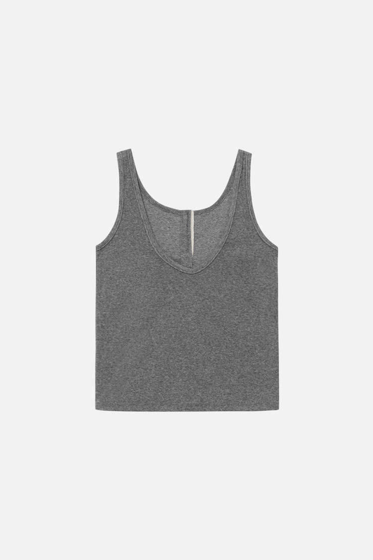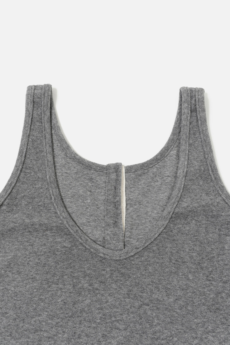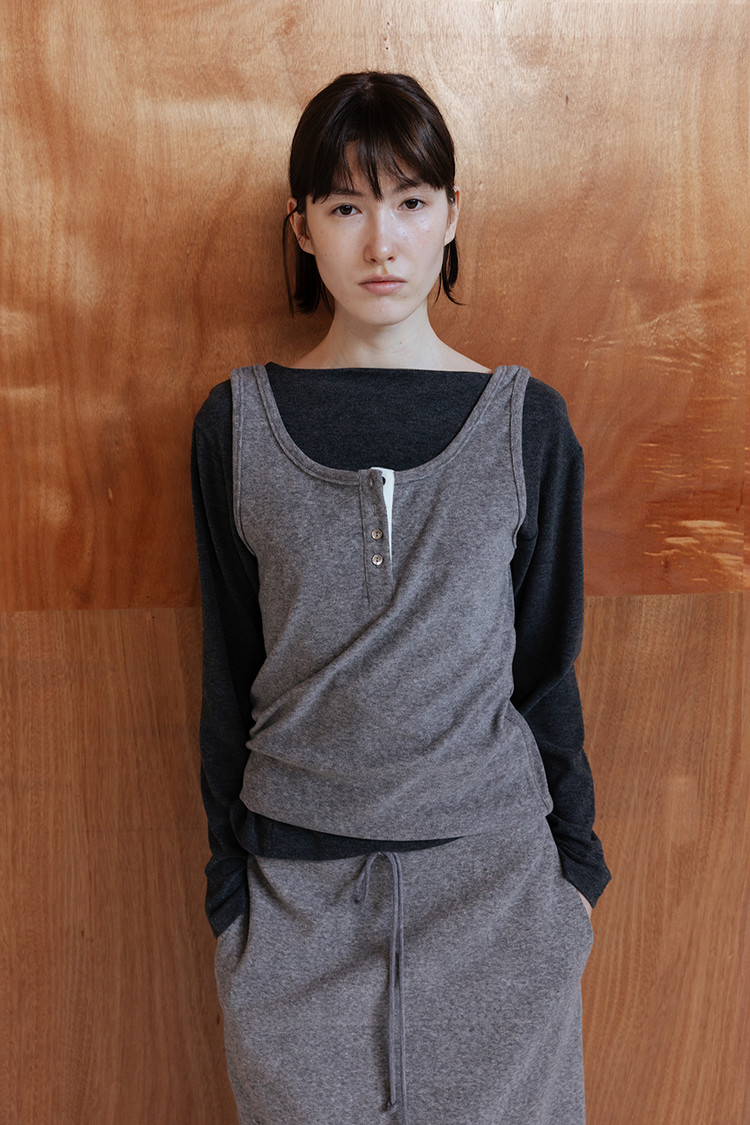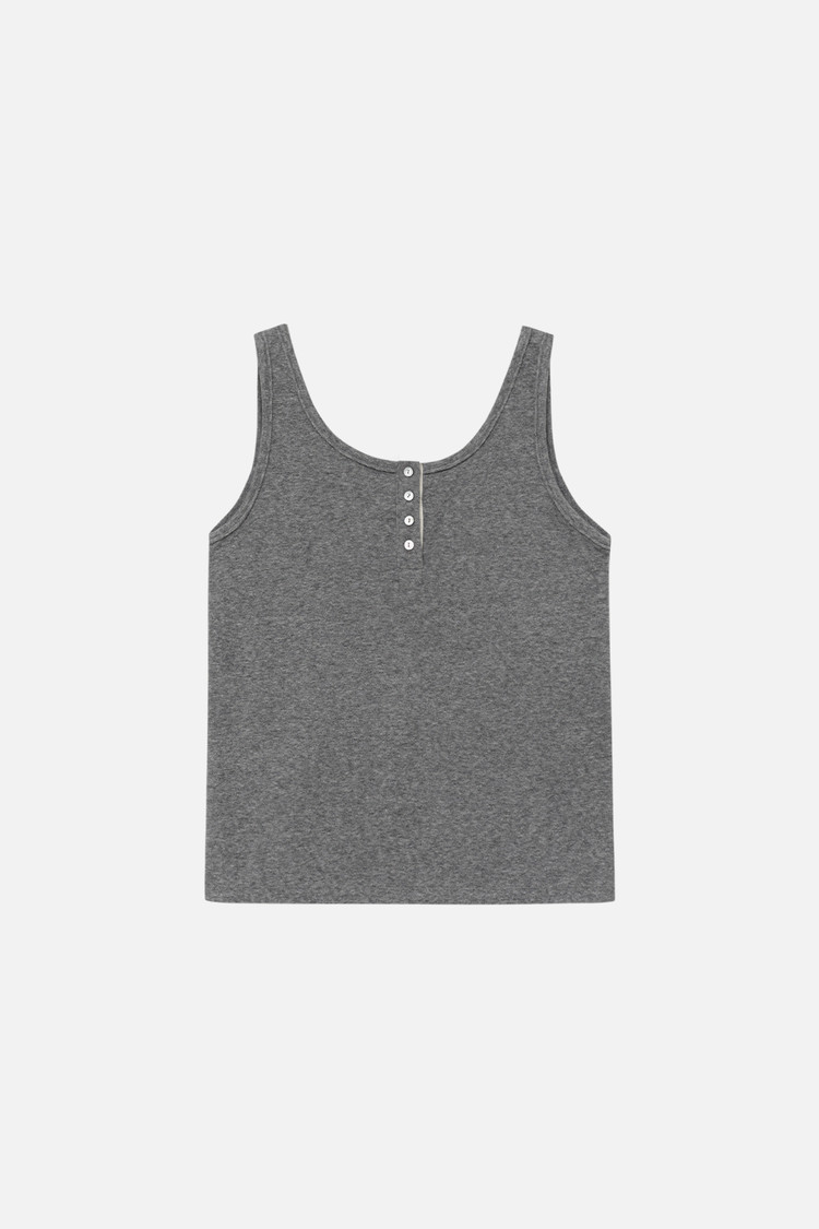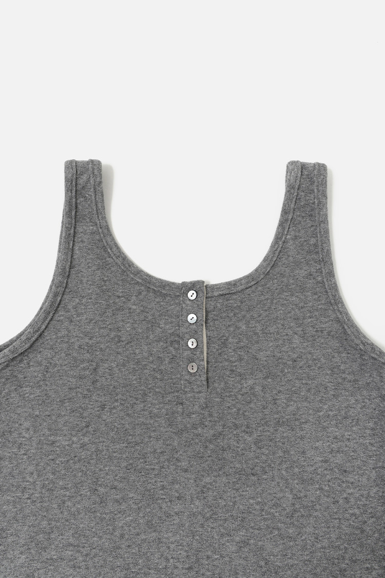 TERRY HENLEY-NECK SLEEVELESS JERSEY TOP - D GREY
