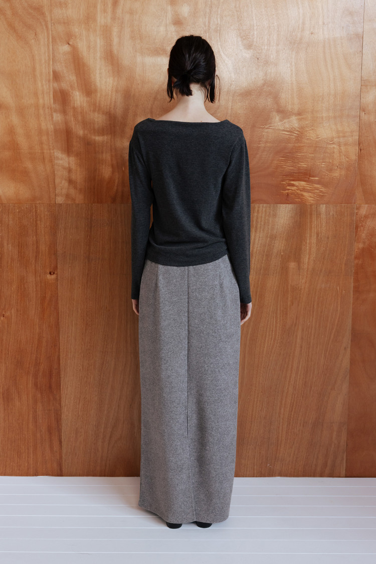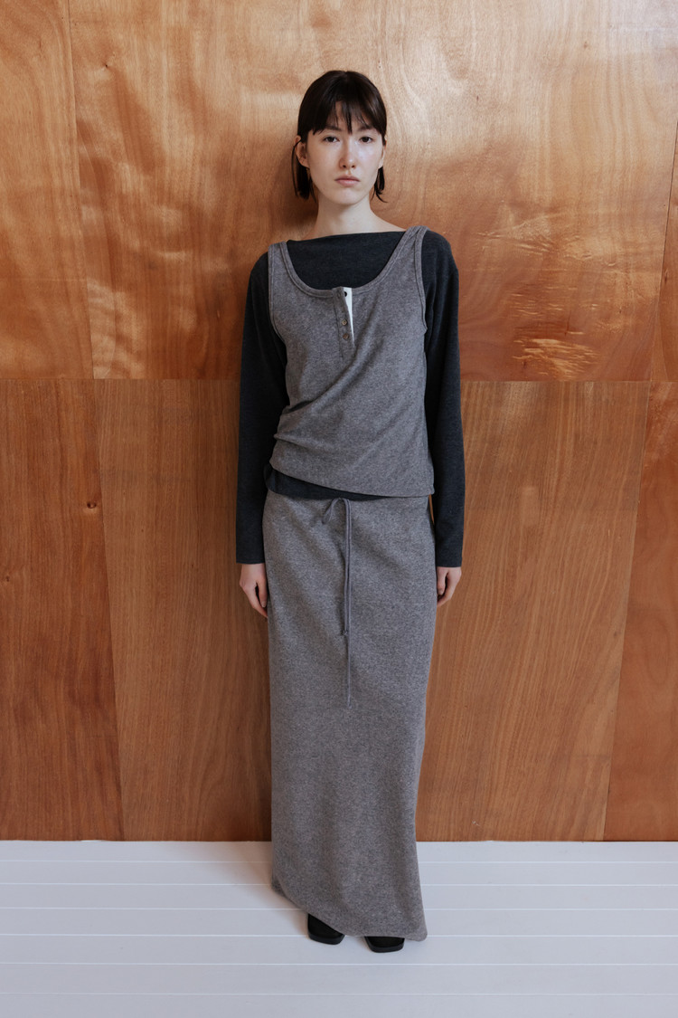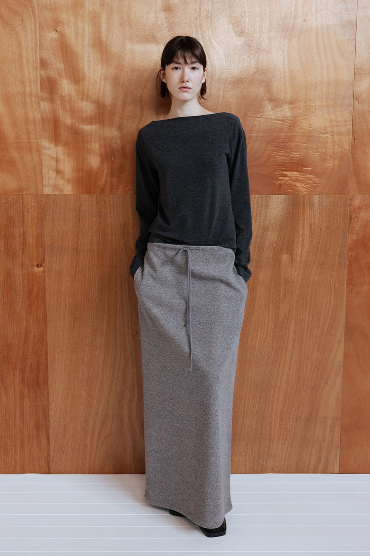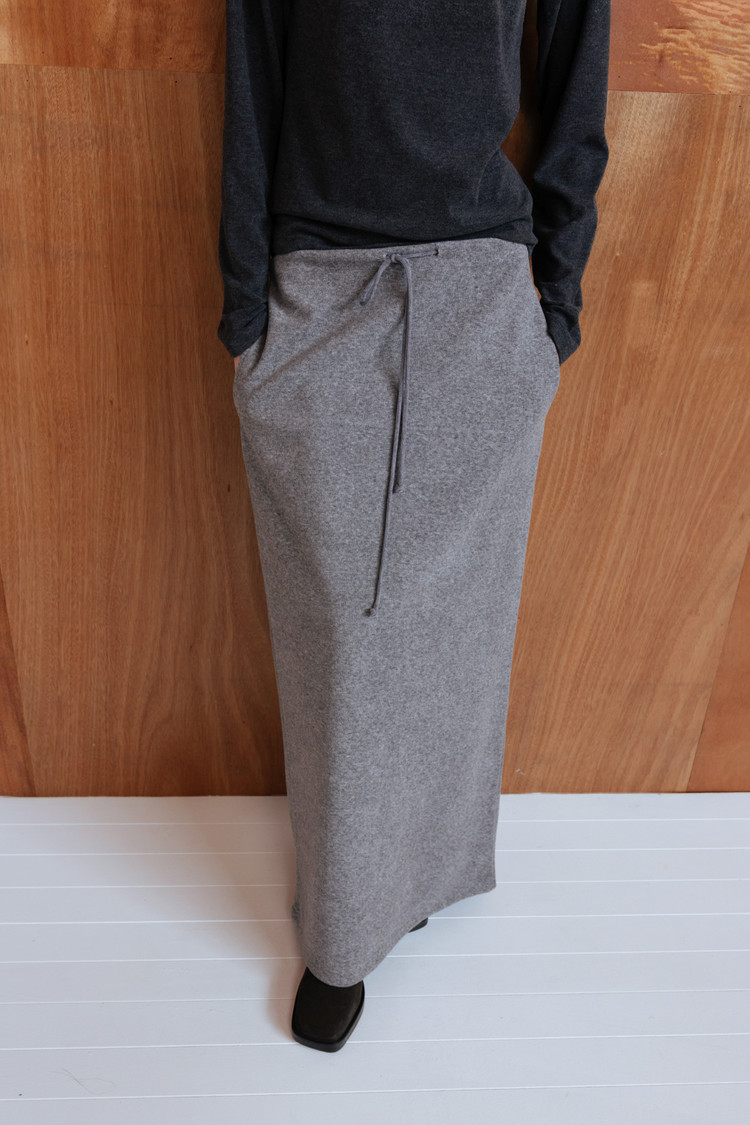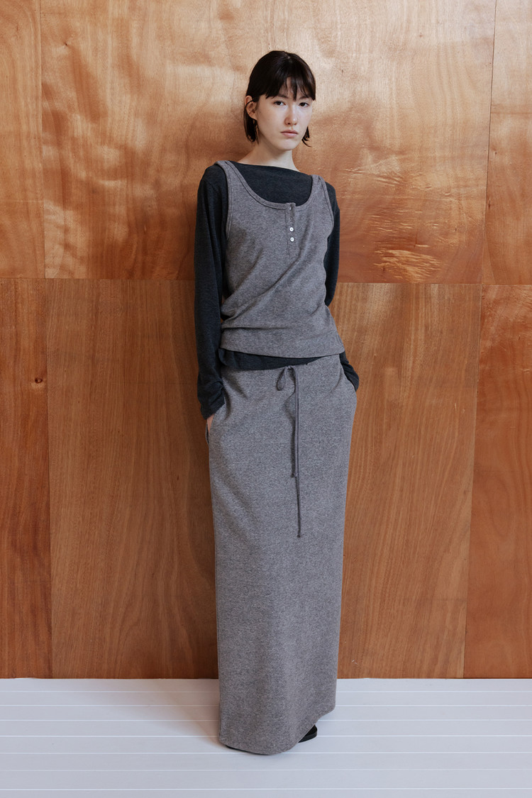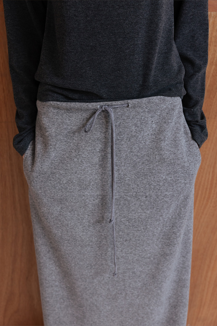 은은한 텍스처가 돋보이는 테리 소재로 제작된 롱 저지 스커트