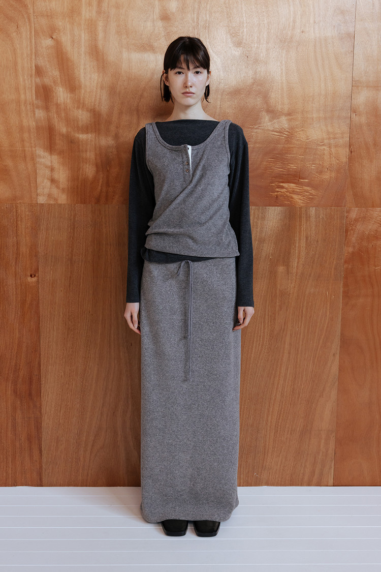 미니멀한 디자인과 발목까지 이어지는 맥시 기장으로 차분하고 감각적인 무드 연출