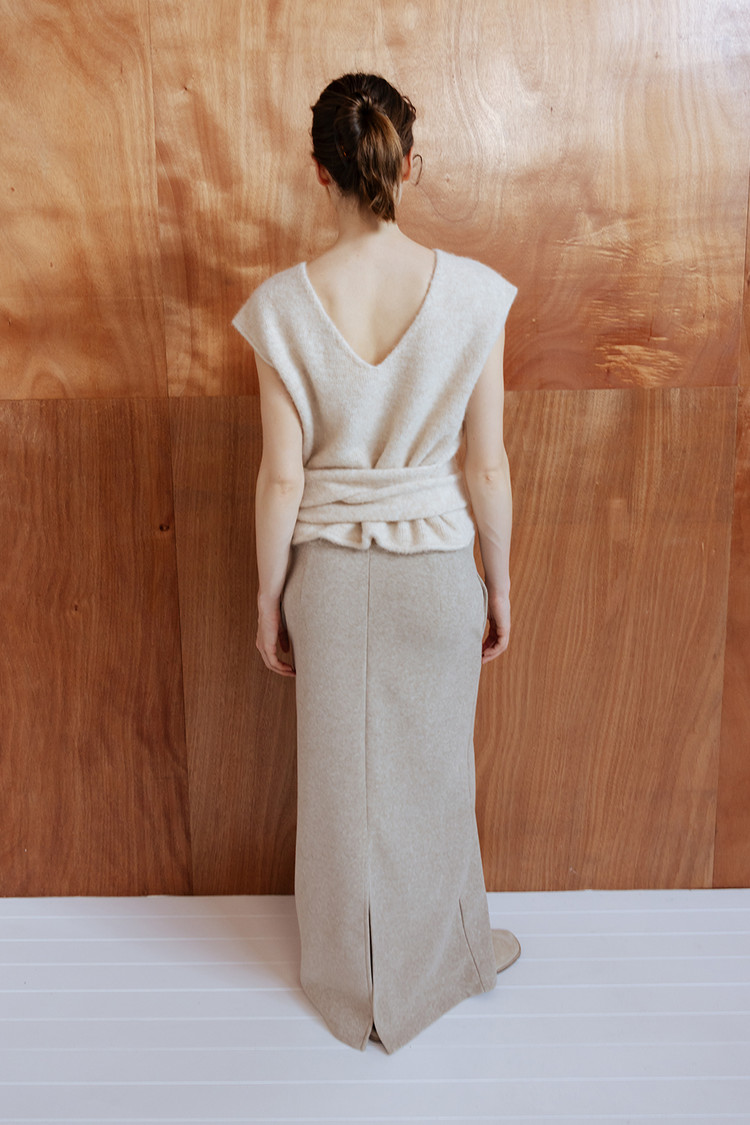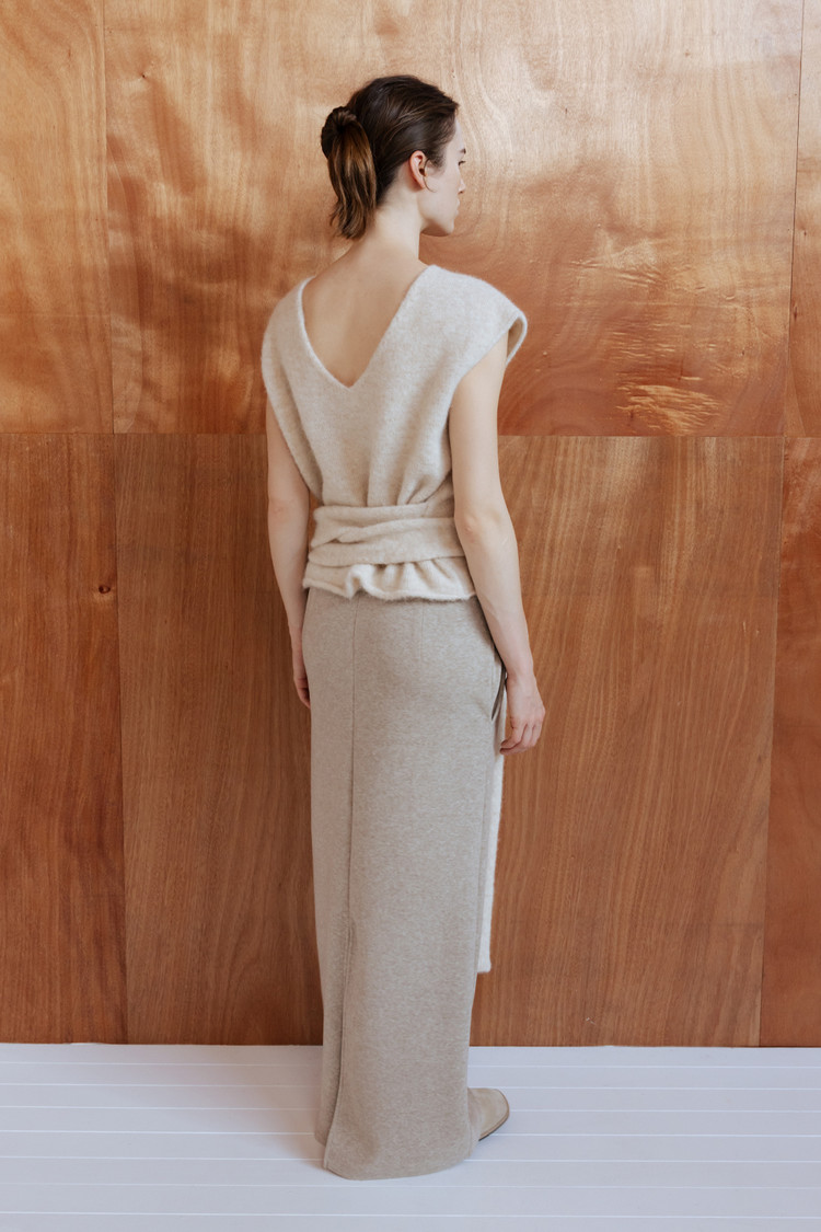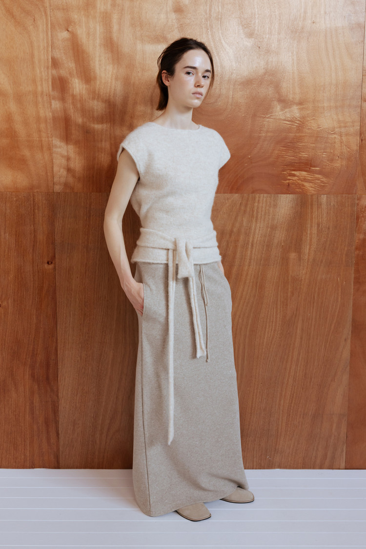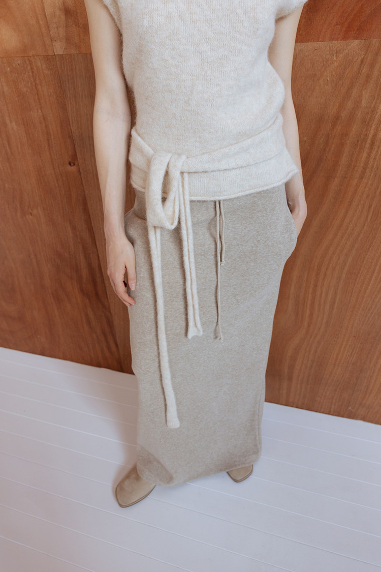 은은한 텍스처가 돋보이는 테리 소재로 제작된 롱 저지 스커트