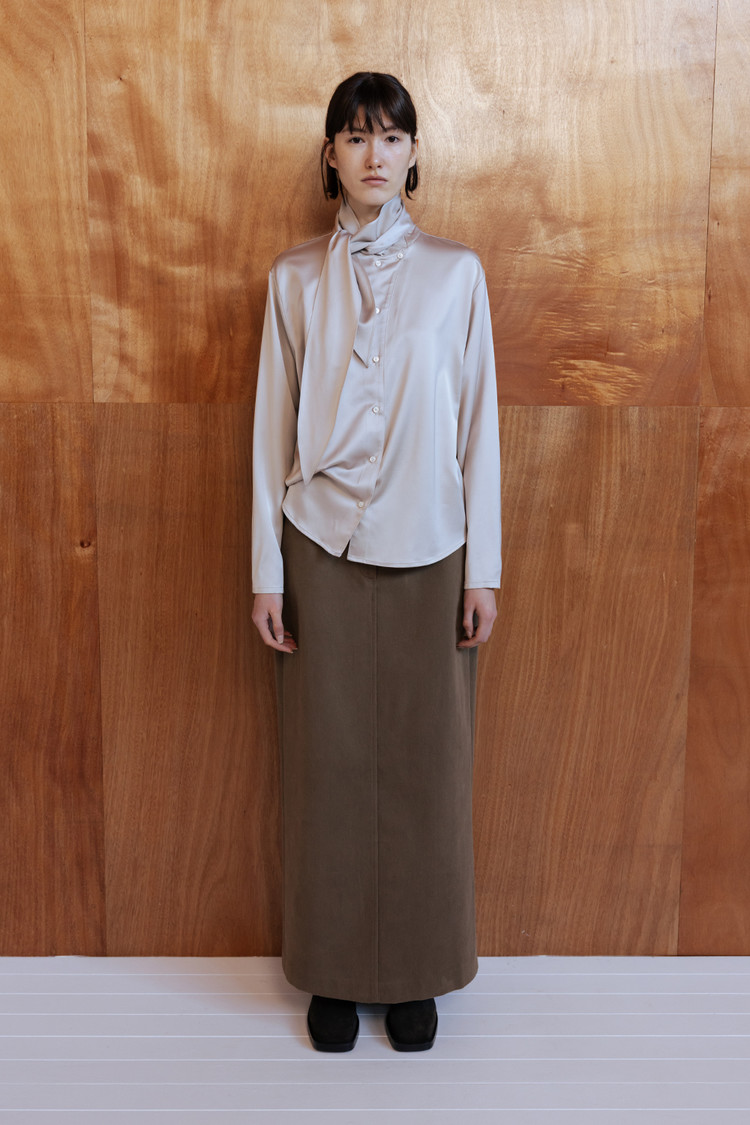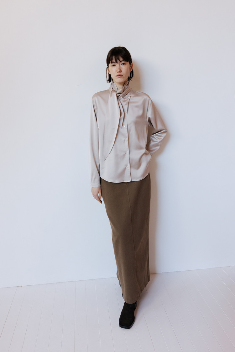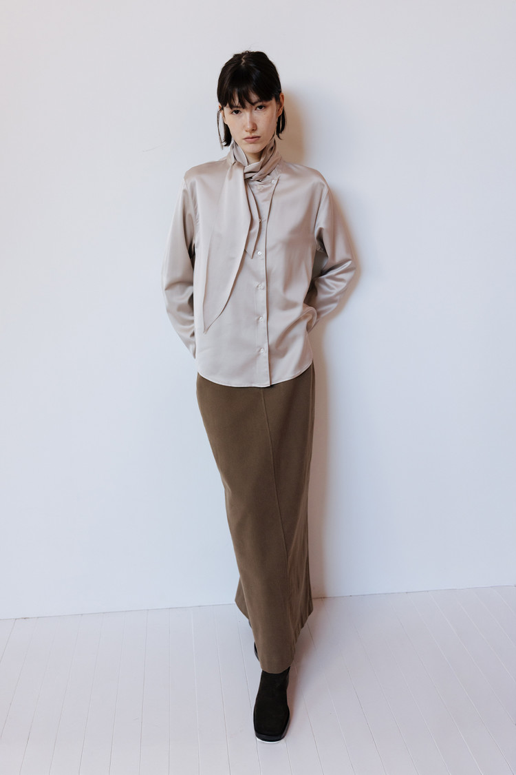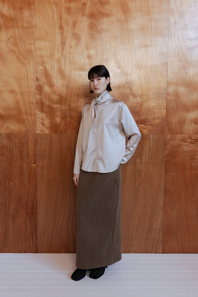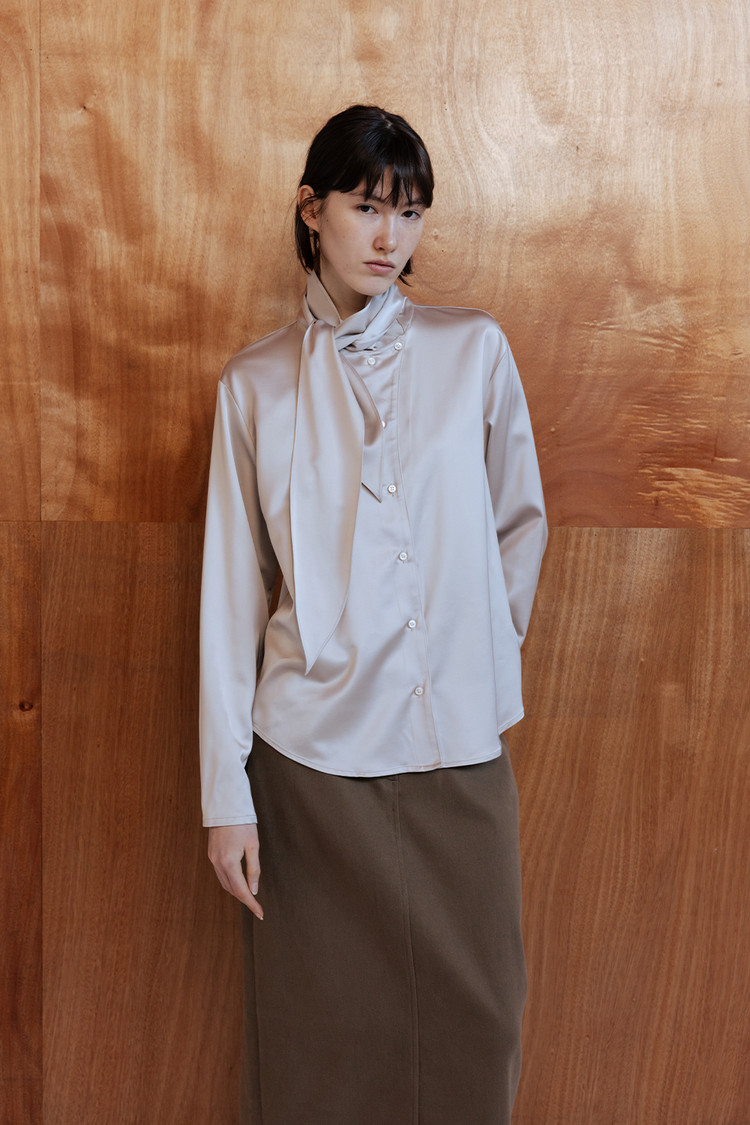 은은하고 고급스러운 광택감이 감도는 울 새틴 블라우스