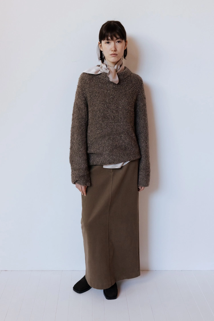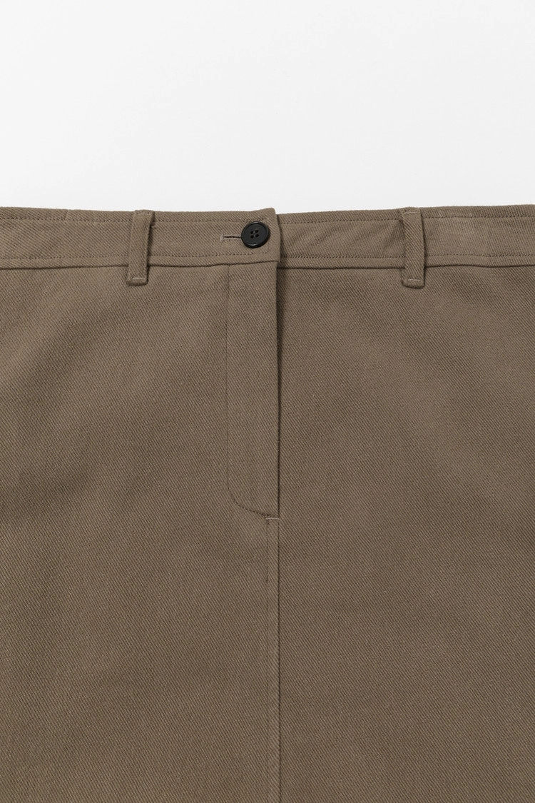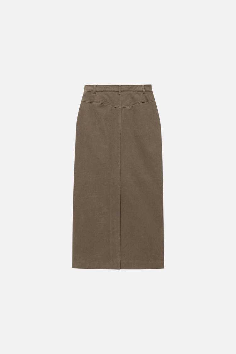 BRUSHED COTTON TWILL LONG SKIRT - BROWN