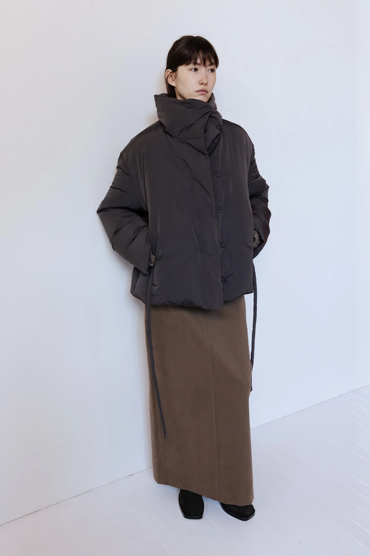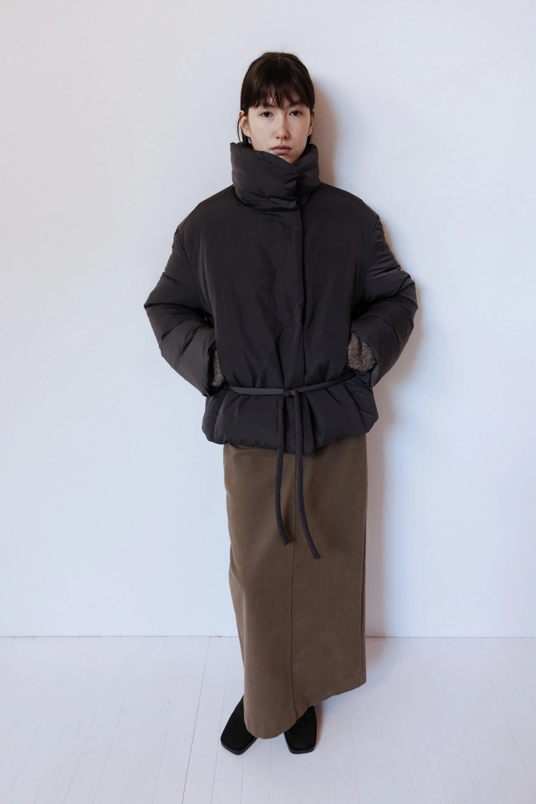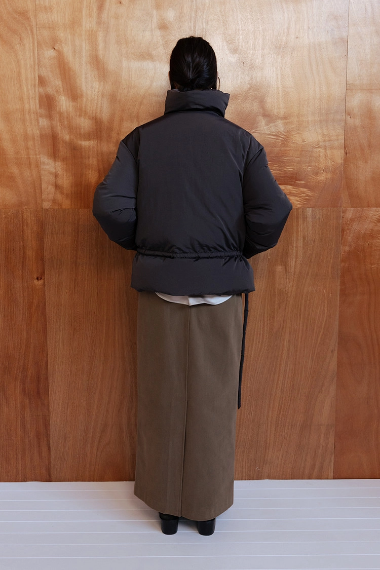 하프 기장의 내부 안감과 후면 밑단 슬릿으로 보온성과 활동성 선사