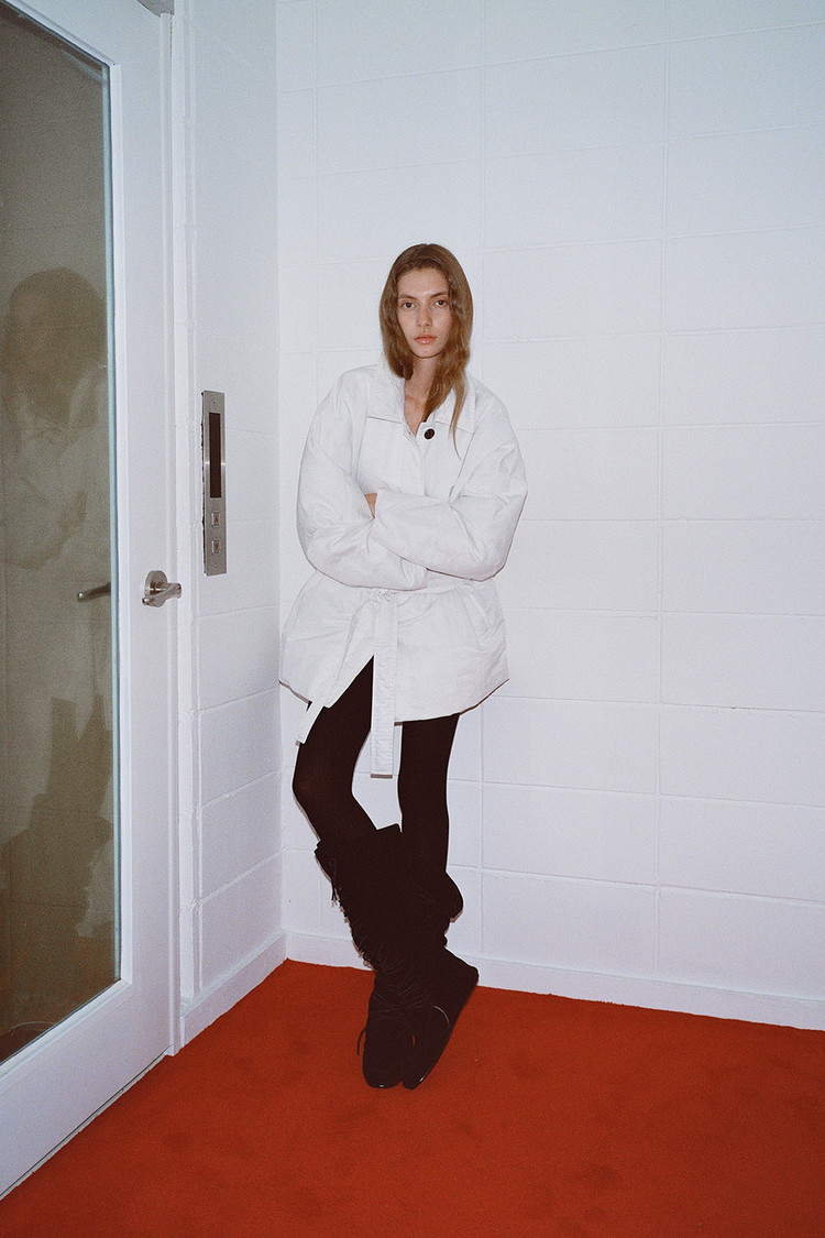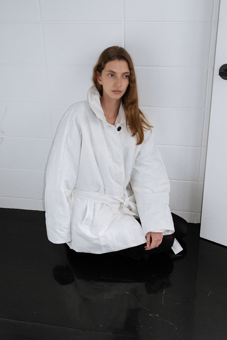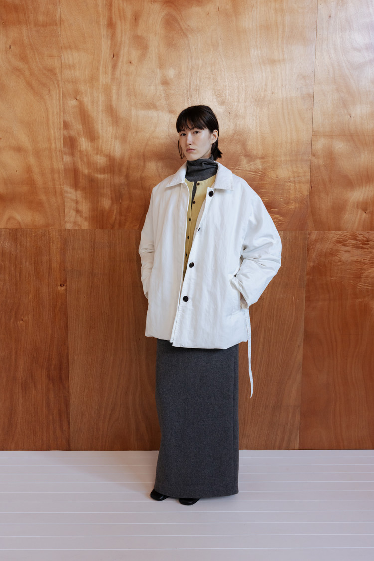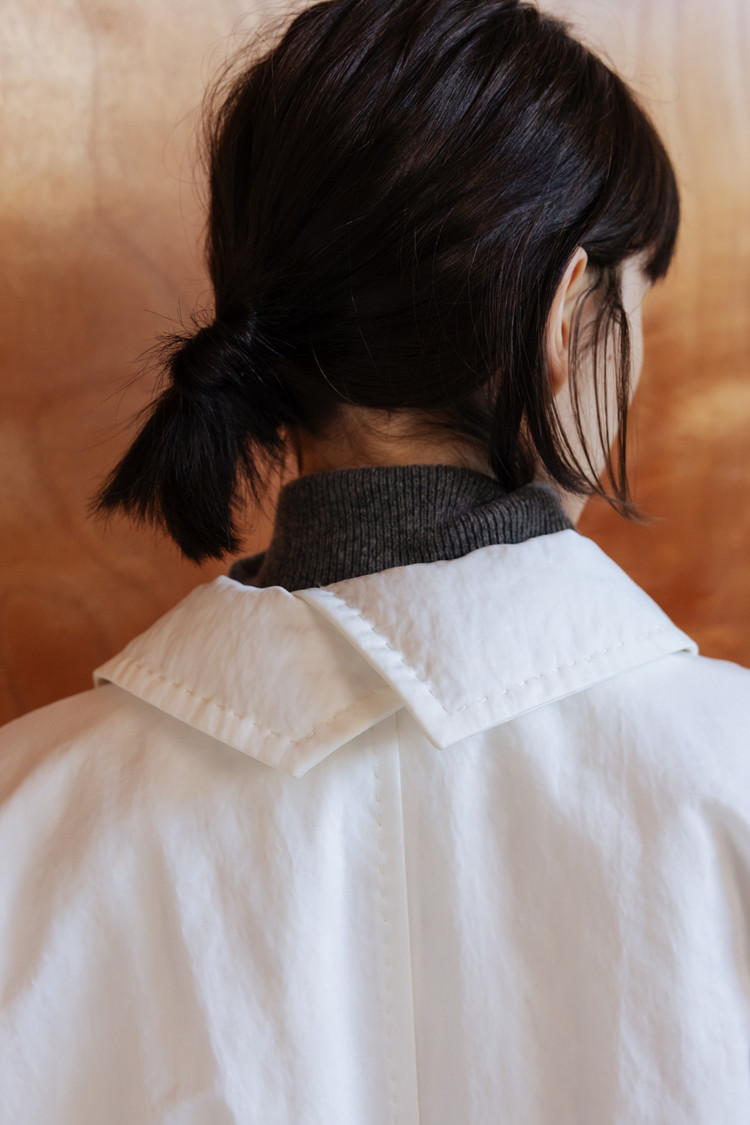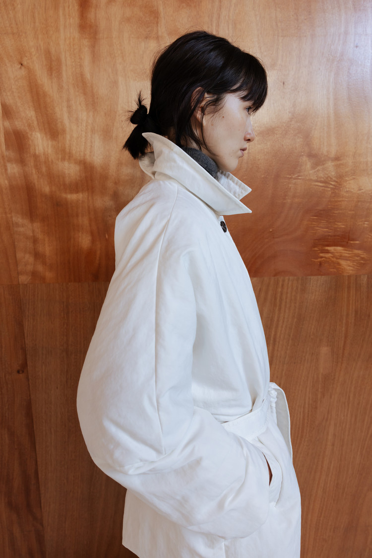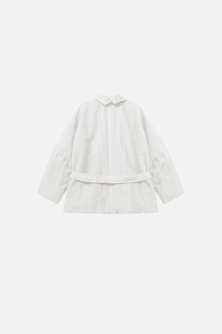 동일 소재의 벨트로 허리 라인을 조절해 자연스러운 볼륨 속에서도 정제된 실루엣 연출 가능