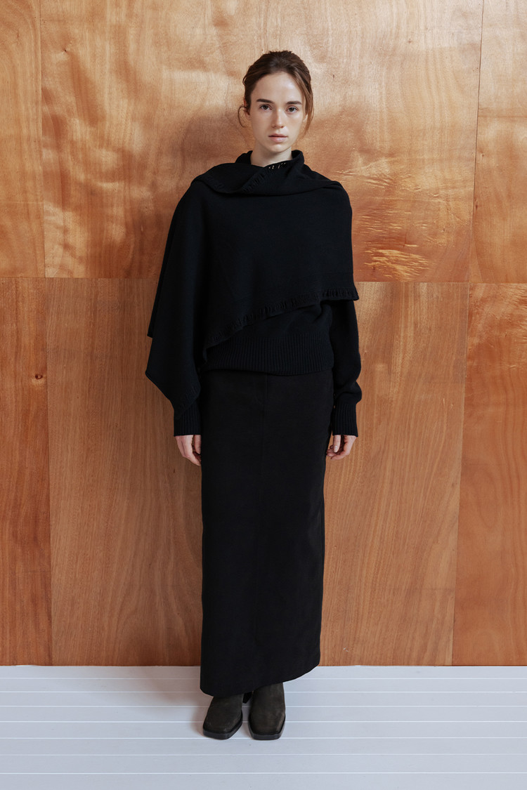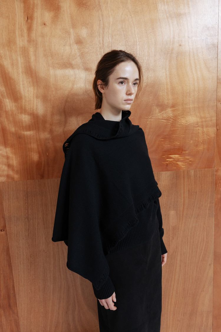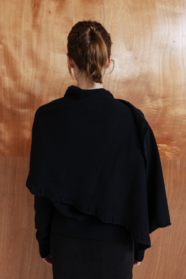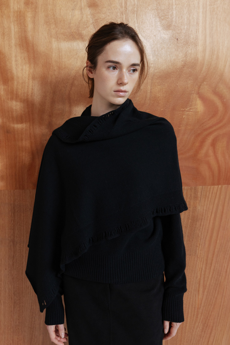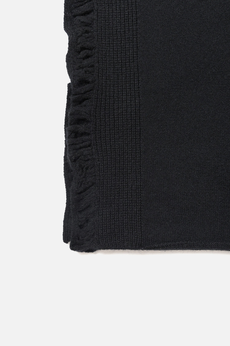 MERINO WOOL EDGE DETAIL KNIT MUFFLER - BLACK