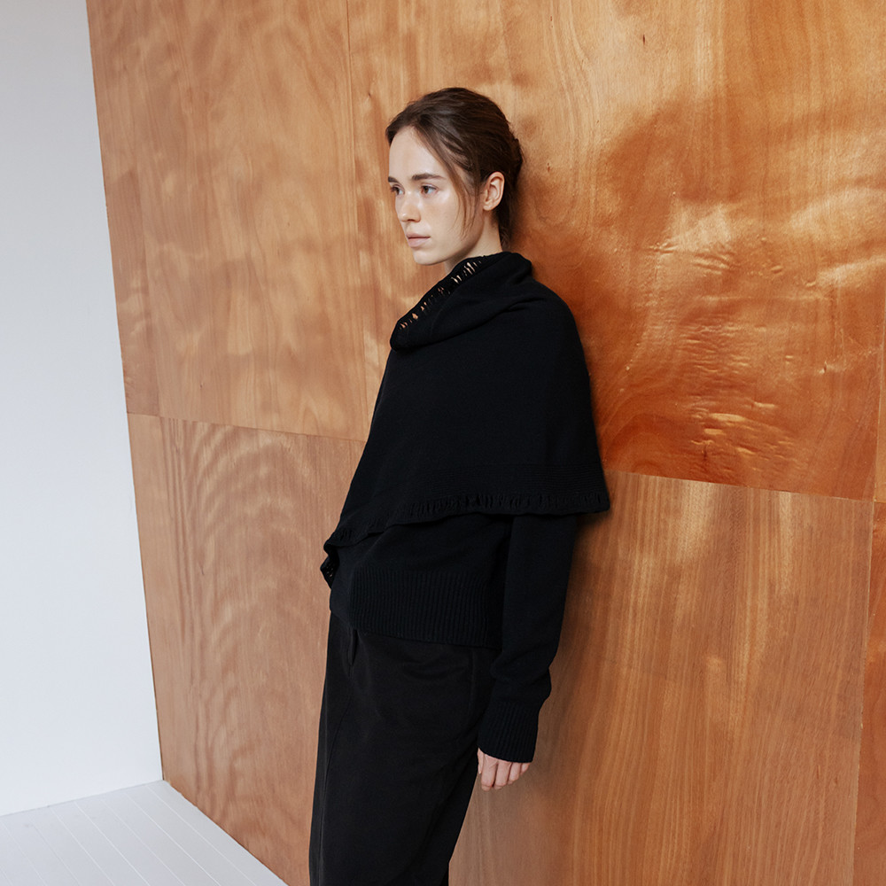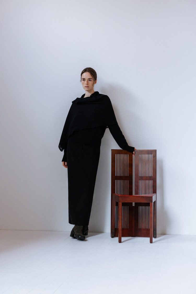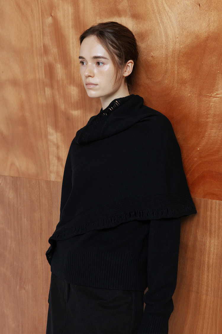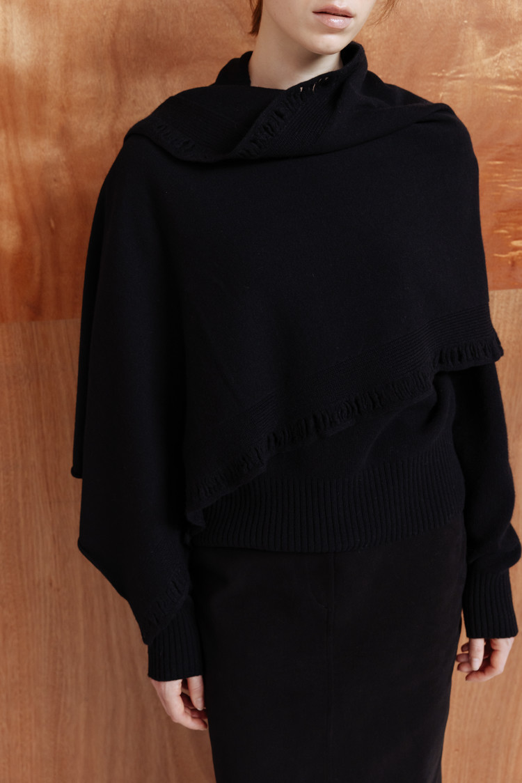 MERINO WOOL EDGE DETAIL KNIT MUFFLER - BLACK