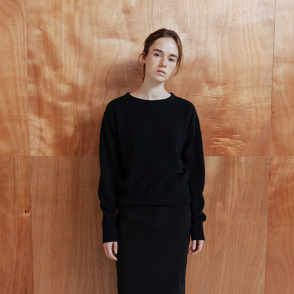 동일 소재의 MERINO WOOL ROUND NECK KNIT TOP과 셋업 연출 가능