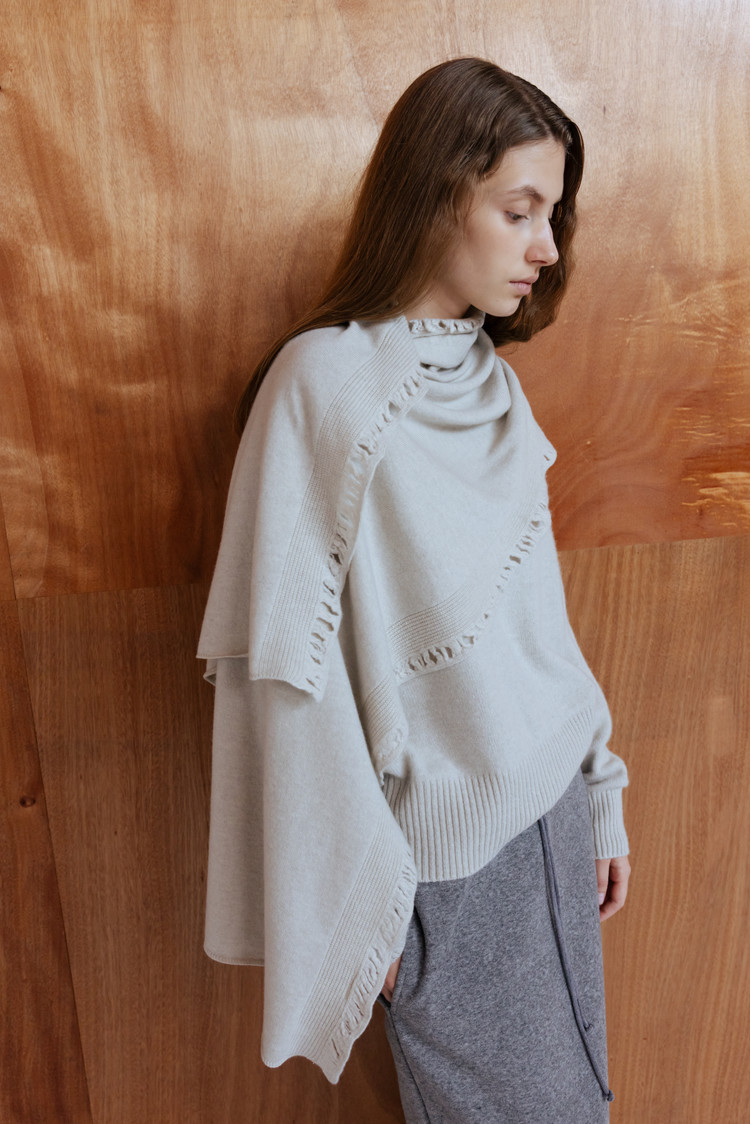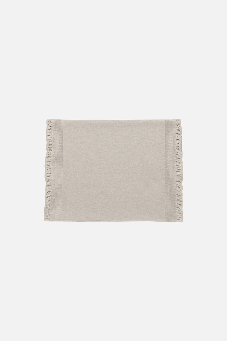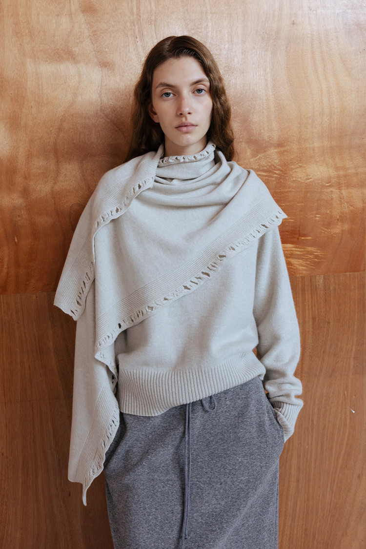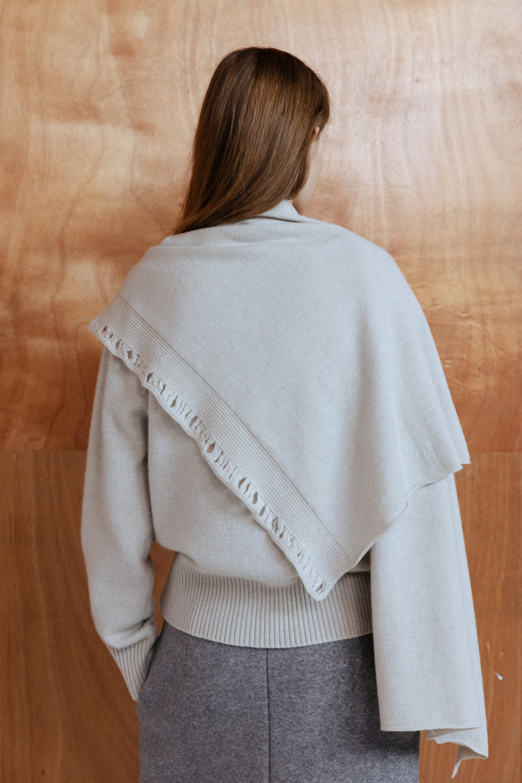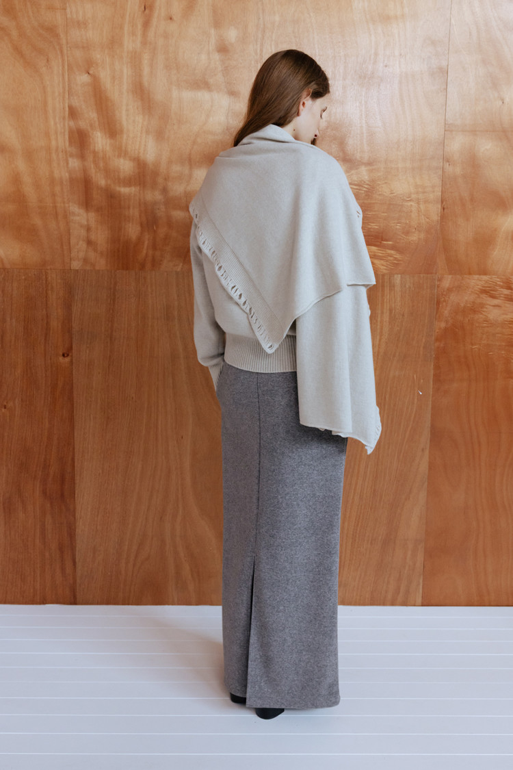 MERINO WOOL EDGE DETAIL KNIT MUFFLER - SILVER GREY