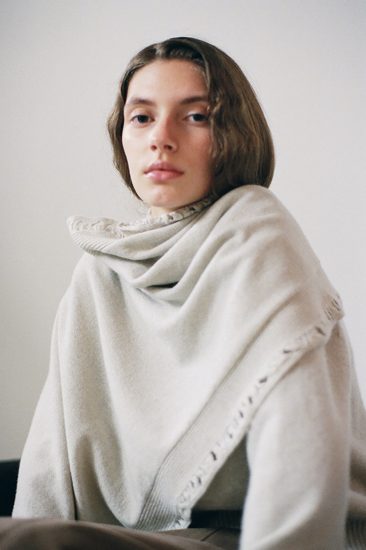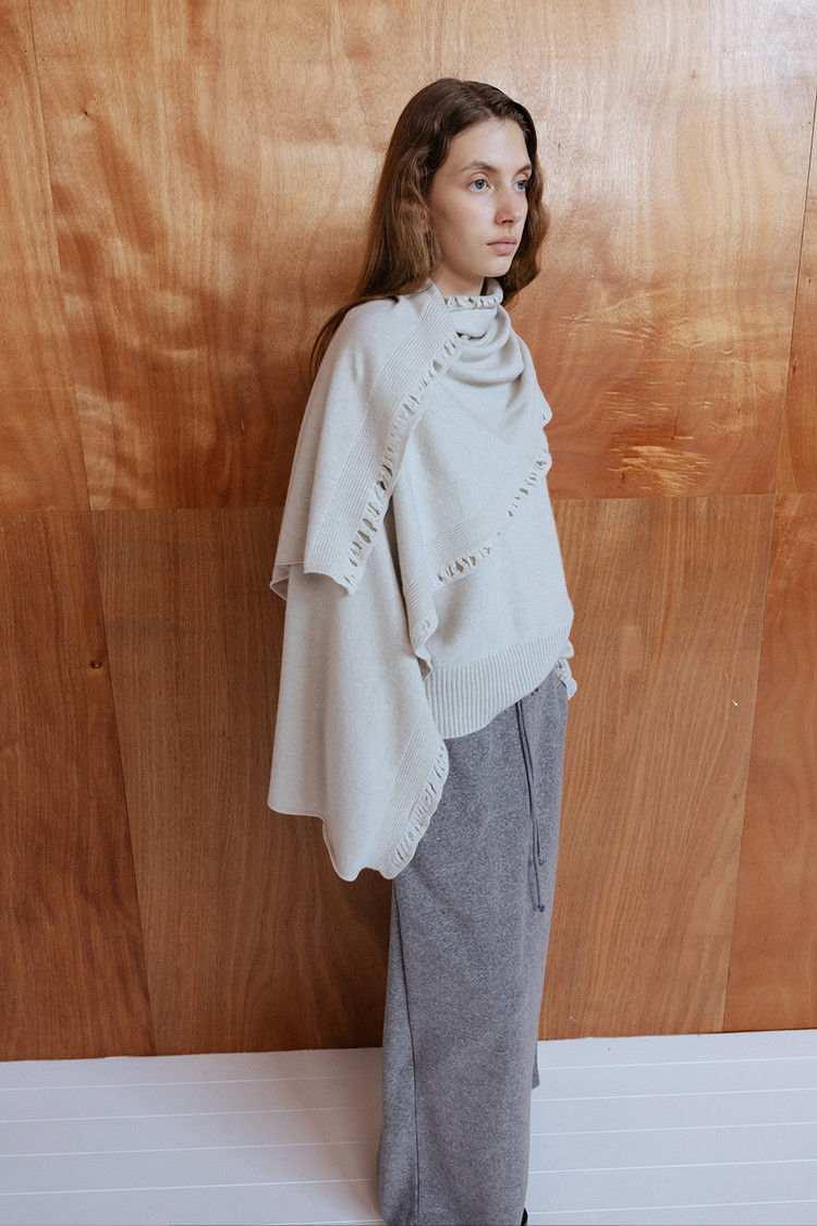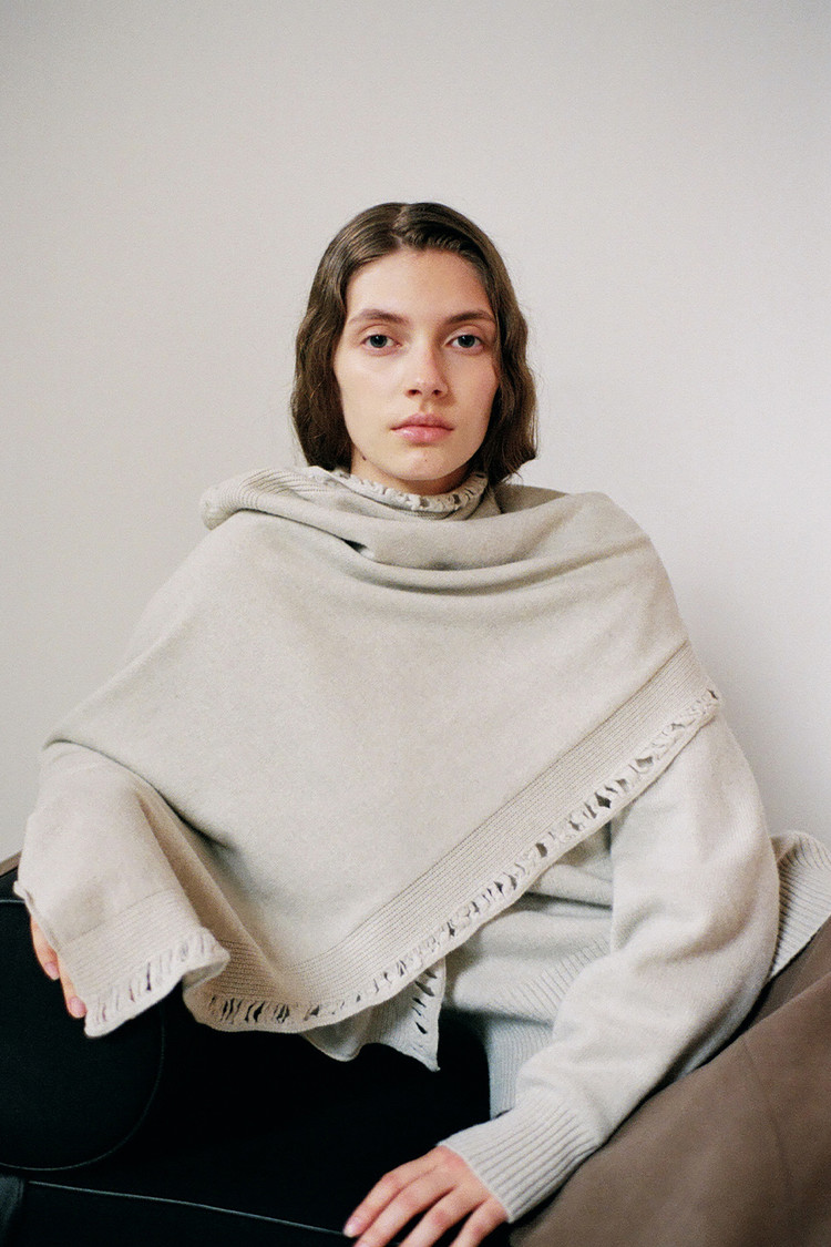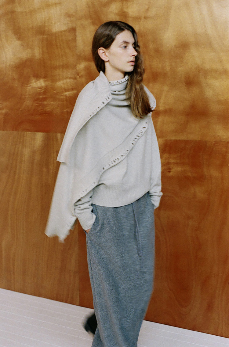 부드러운 터치감의 메리노울 블렌드 소재로 제작된 니트 머플러