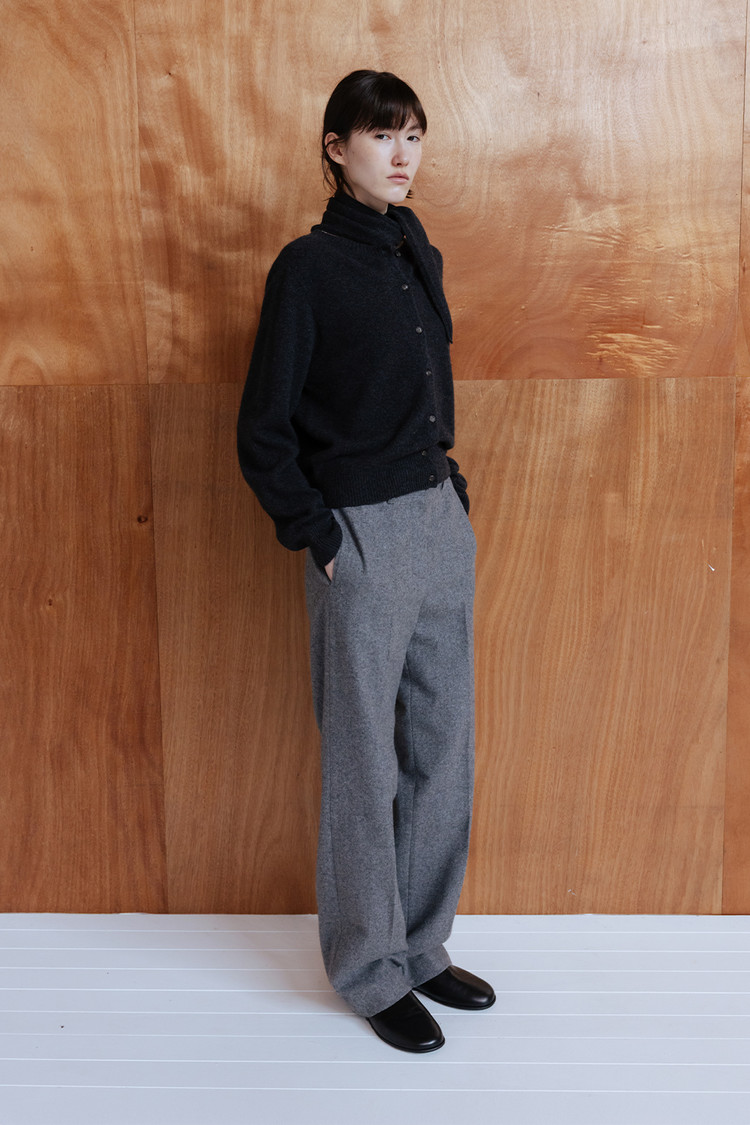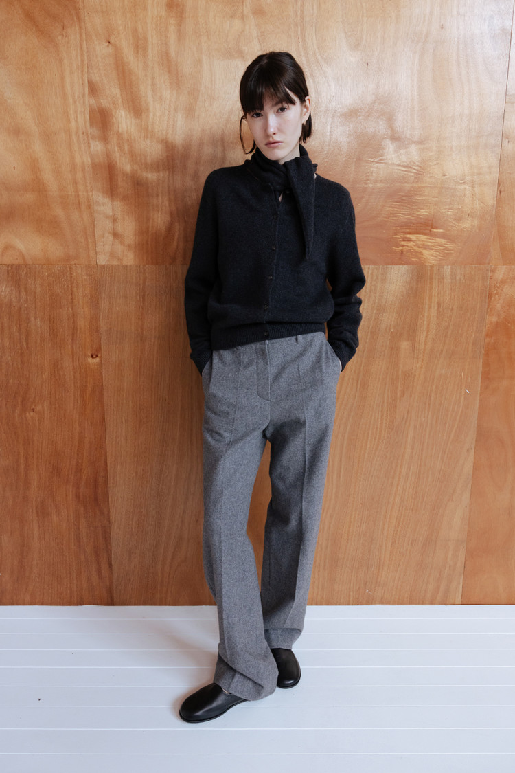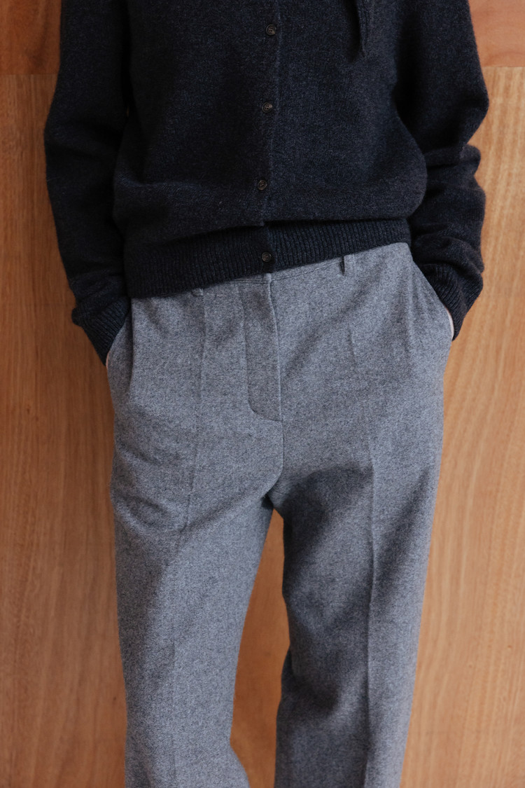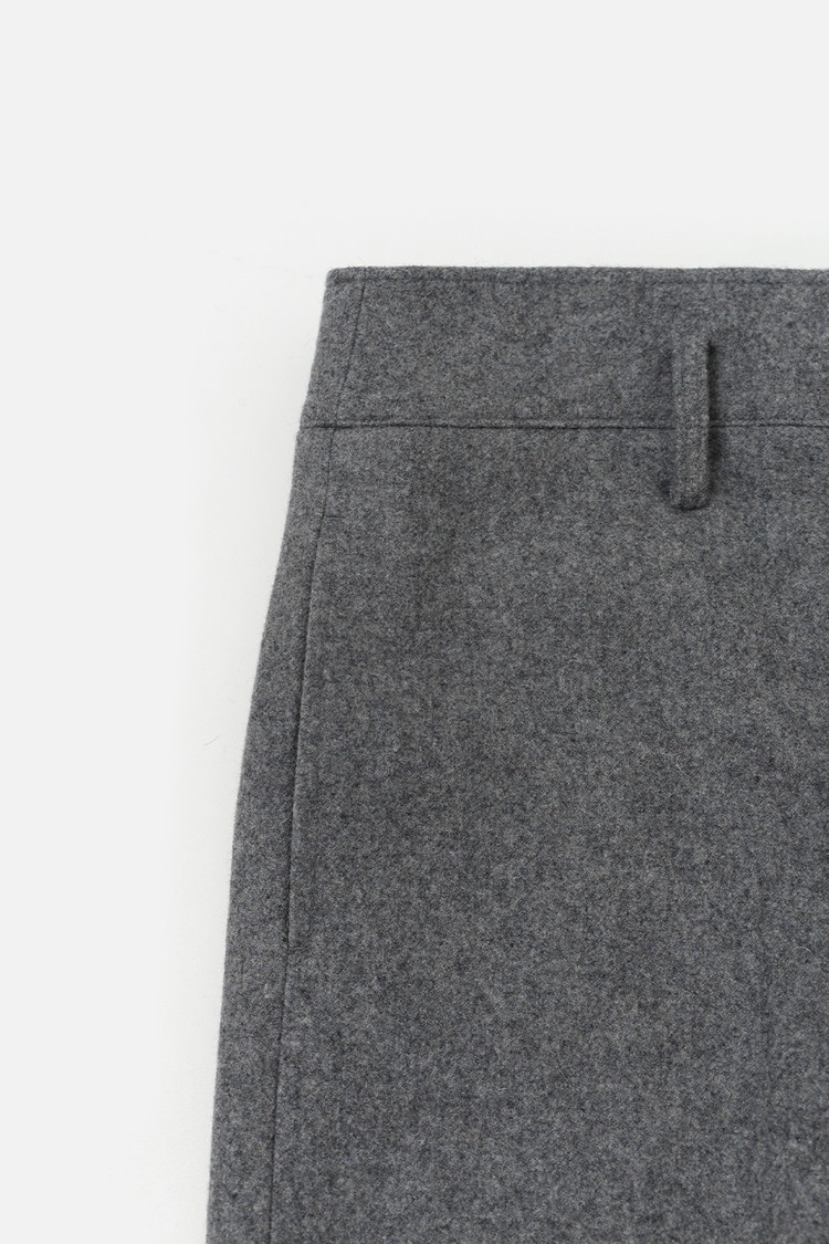 탄탄한 질감과 간결하게 떨어지는 세미 와이드 실루엣이 모던하고 정제된 무드 연출
