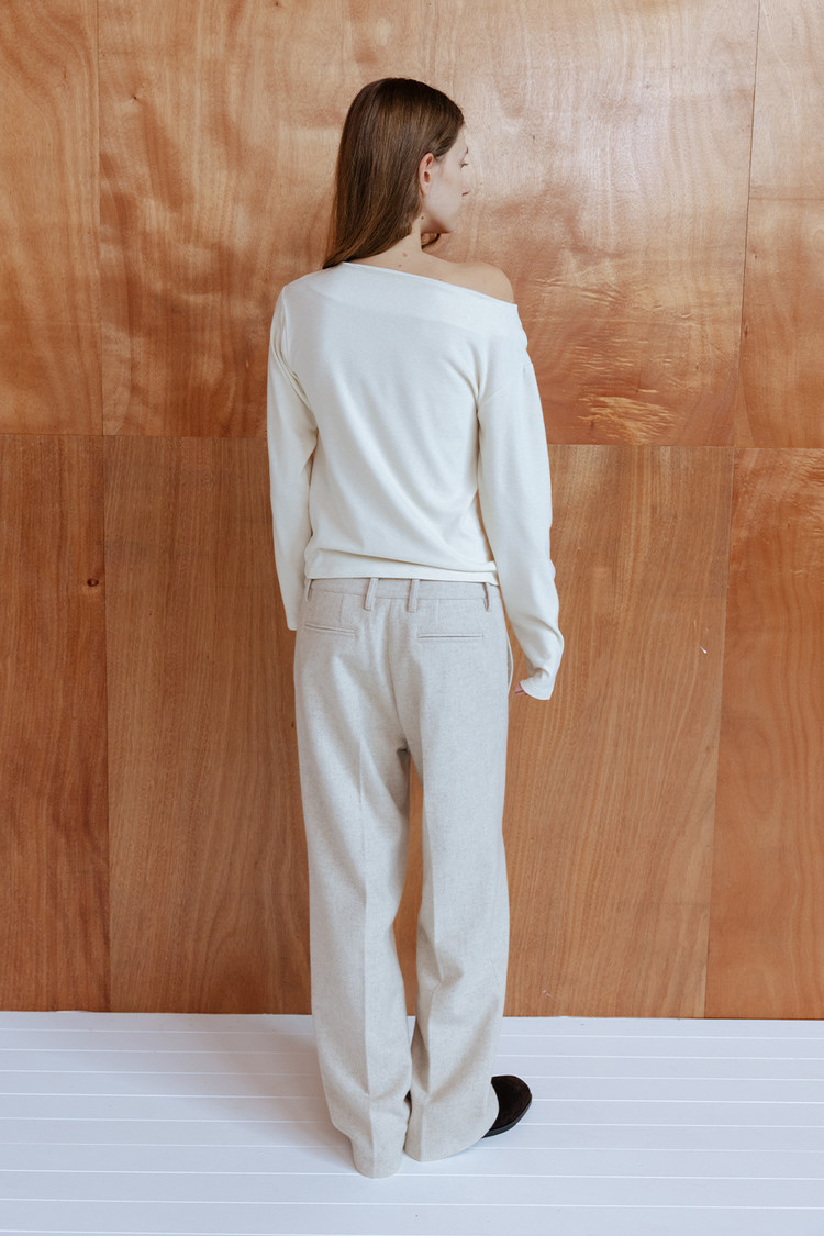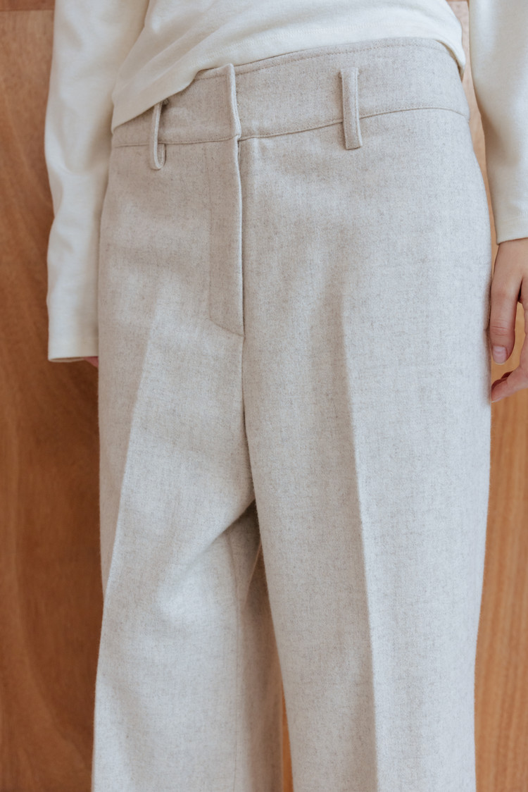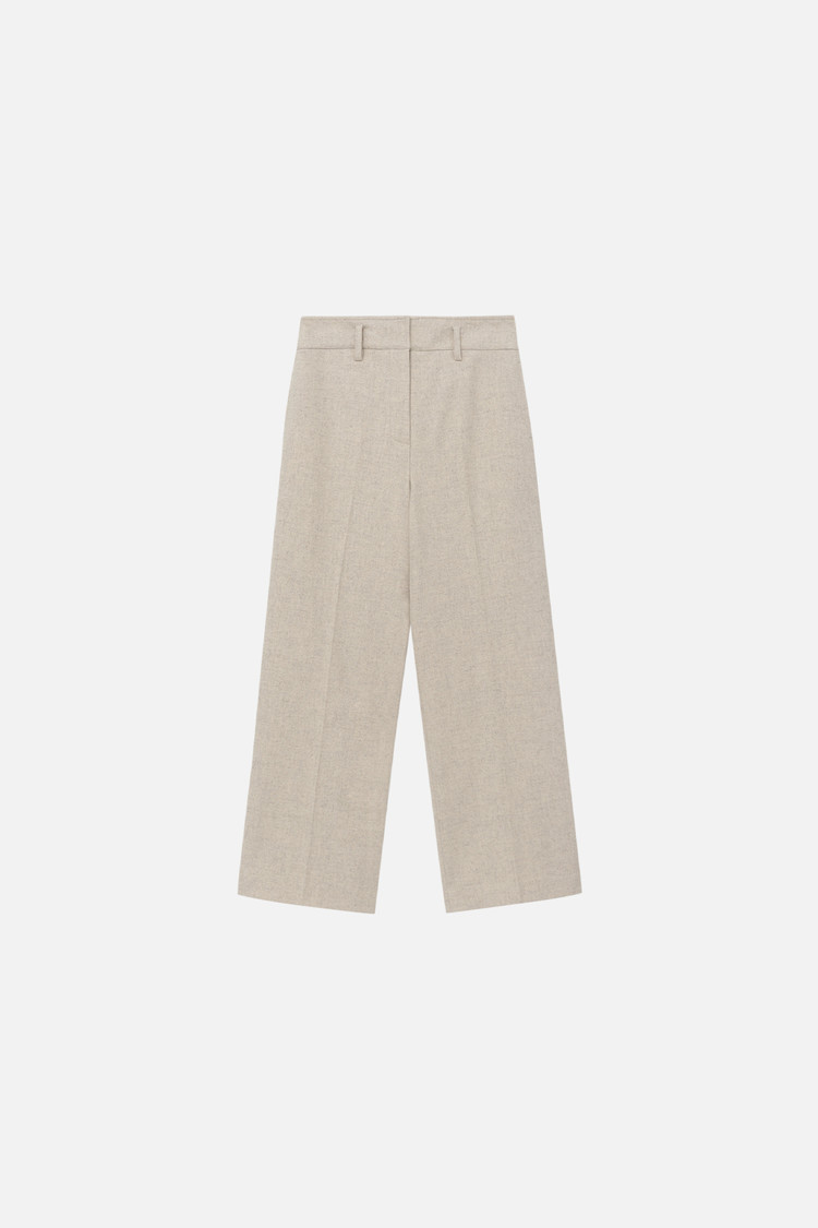 울 블렌드 소재로 제작된 프레스드 와이드 트라우저