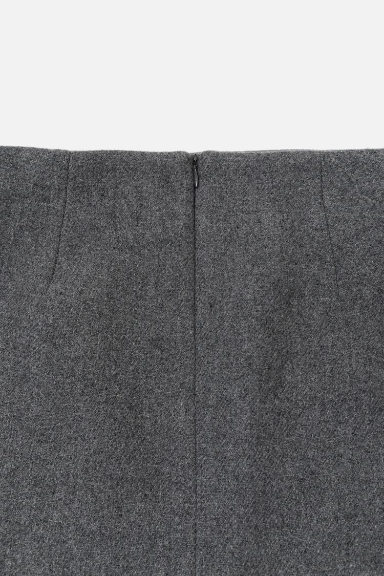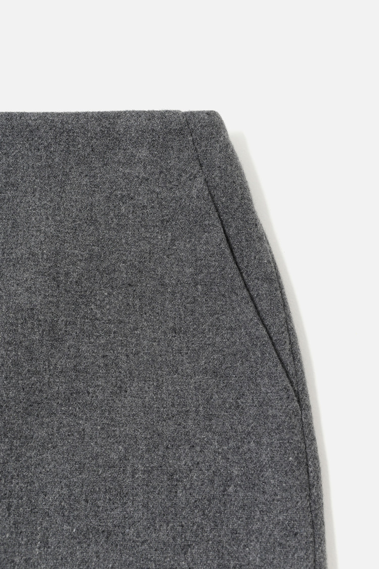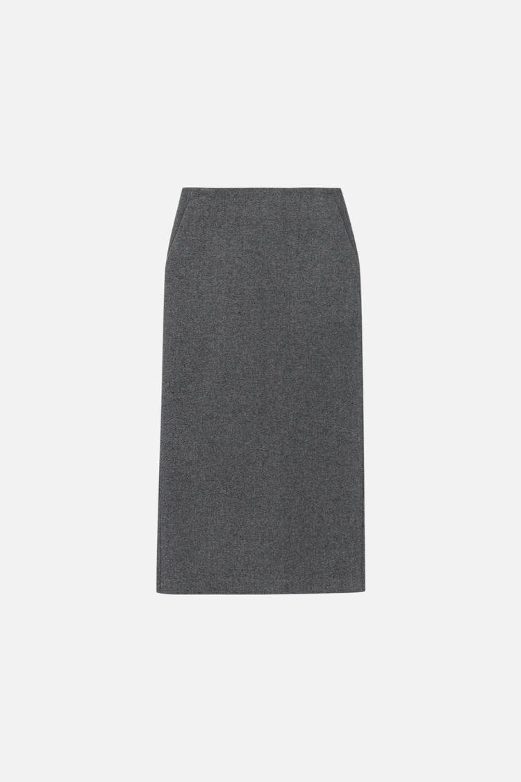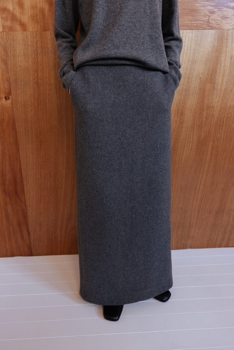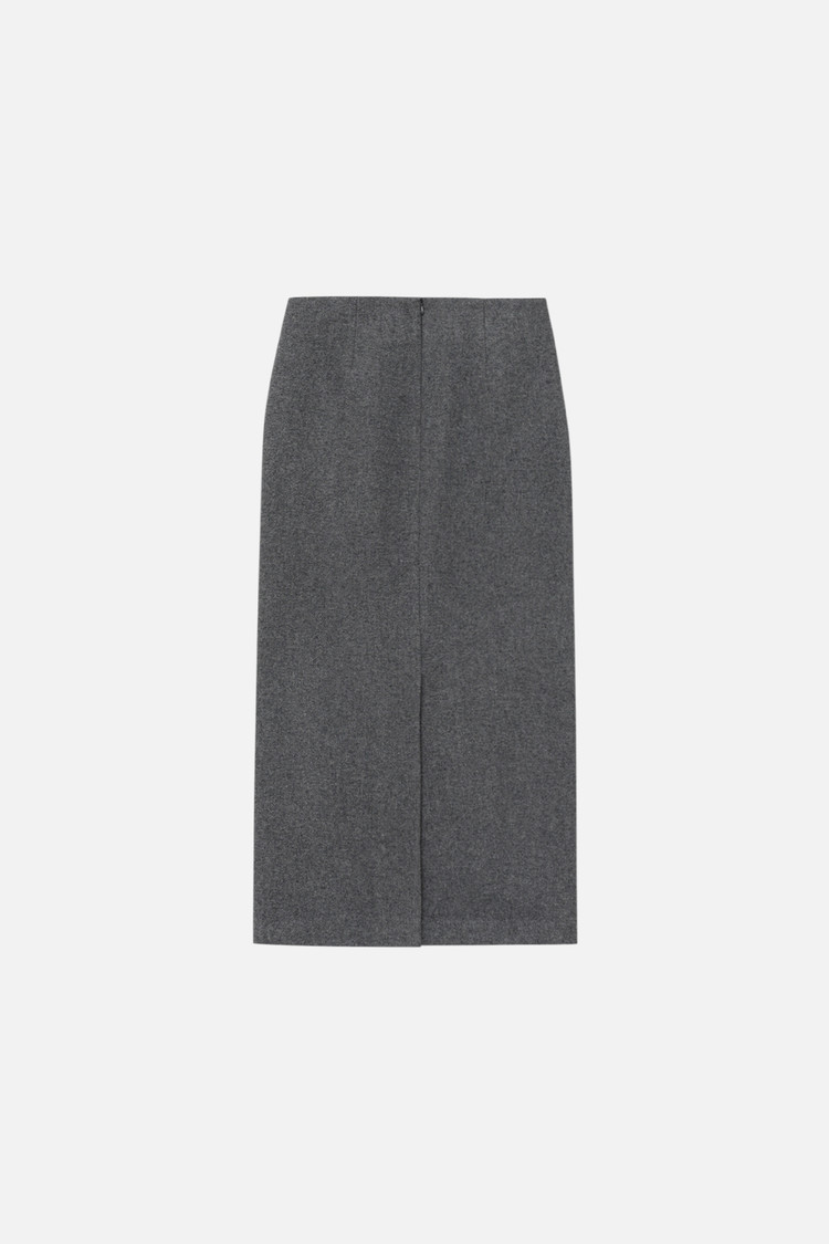 WOOL BLEND STRAIGHT LONG SKIRT - D GREY