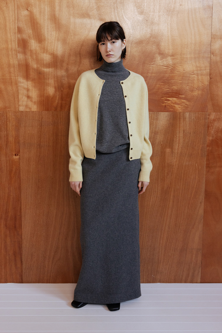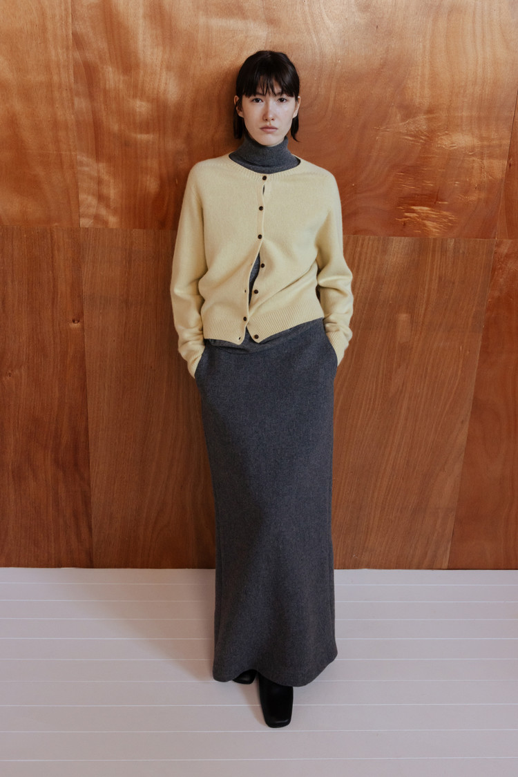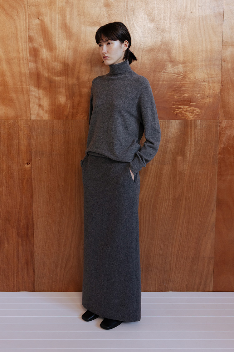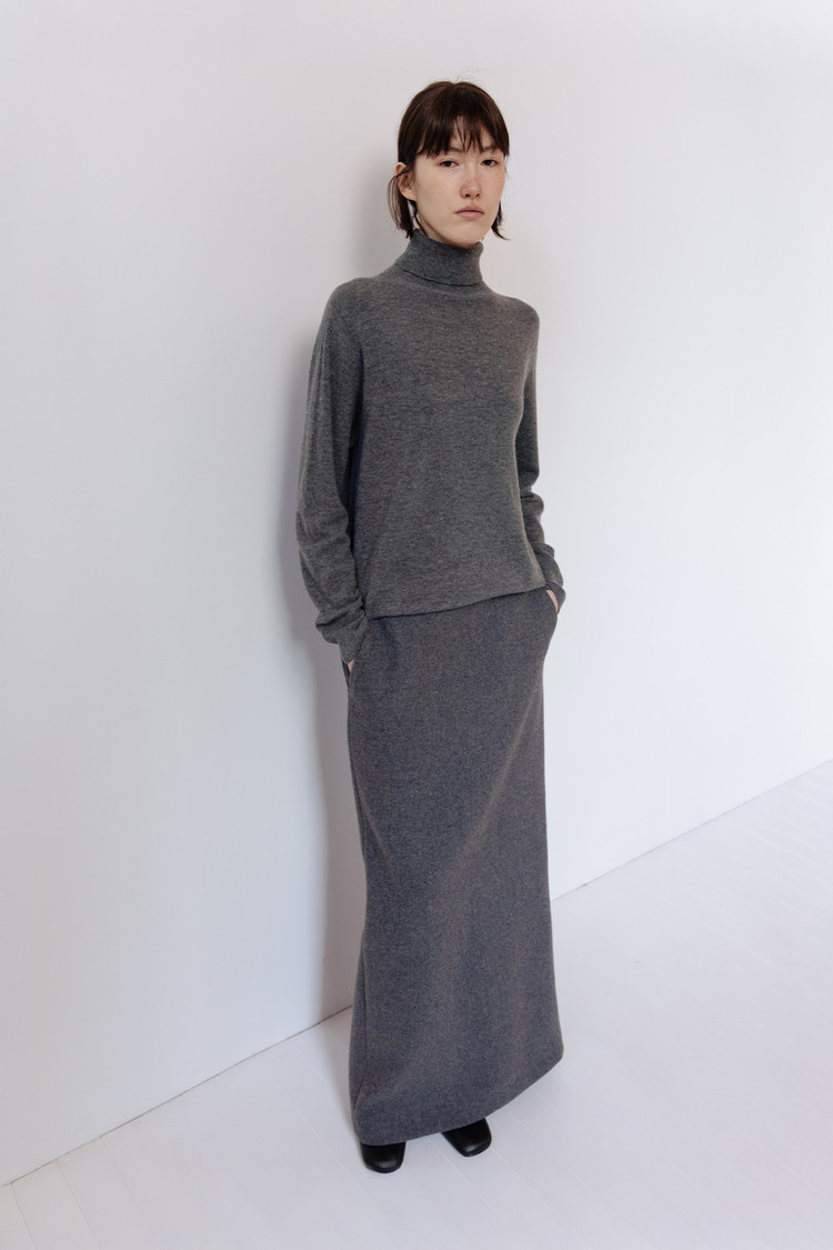 탄탄한 조직감의 울 블렌드 소재로 제작된 맥시 롱 스커트