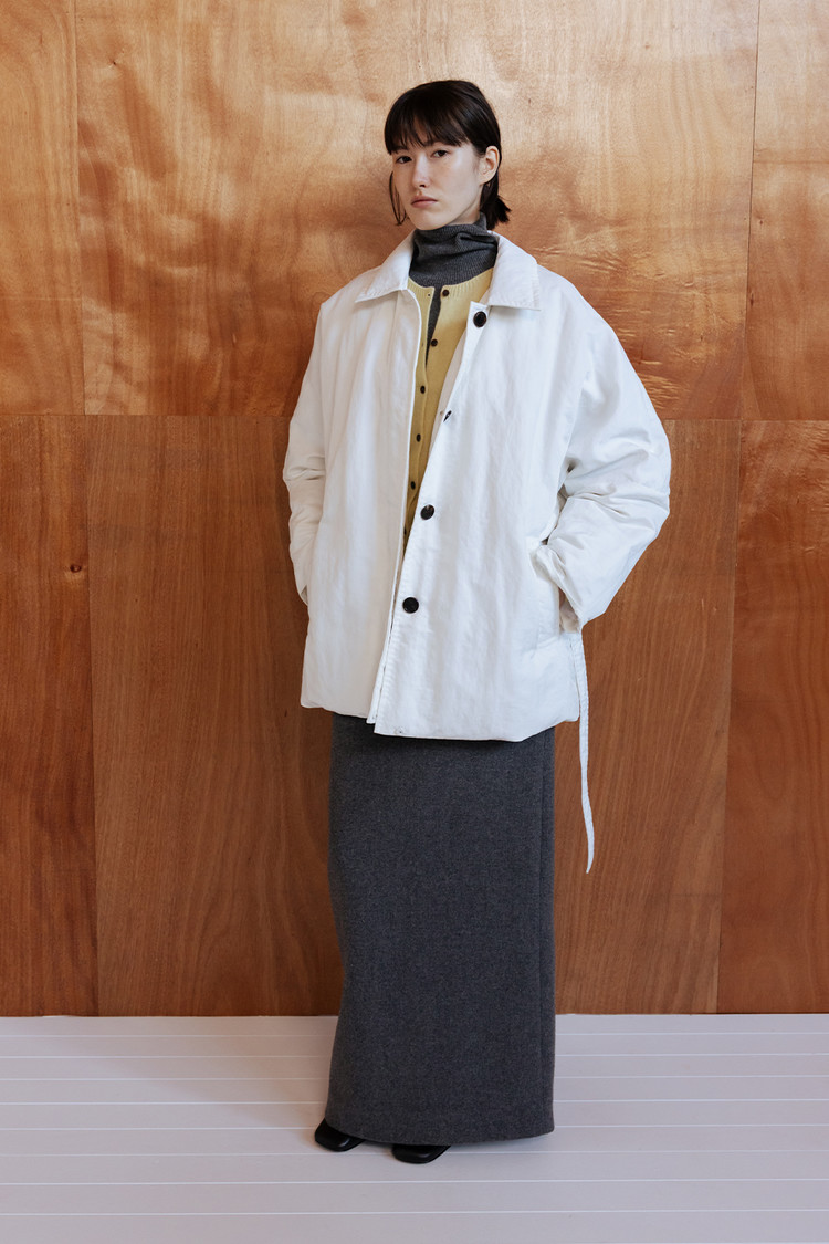 하프 기장의 내부 안감과 밑단 슬릿으로 보온성과 활동성 강화