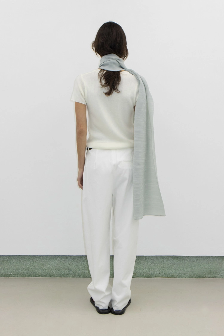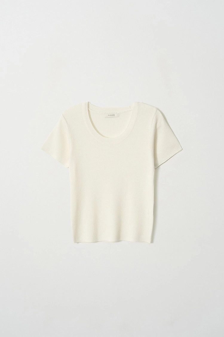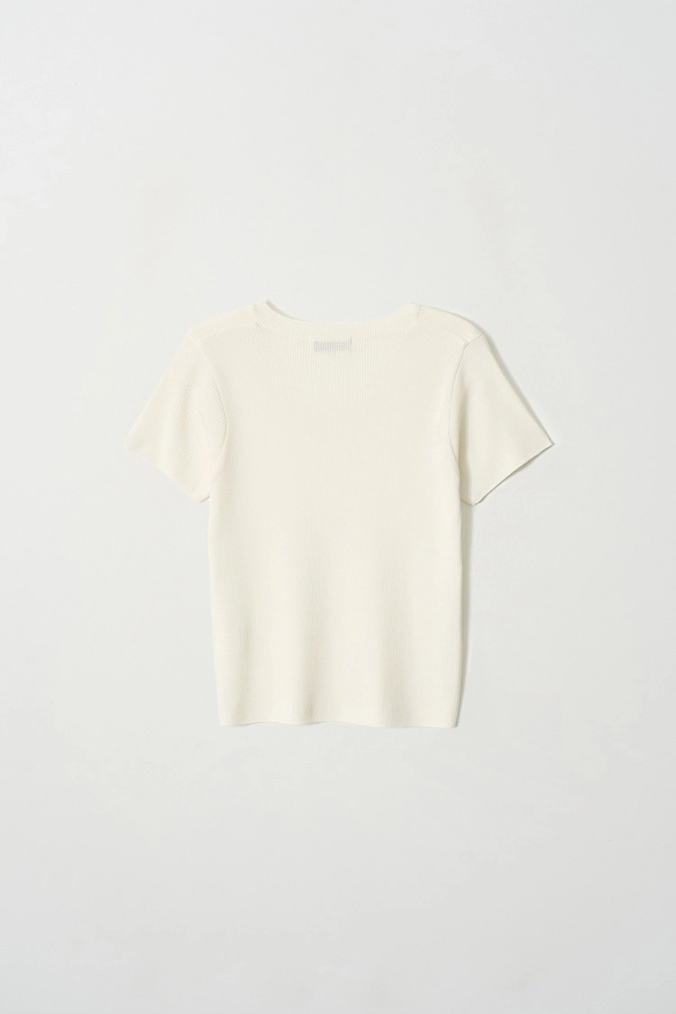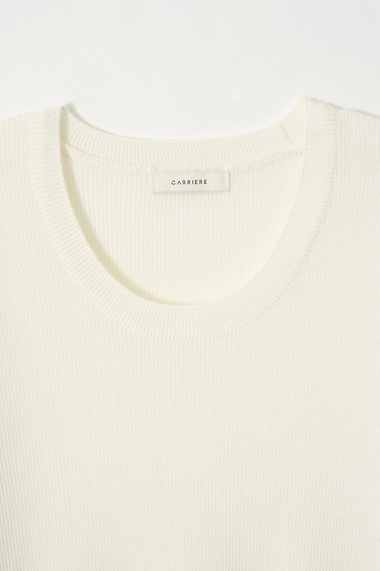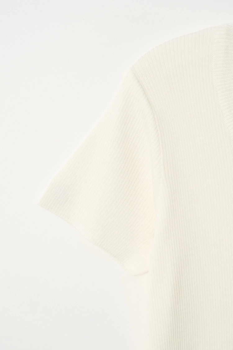 LIGHT WOOL SHORT SLEEVE RIB KNIT TOP - WHITE