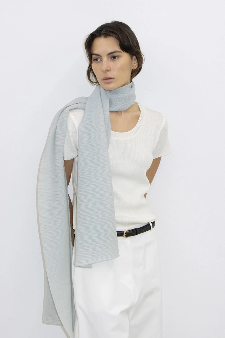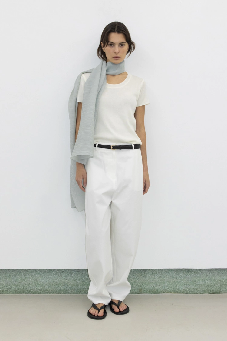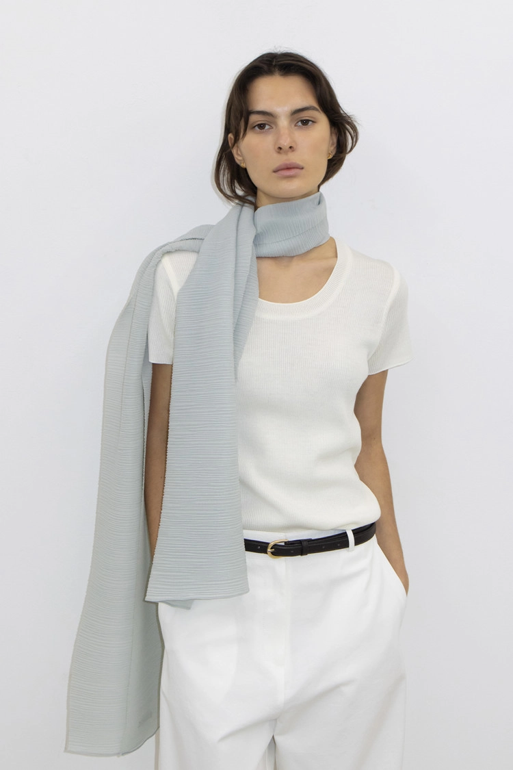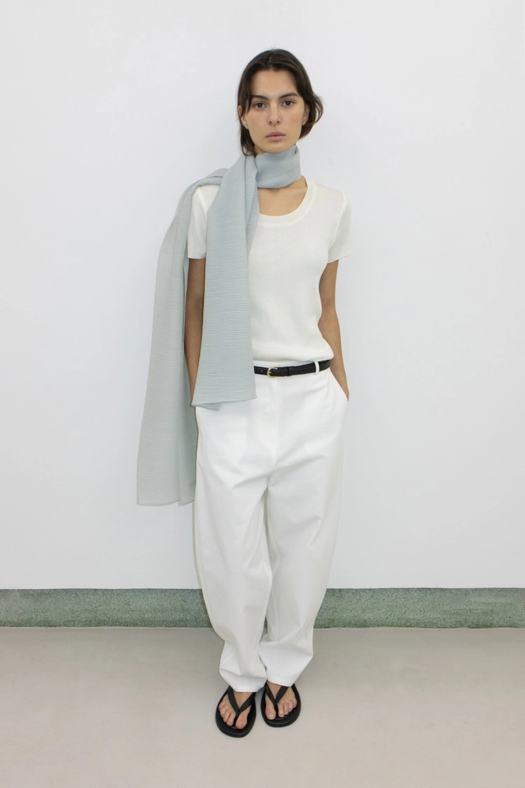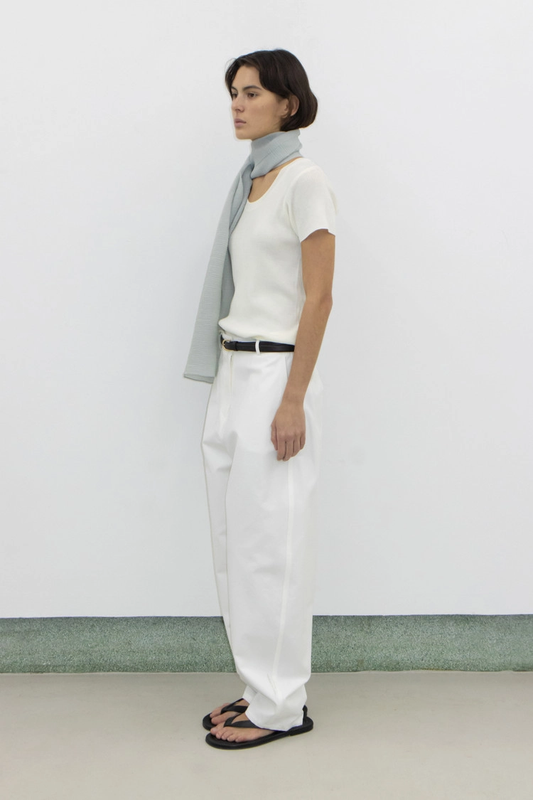 LIGHT WOOL SHORT SLEEVE RIB KNIT TOP - WHITE