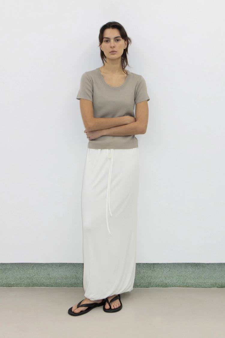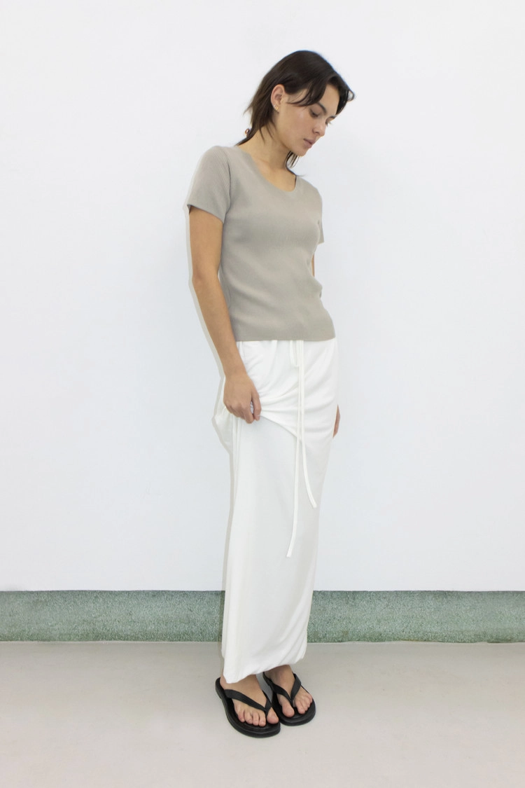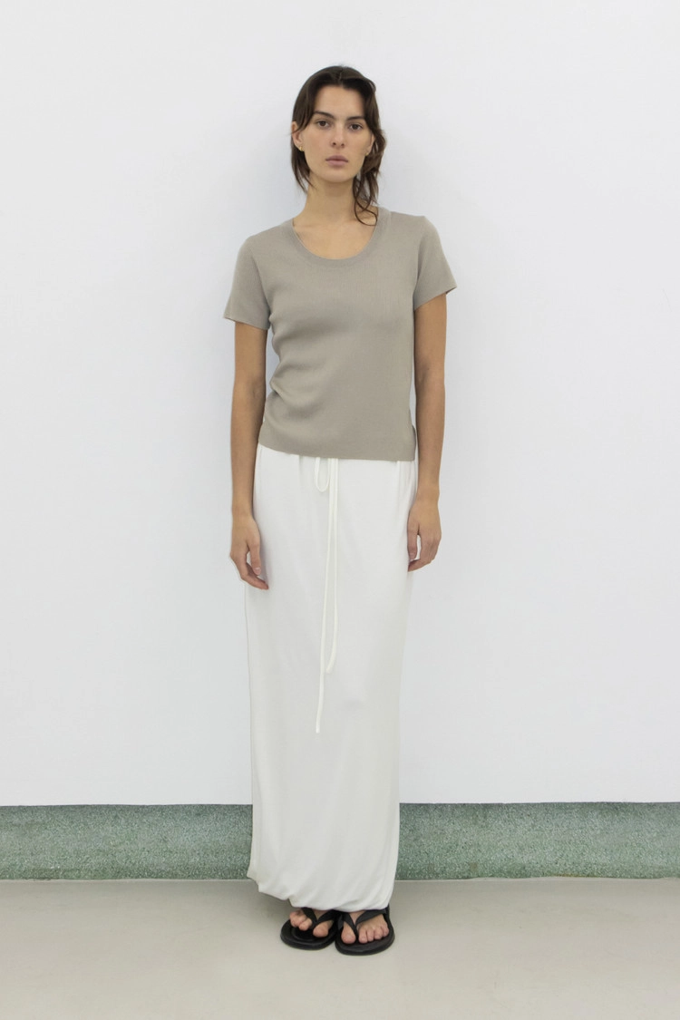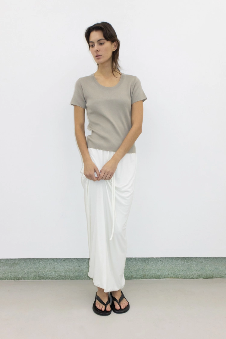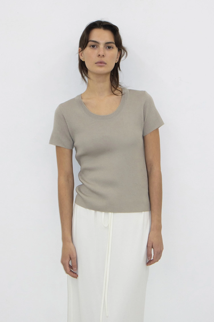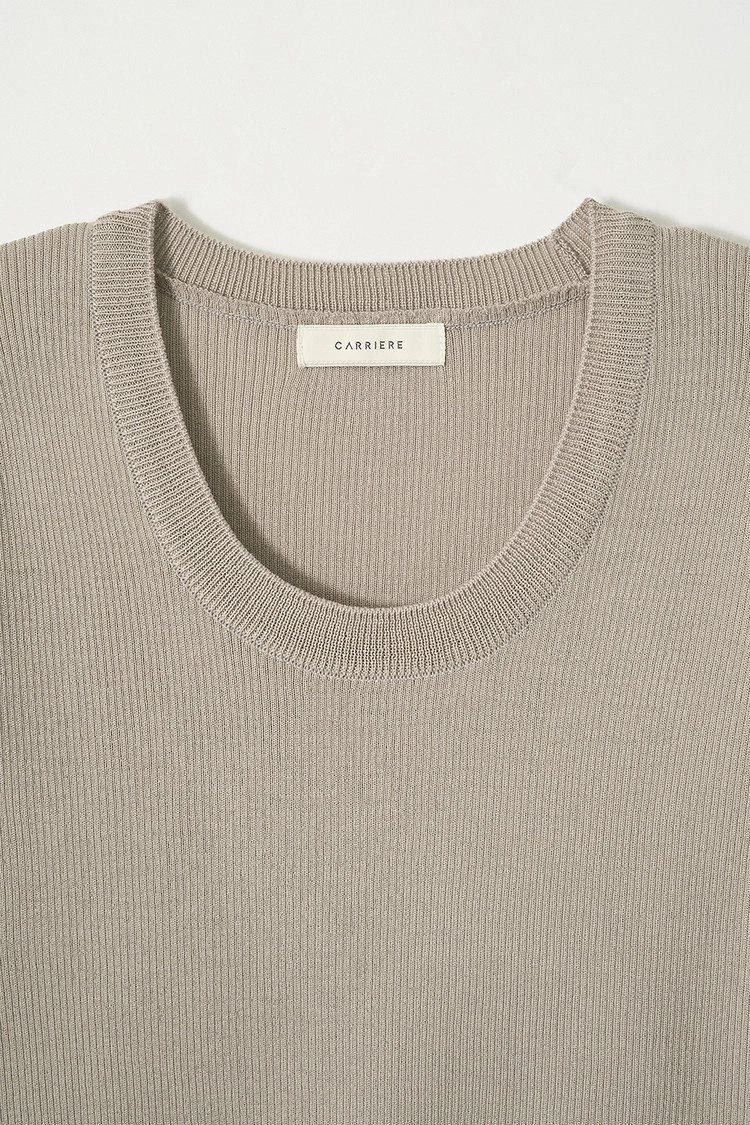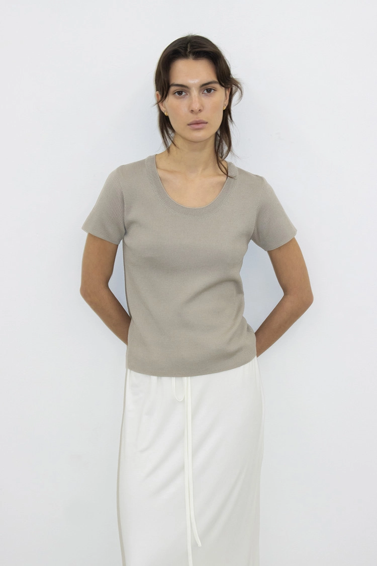 [REORDER 04/27(월) 예약배송] LIGHT WOOL SHORT SLEEVE RIB KNIT TOP - SAND BEIGE